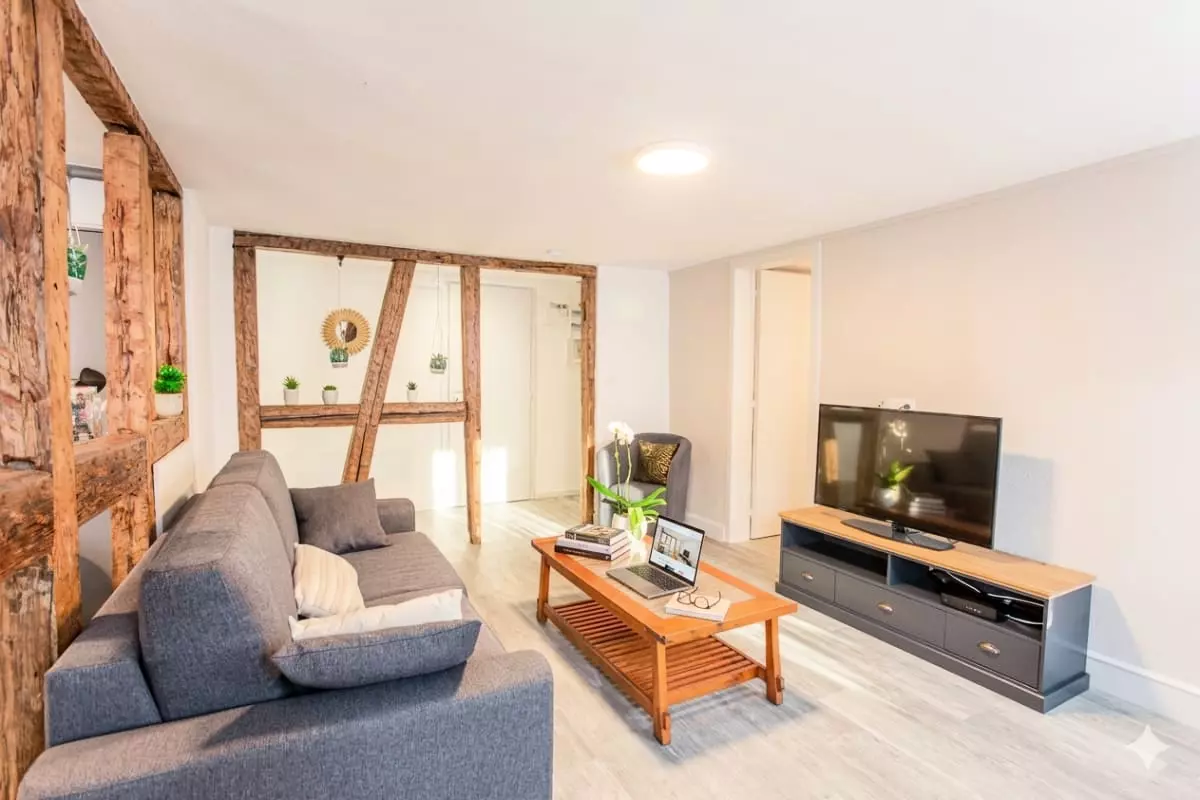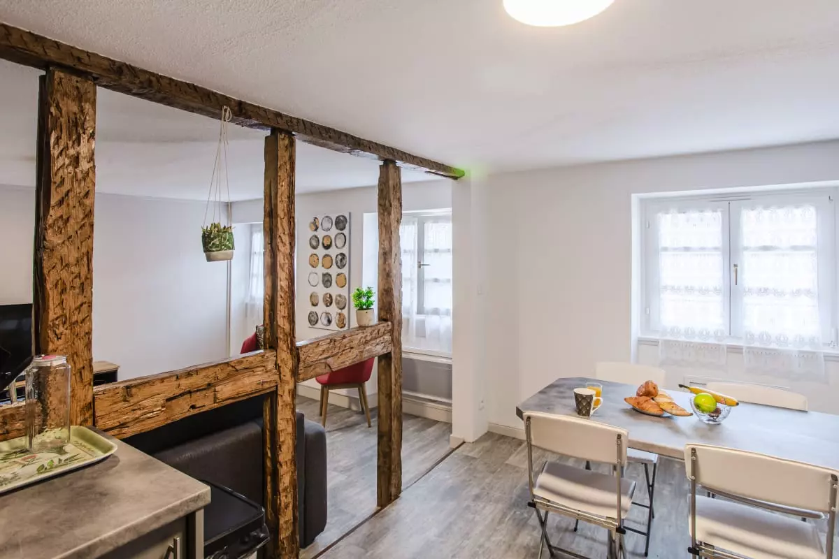 The apartment is located in Colmar's historic district, on a quiet pedestrian street, surrounded by cobblestone lanes and half-timbered houses. Just steps away, you'll find peaceful parks, shaded squares, artisan shops, and a shopping center just 10 minutes away. Nearby restaurants and traditional Alsatian wine bars (winstubs) offer Alsatian specialties. The local market, 200 meters away, is a great place to discover fresh produce and gourmet souvenirs. Iconic sites such as the Bartholdi Museum, Saint-Martin Church, and Little Venice are all within walking distance. Local bars and restaurants offer wines and regional cuisine, and the Alsatian vineyards are easily accessible. Public parking and a gas station nearby make getting around convenient.