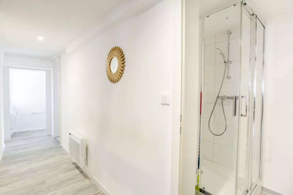 The two modern and well-equipped bathrooms feature a shower, large mirror, hairdryer, as well as an iron and ironing board to meet all your needs.