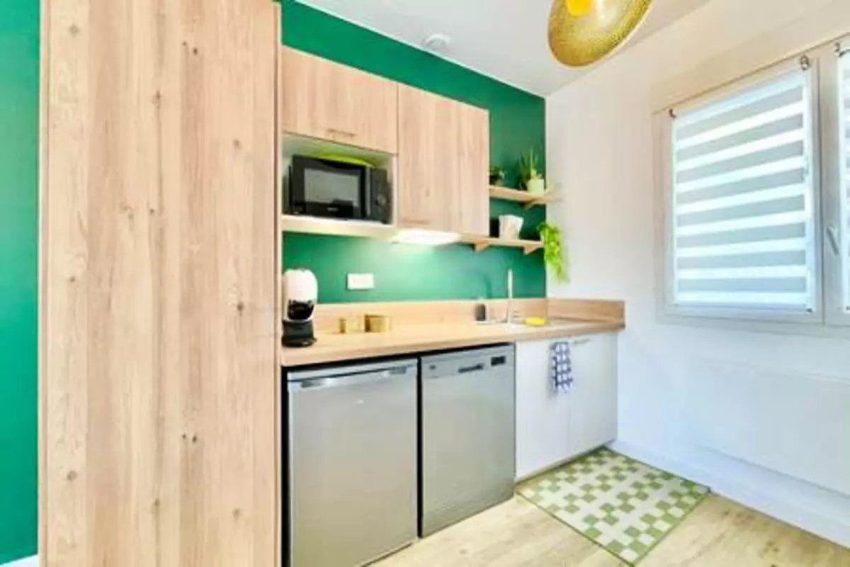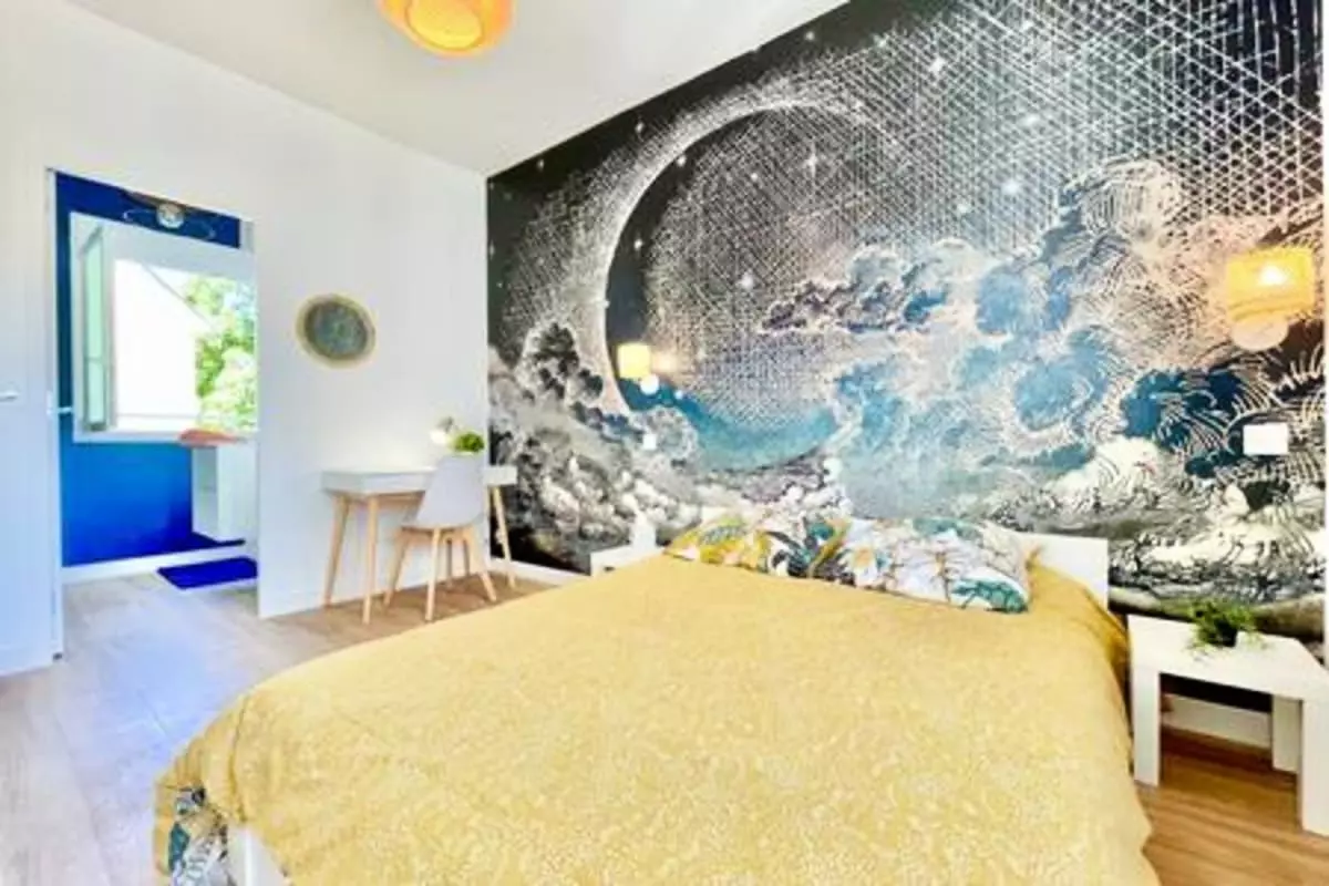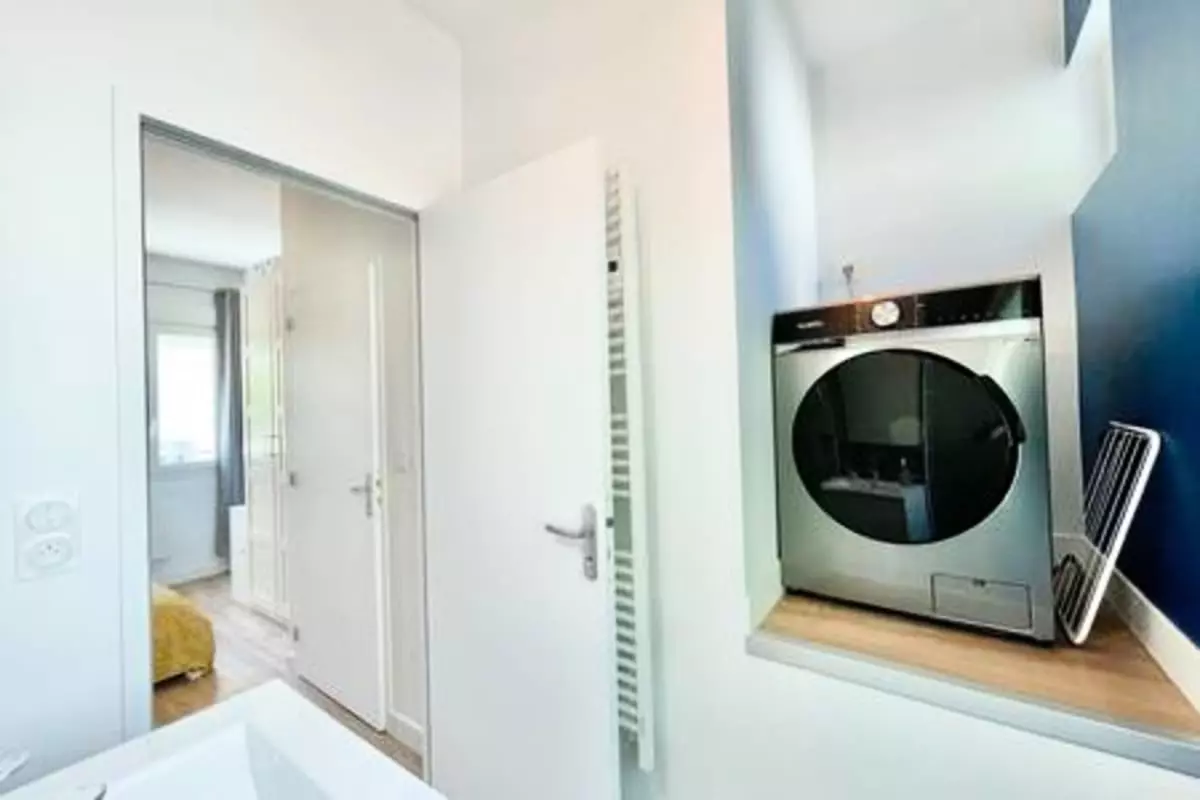 The accommodation is located in a quiet neighborhood, ideal for relaxing after a busy day. The beach is just 2 km away for pleasant walks or admiring the sunset. A green park 500 m away invites you for a stroll, a sports stadium 600 m away offers opportunities for exercise, and a swimming pool 1 km away provides a relaxing break. Shops, boutiques, and the Bistro de la Mer are within a few minutes' walk for shopping and local cuisine. A bakery is 300 m away, the shopping center is 1 km away, and the gas station is 1.2 km away. Must-see sites such as the seafront, the Espadon submarine, and the Chantiers de l'Atlantique shipyard are easily accessible for exploring the city and its maritime history.