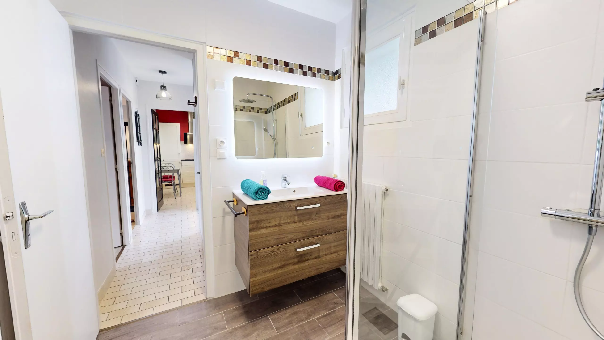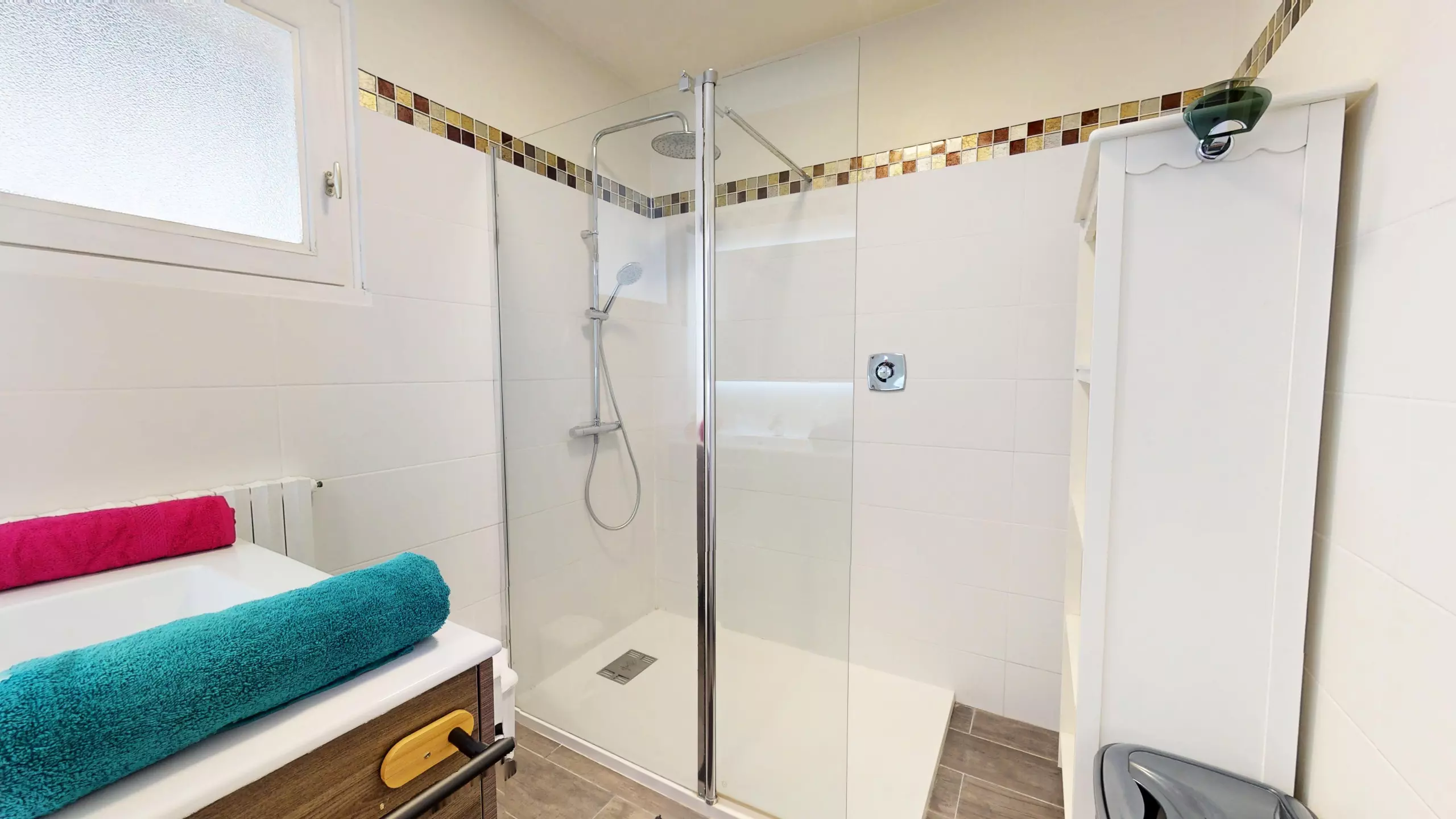 The modern bathroom, with its large shower, has been designed for your comfort.