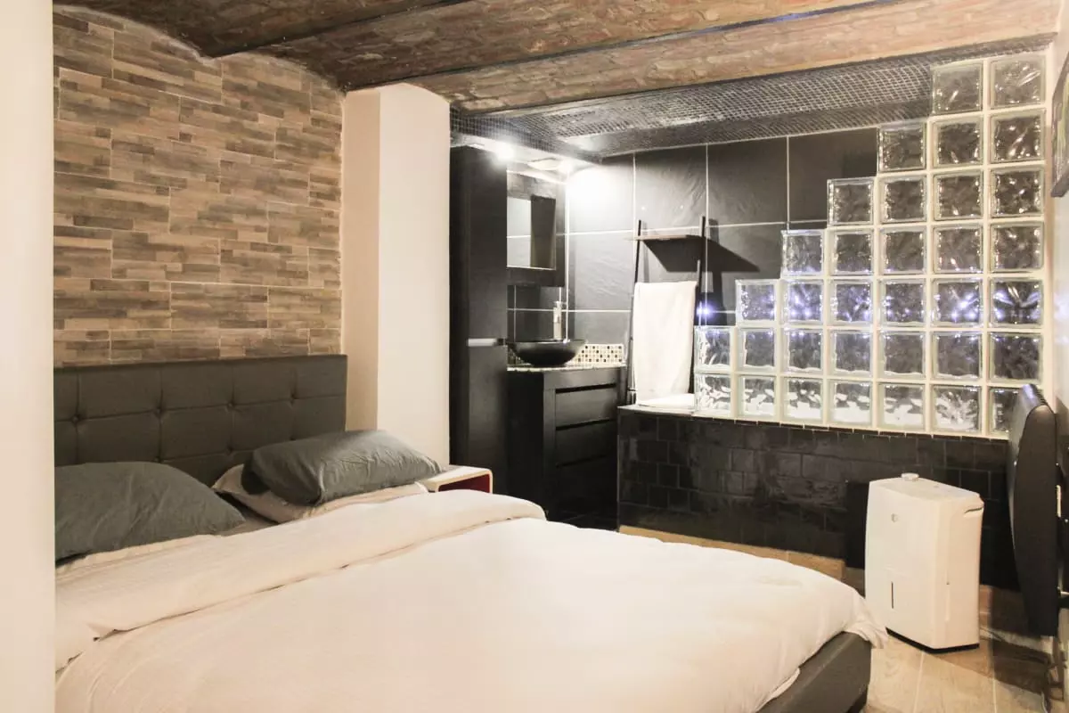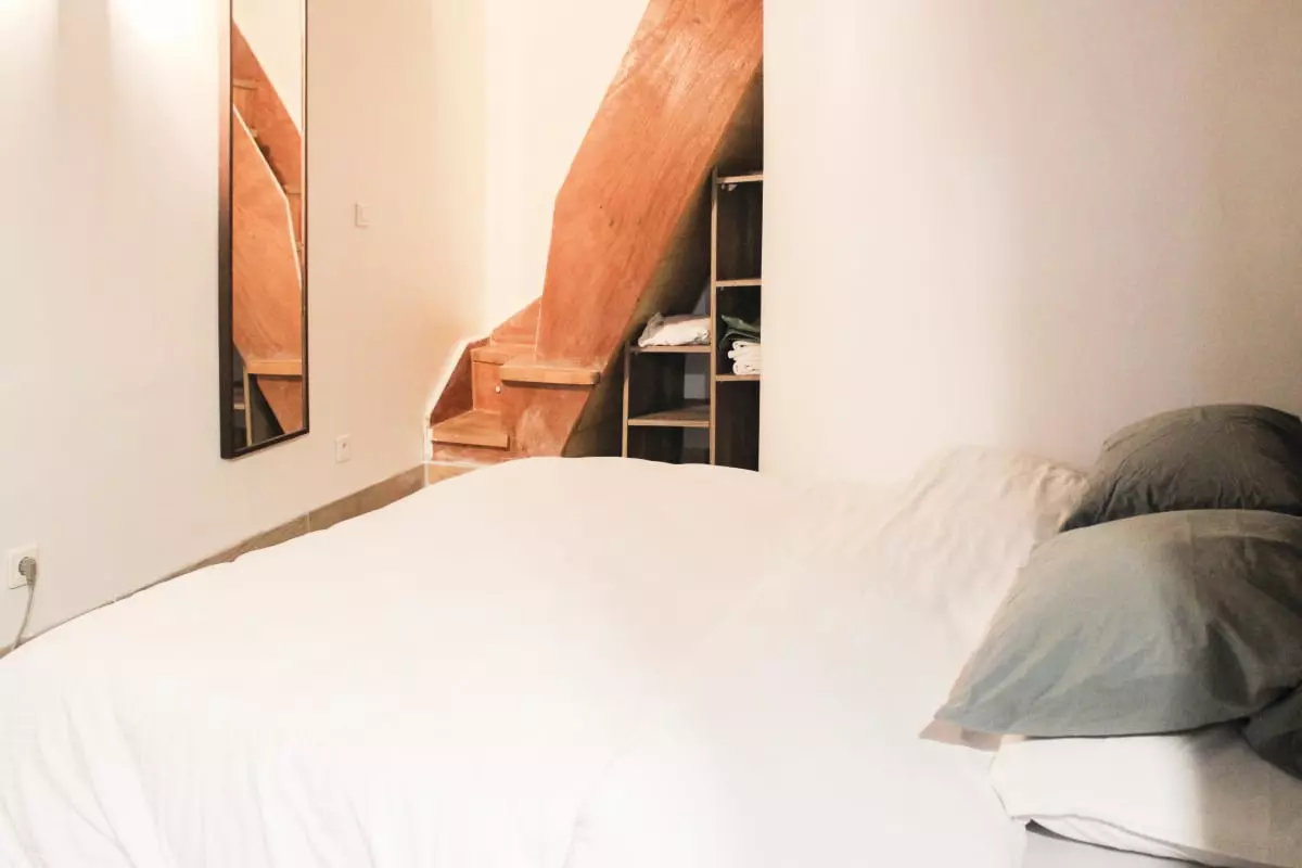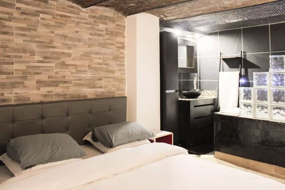 Discover this beautiful loft-style apartment, located on the ground floor, which will charm you with its spacious living area and high ceilings. This welcoming and warm accommodation includes a bedroom in the lower level, converted from the former cellars, furnished with a 160x190 cm double bed, offering a private and relaxing space.