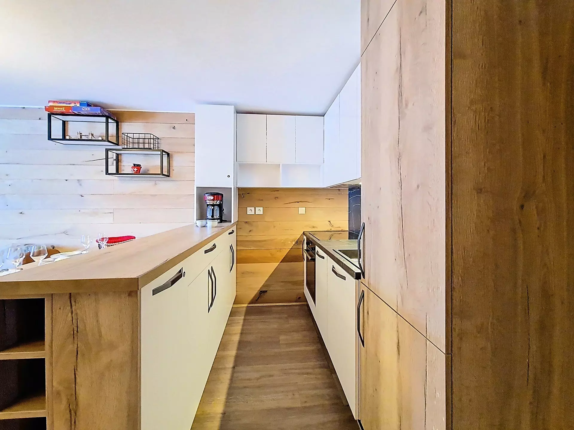 Kitchen equipped with 4 induction hobs, microwave, oven, refrigerator, dishwasher, kettle, toaster and coffee maker.