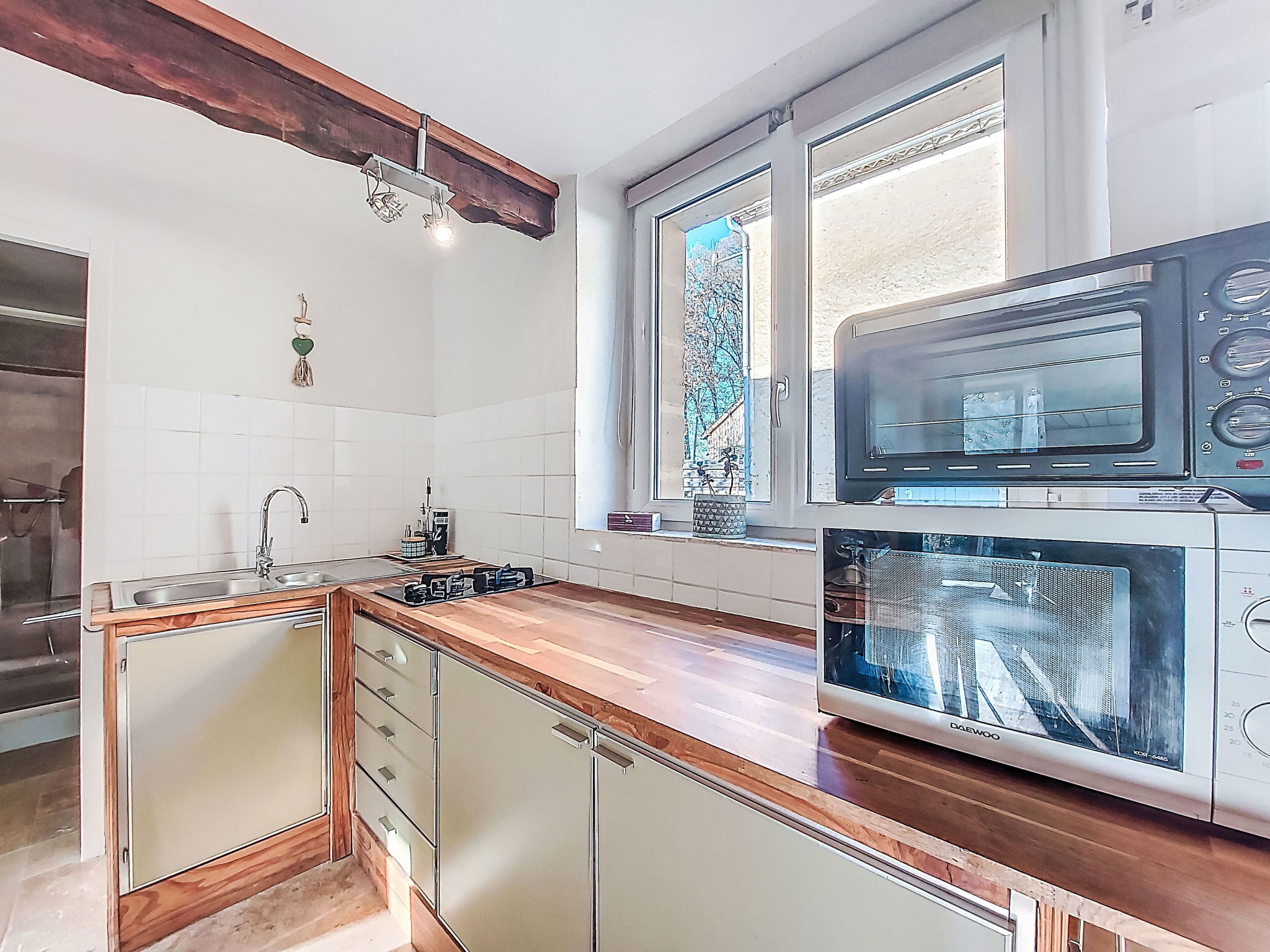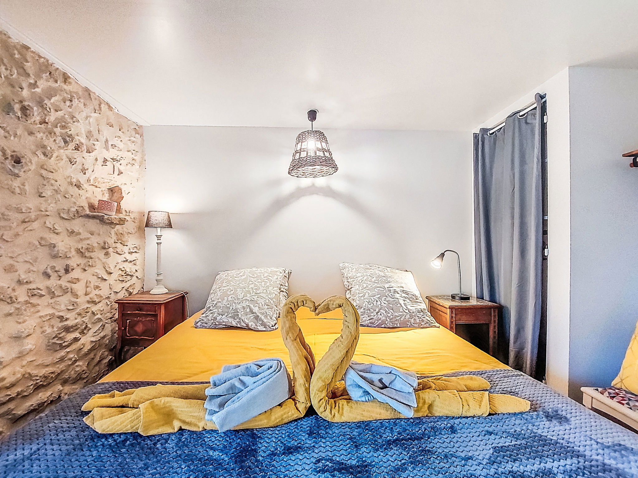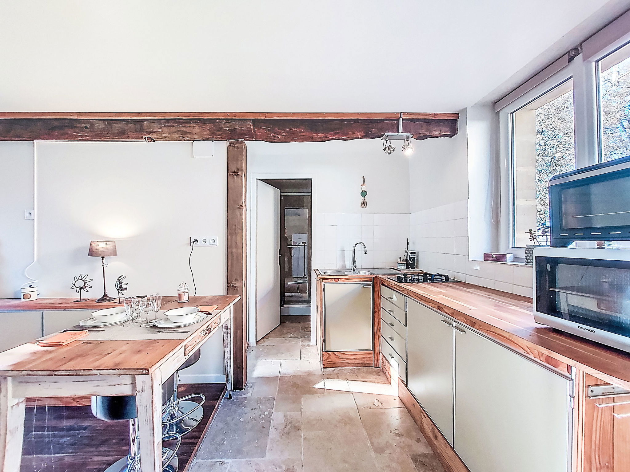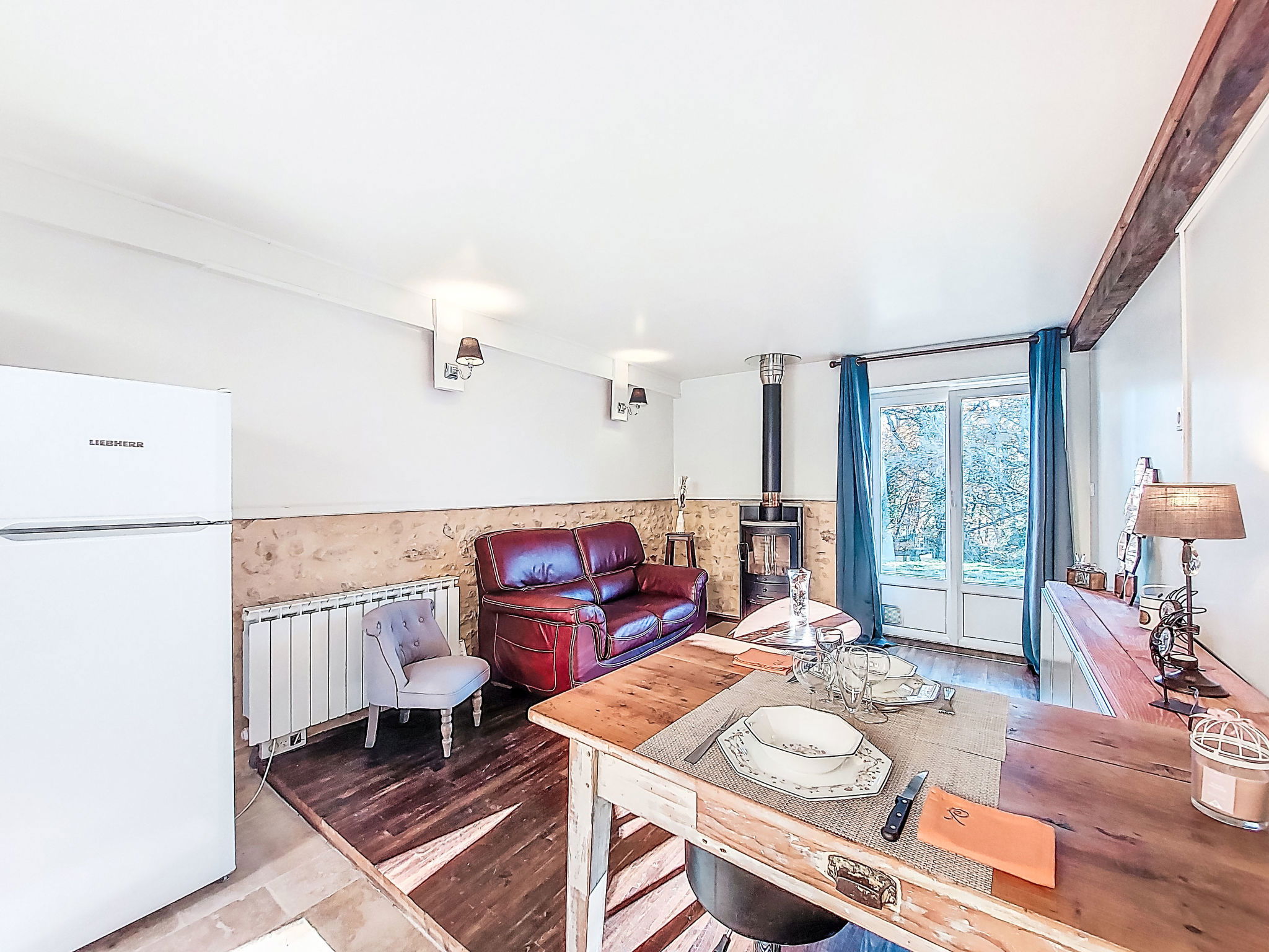 "Gîte Eden", 2-room house 33 m2. Comfortable and beautiful furnishings: living/dining room with wood-burning stove. 1 room with 1 french bed (180 cm, length 200 cm). Kitchenette (mini-oven, oven, 2 gas rings, toaster, kettle, microwave, freezer, electric coffee machine). Shower/WC. Electric heating, wood heating. Terrace roofed. Facilities: Internet (WiFi, free). Parking (1 car) at the house. Please note: non-smokers only. Maximum 1 pet/ dog allowed. Smoke alarm. Offer by a private individual according to Art. 155, IV of CGI.