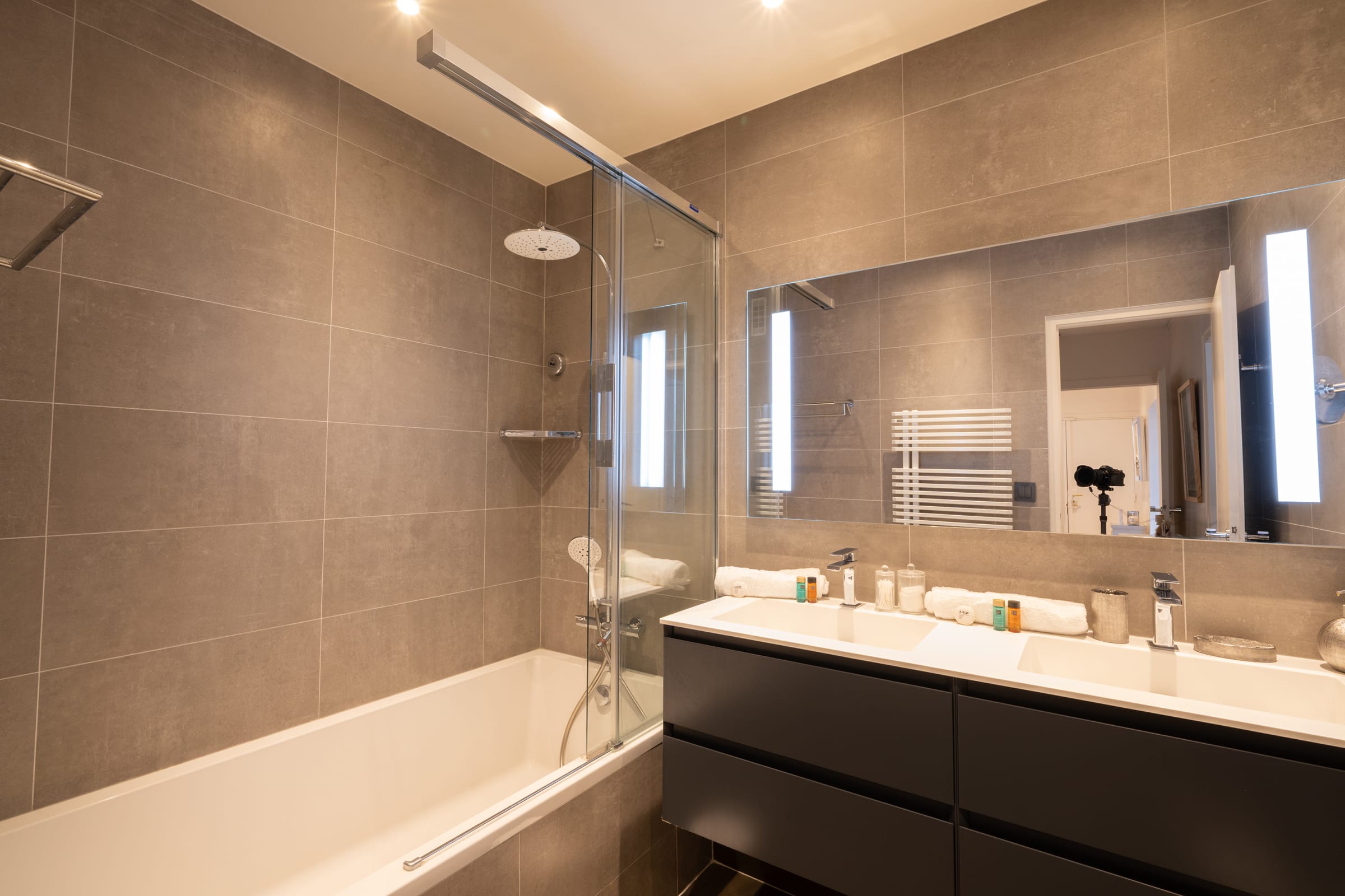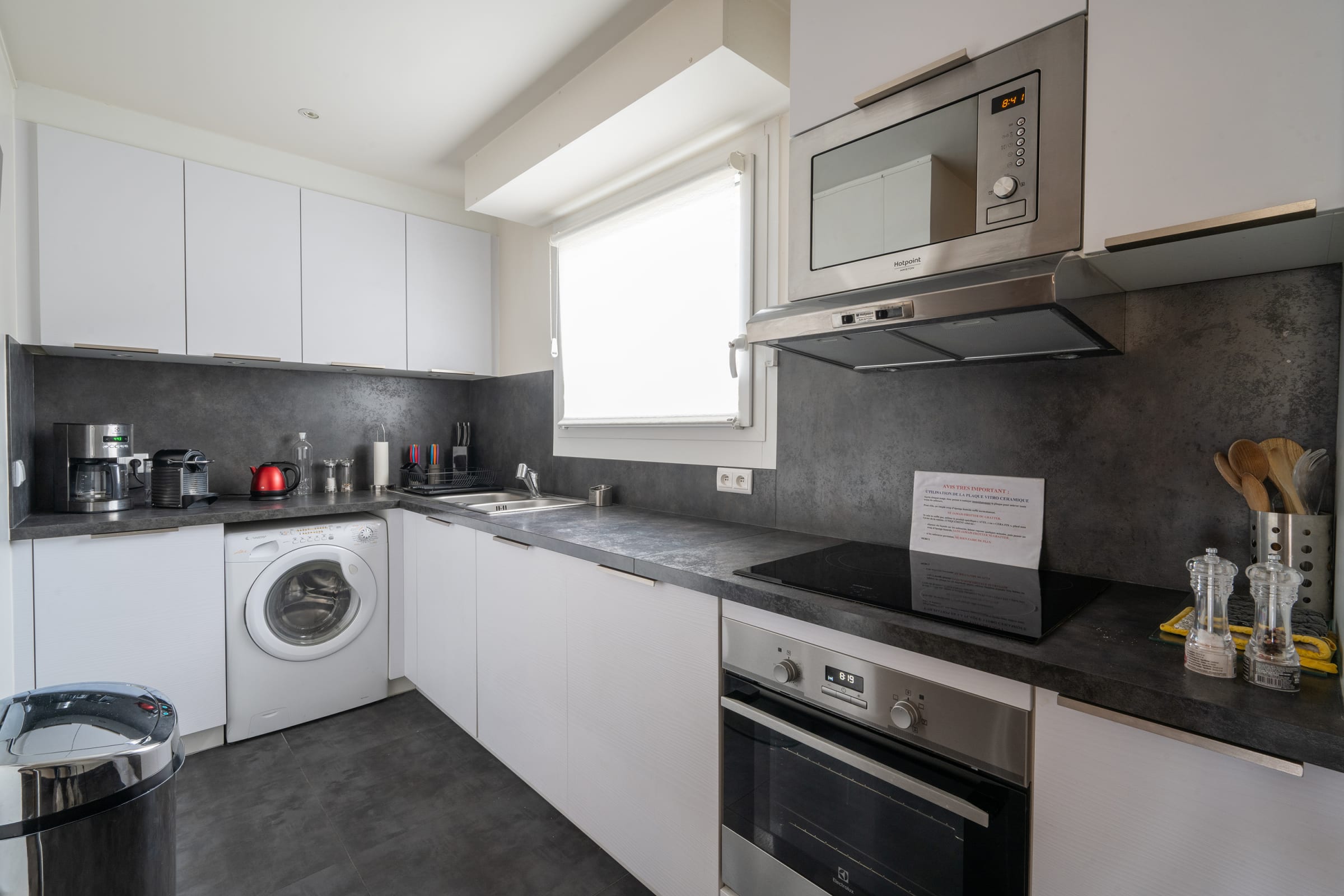 - a fully-equipped kitchen (toaster, kettle, fridge, freezer, dishwasher, washing machine/dryer combination, oven, hob, microwave, Nespresso coffee machine),