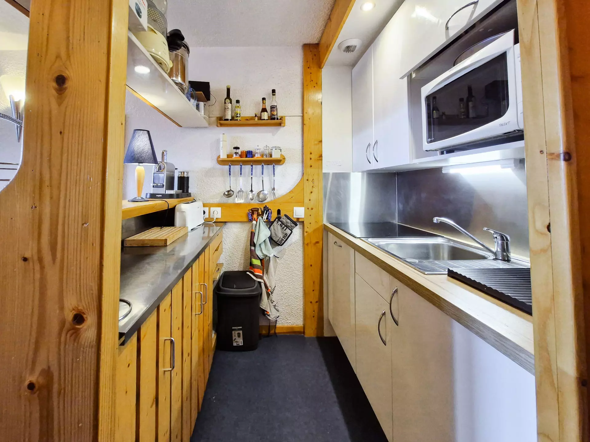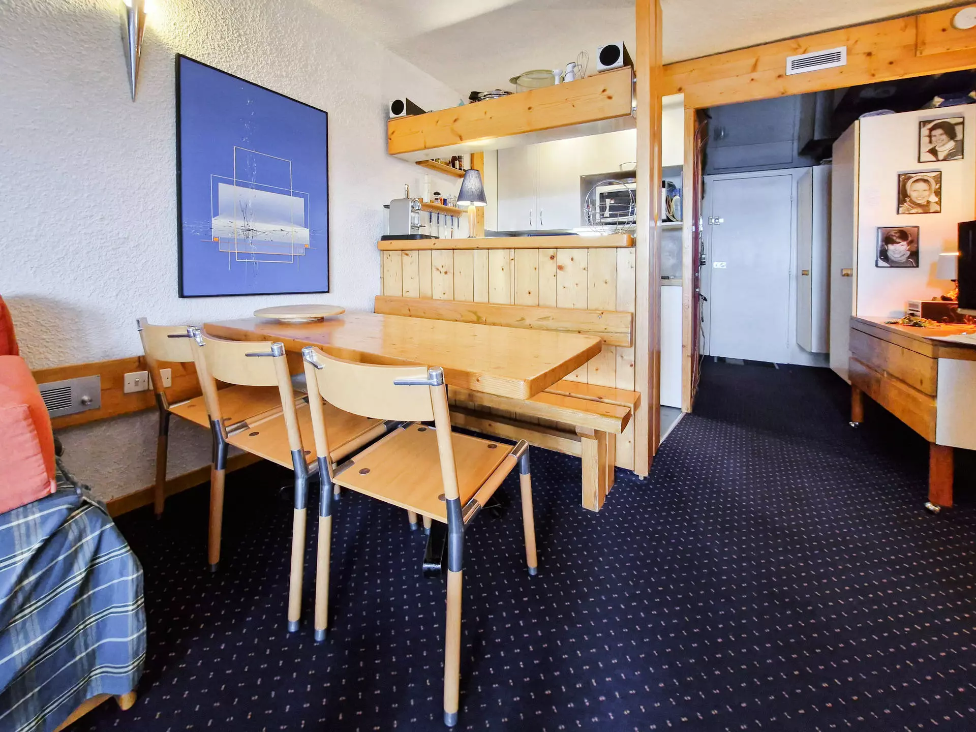 For your ski or summer holidays in Les Arcs, book this 2-room apartment which benefits from a southwest-facing balcony with views of the pedestrian street and the mountains