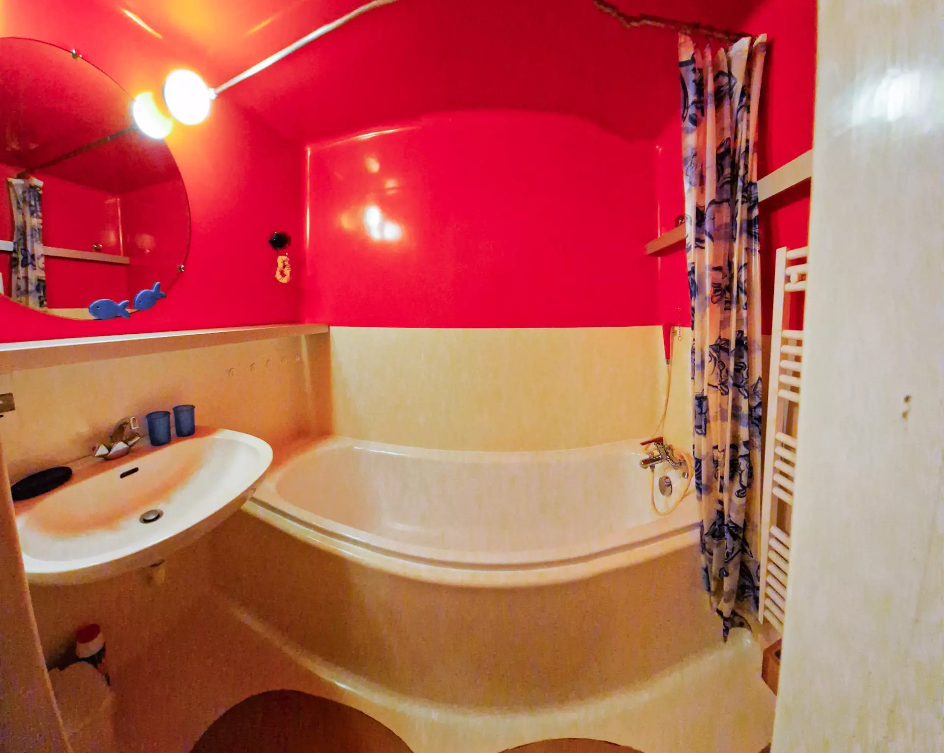 A bathroom with a bathtub and separate toilet is at your disposal.