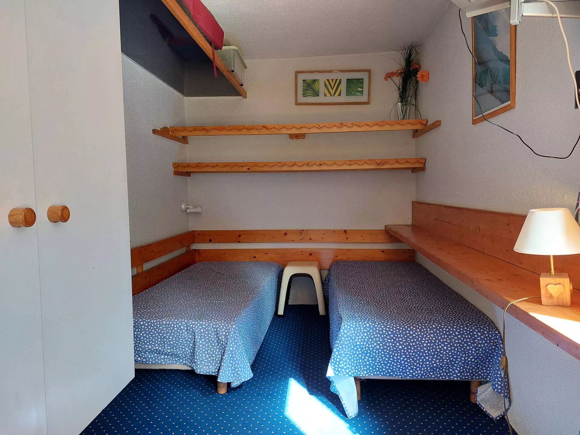The living room contains 2 single beds.
