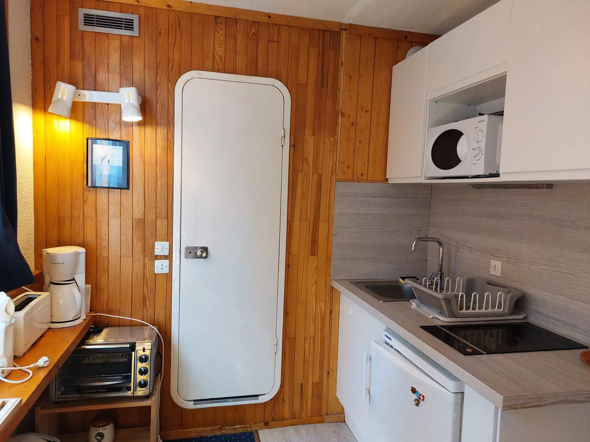 It is fully equipped with a combination oven, refrigerator, toaster, kettle and coffee maker.