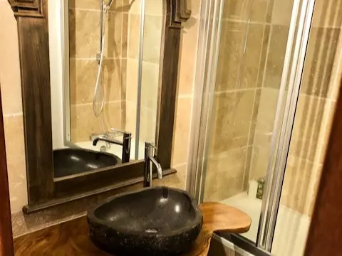 Completely furnished in a chalet style, it offers a cozy atmosphere thanks to its warm materials, wooden furniture, and tasteful decor. The accommodation benefits from abundant natural light thanks to its large windows overlooking the surrounding countryside.