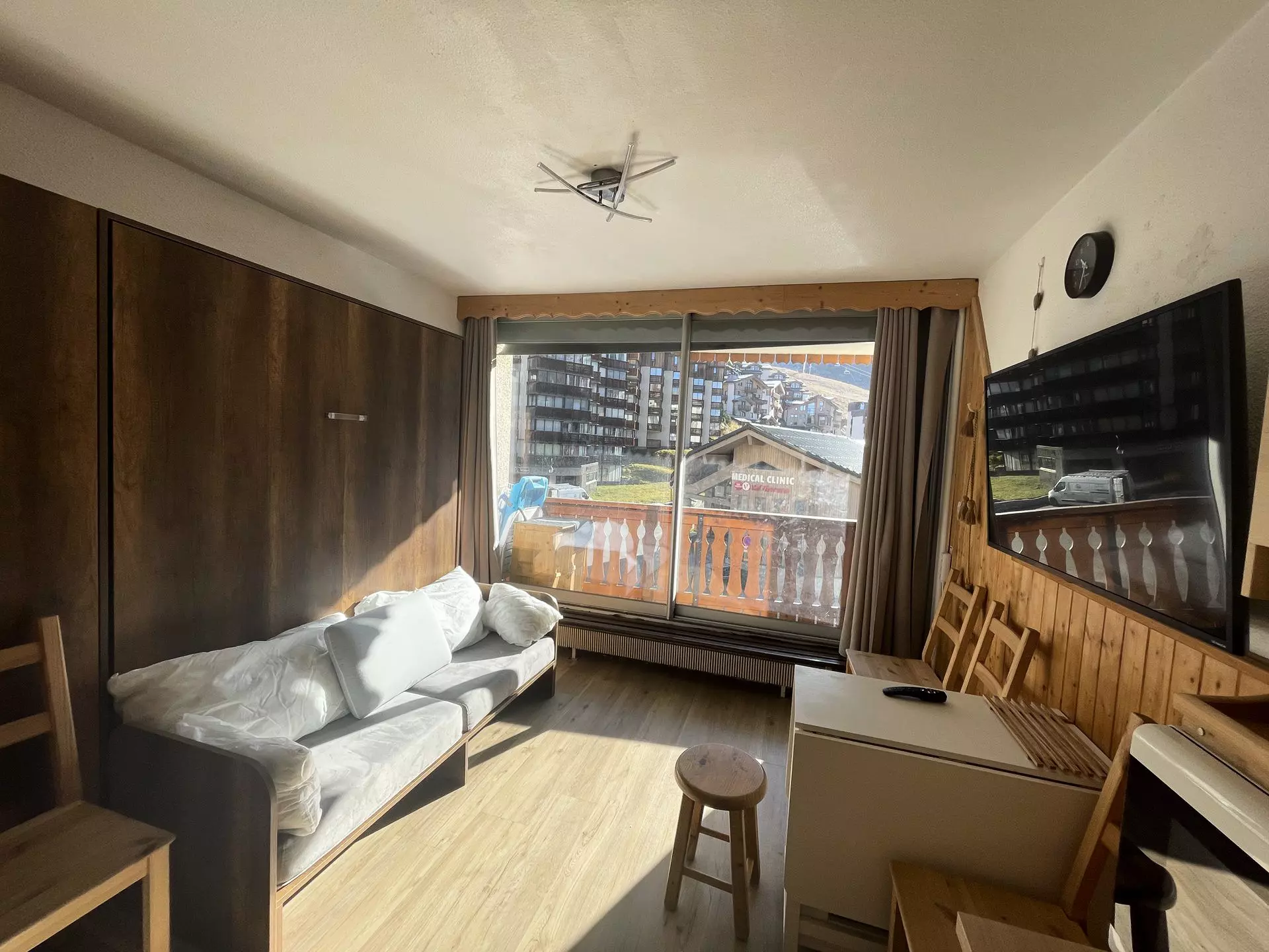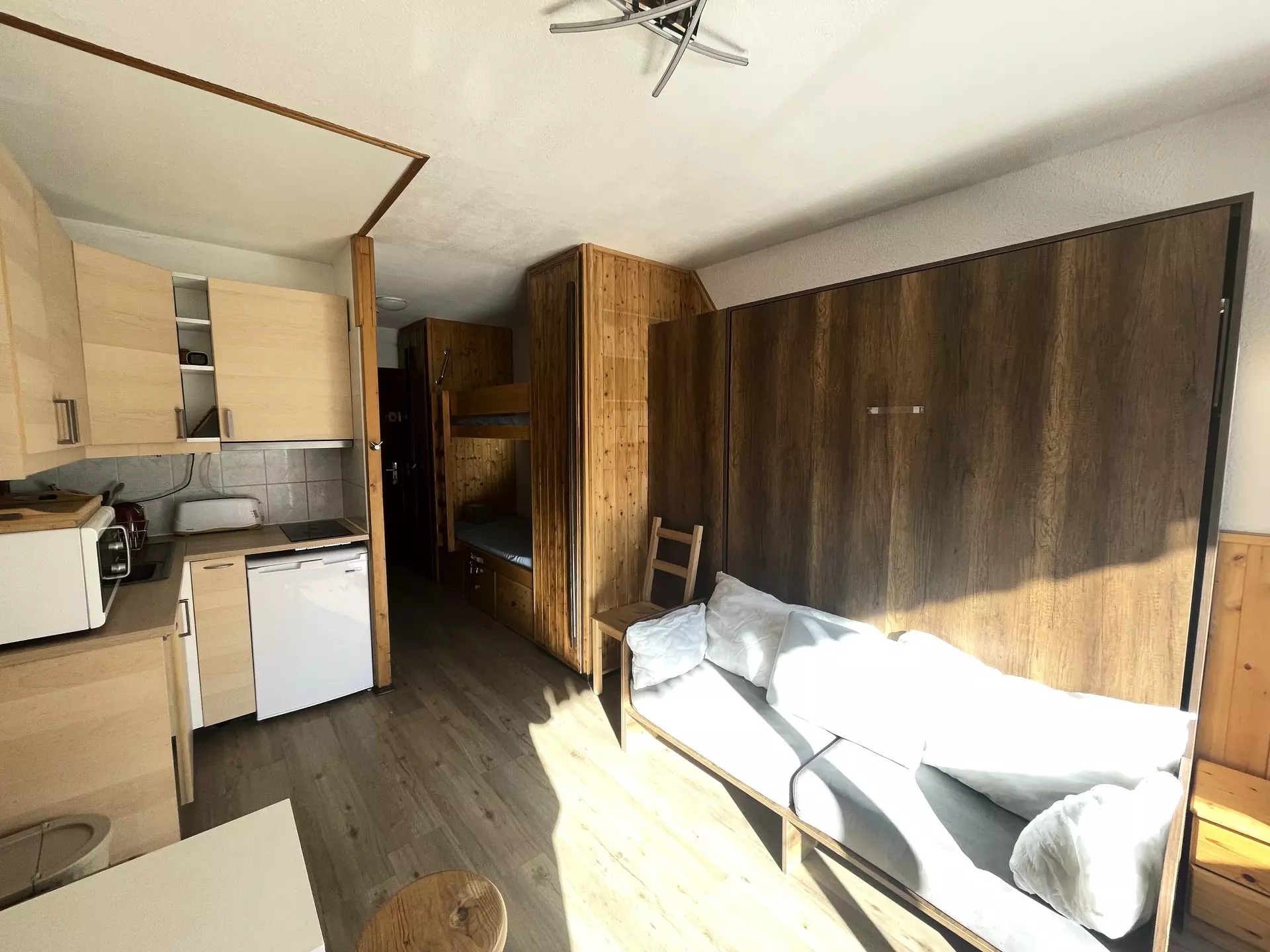 Charming studio apartment offering four beds and all the desired comforts: fully equipped kitchen with dishwasher, Nespresso machine, microwave, etc. Flat-screen TV, lovely bathroom. Ample storage. Attractive south-facing balcony with mountain views. Ideal for families. Quiet location.