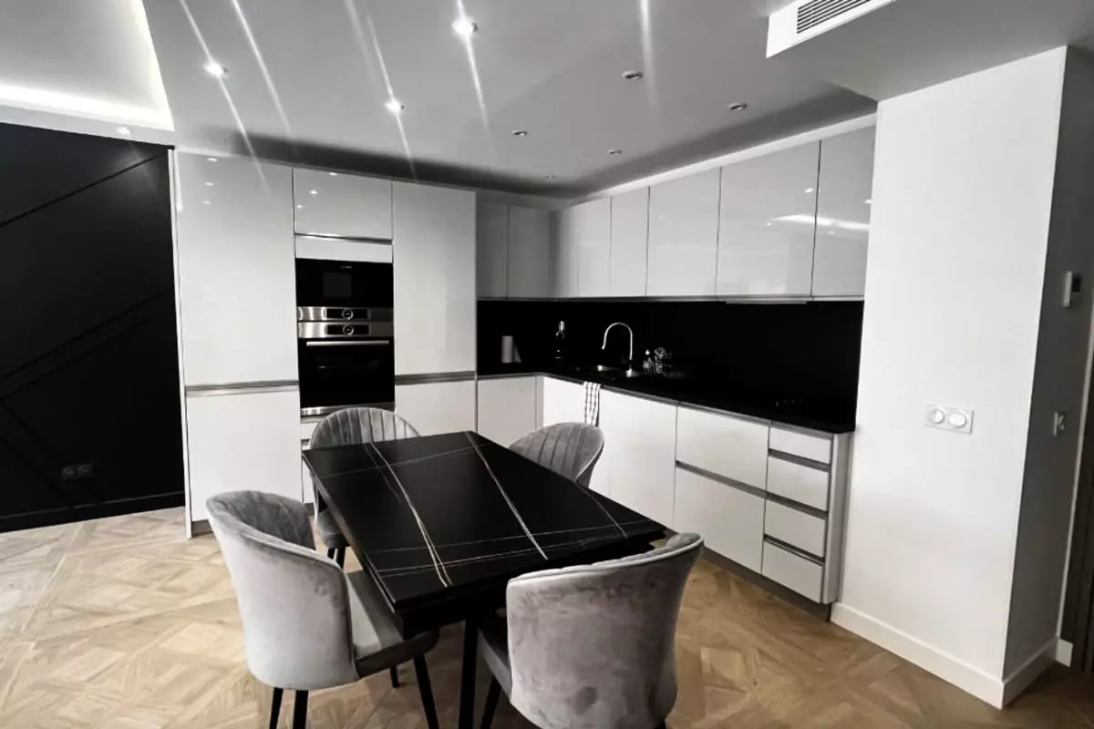 The fully equipped kitchen, with an oven, microwave, dishwasher, and coffee machine, will allow you to prepare delicious meals to enjoy on the balcony, where you can soak up the Mediterranean climate. For your convenience, a washing machine, iron, and hairdryer are also provided.