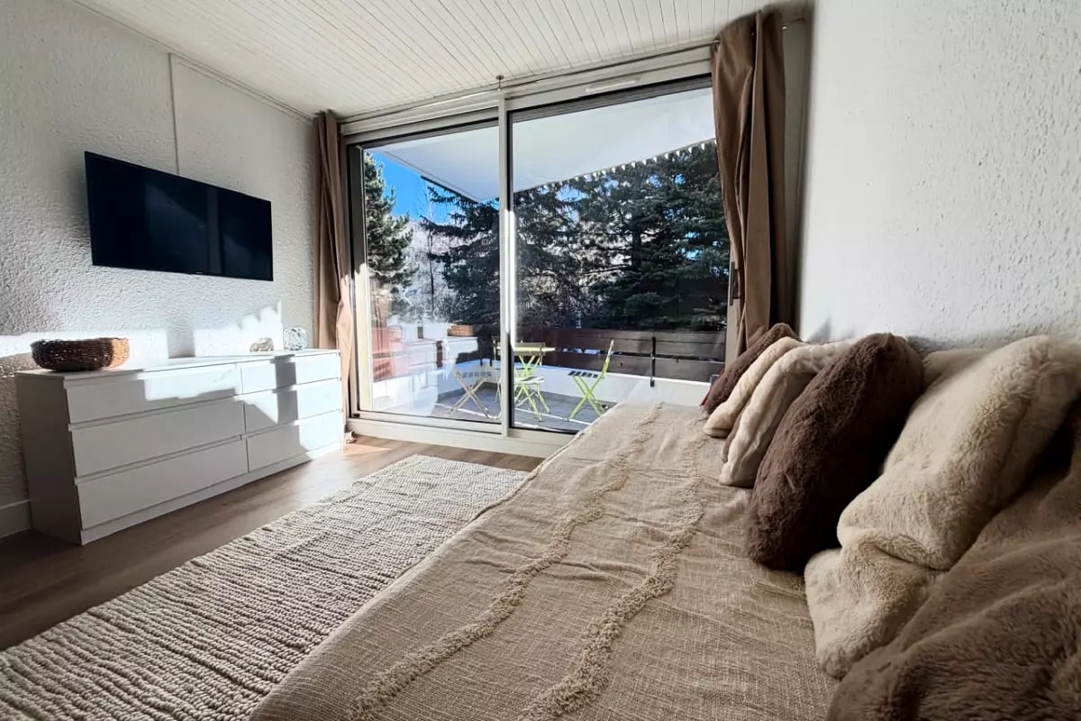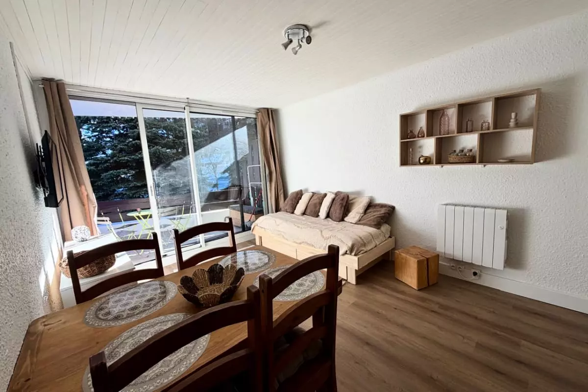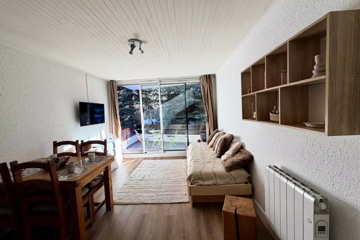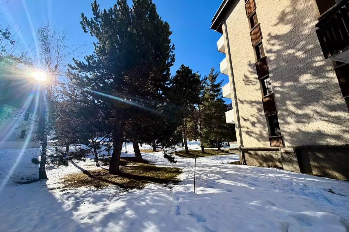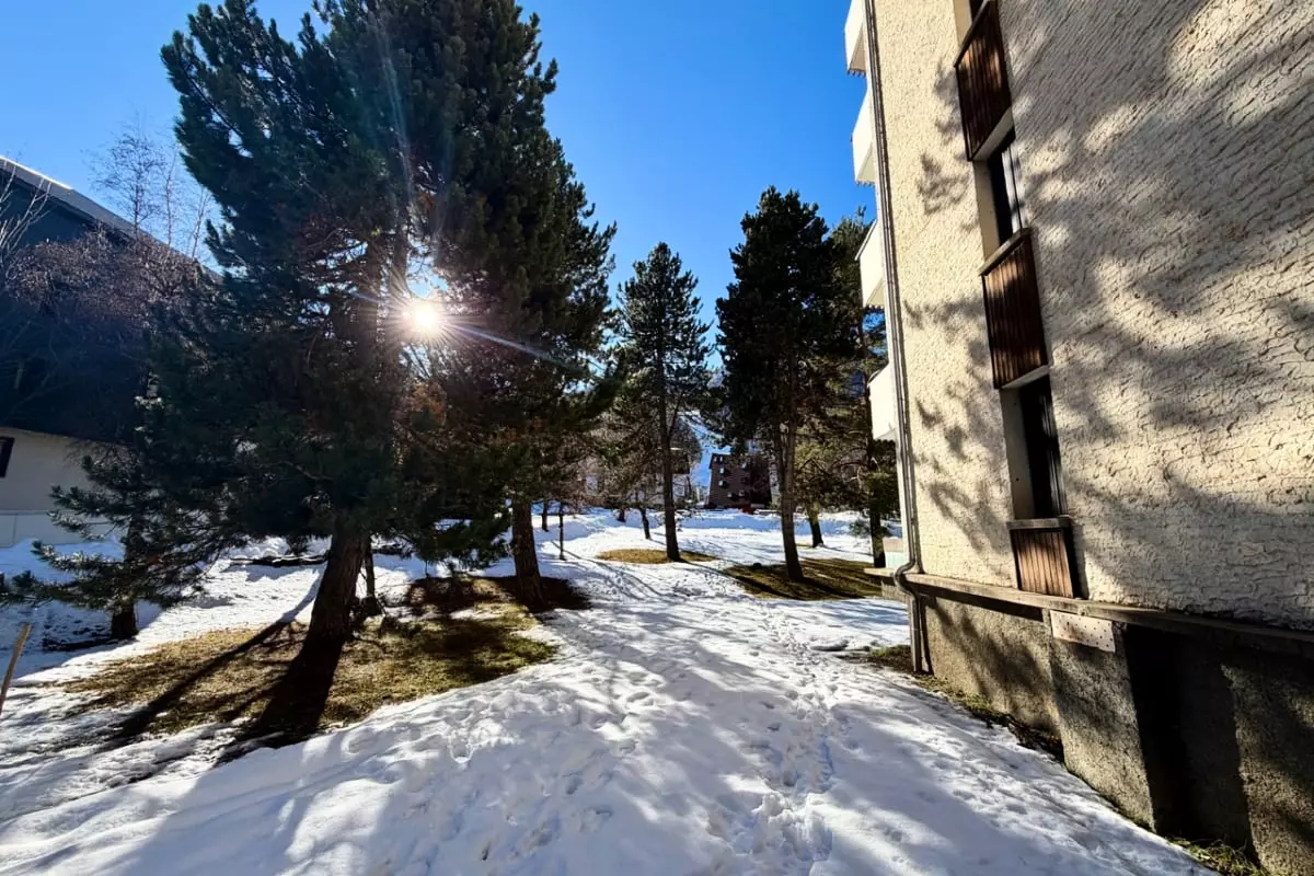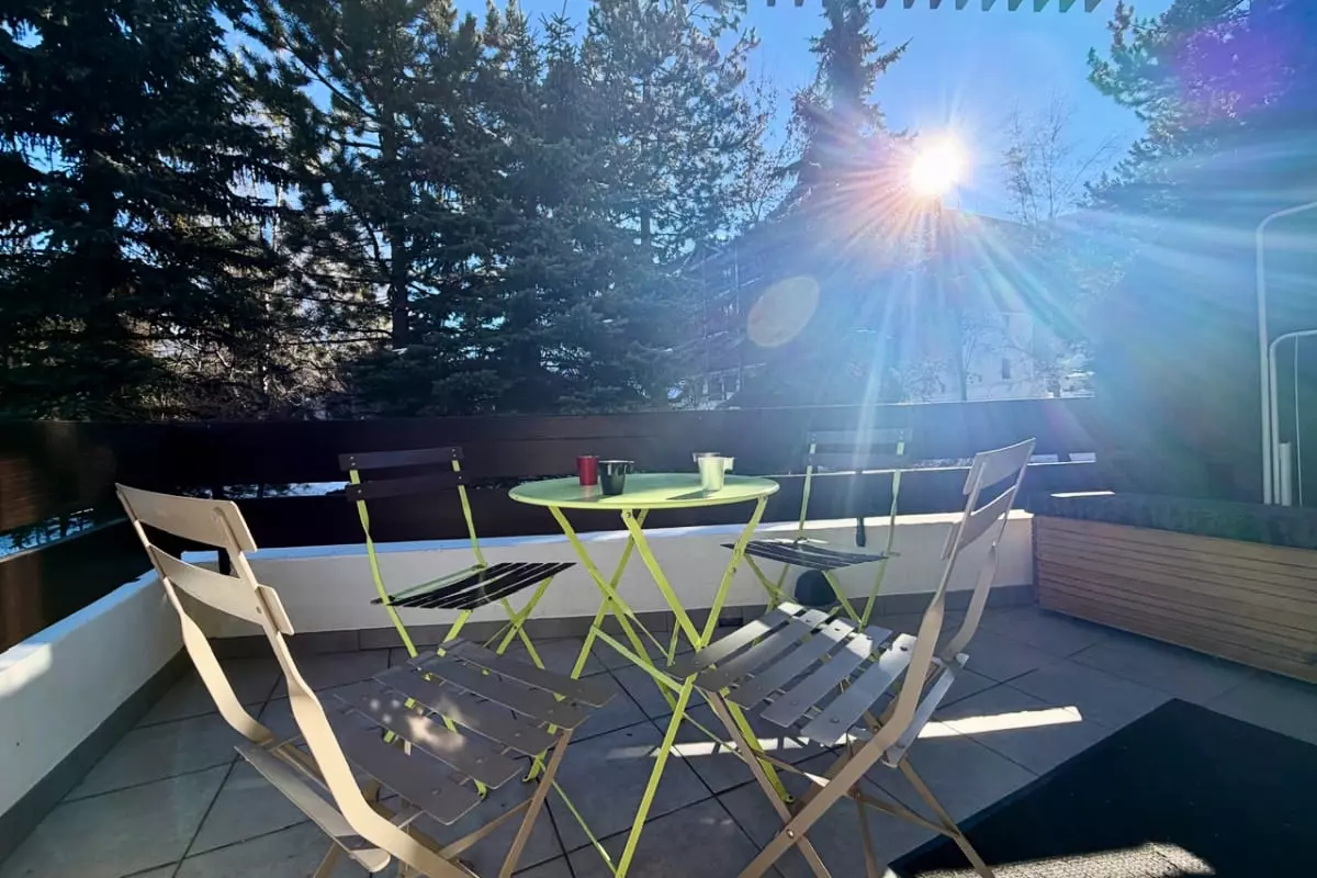 One of the accommodation's strengths is its practicality: a lovely terrace awaits you, perfect for enjoying a coffee or a relaxing meal after skiing, all while taking in the pleasant view. The location is quiet, welcoming, sunny, and close to public transport.