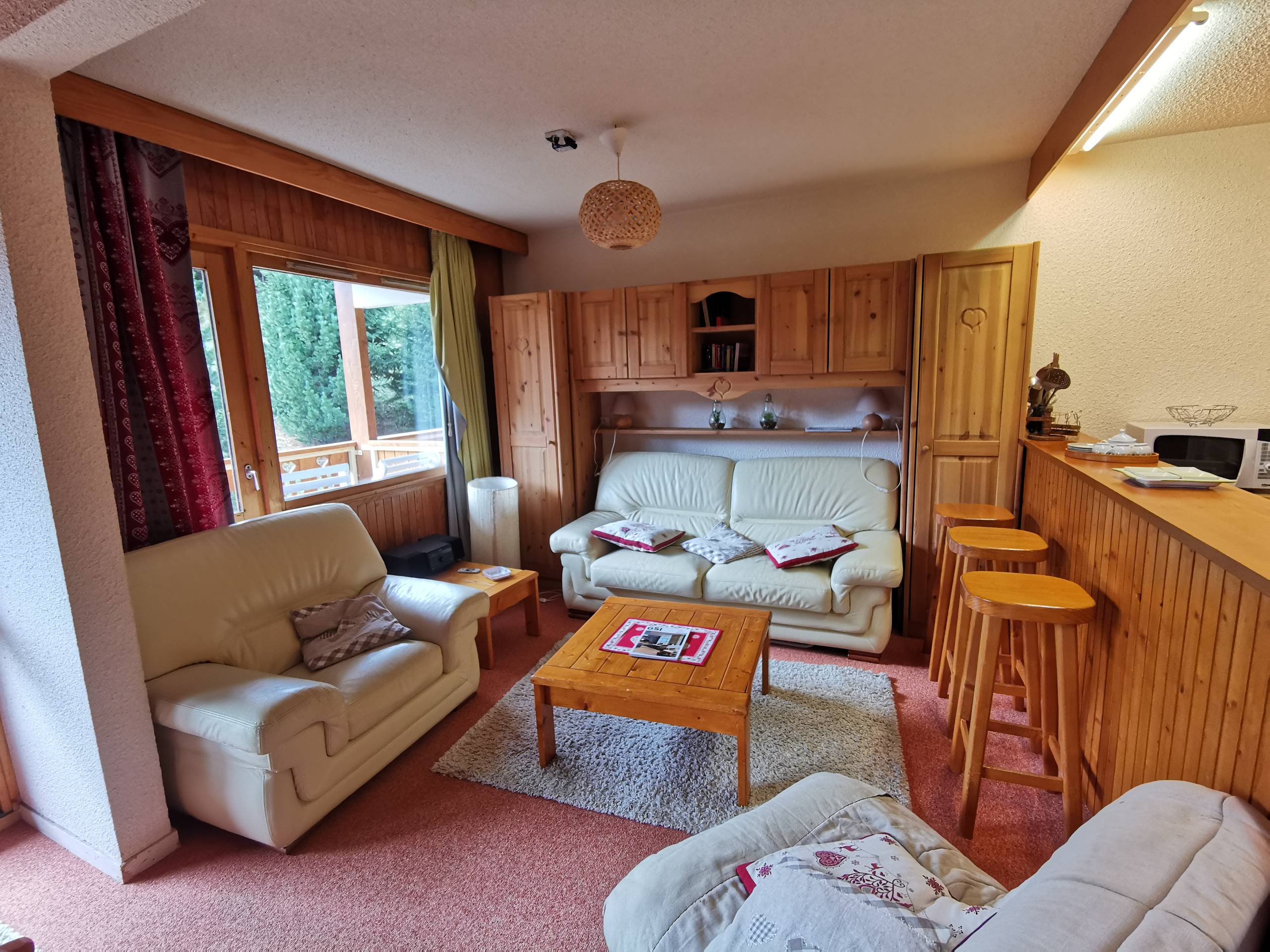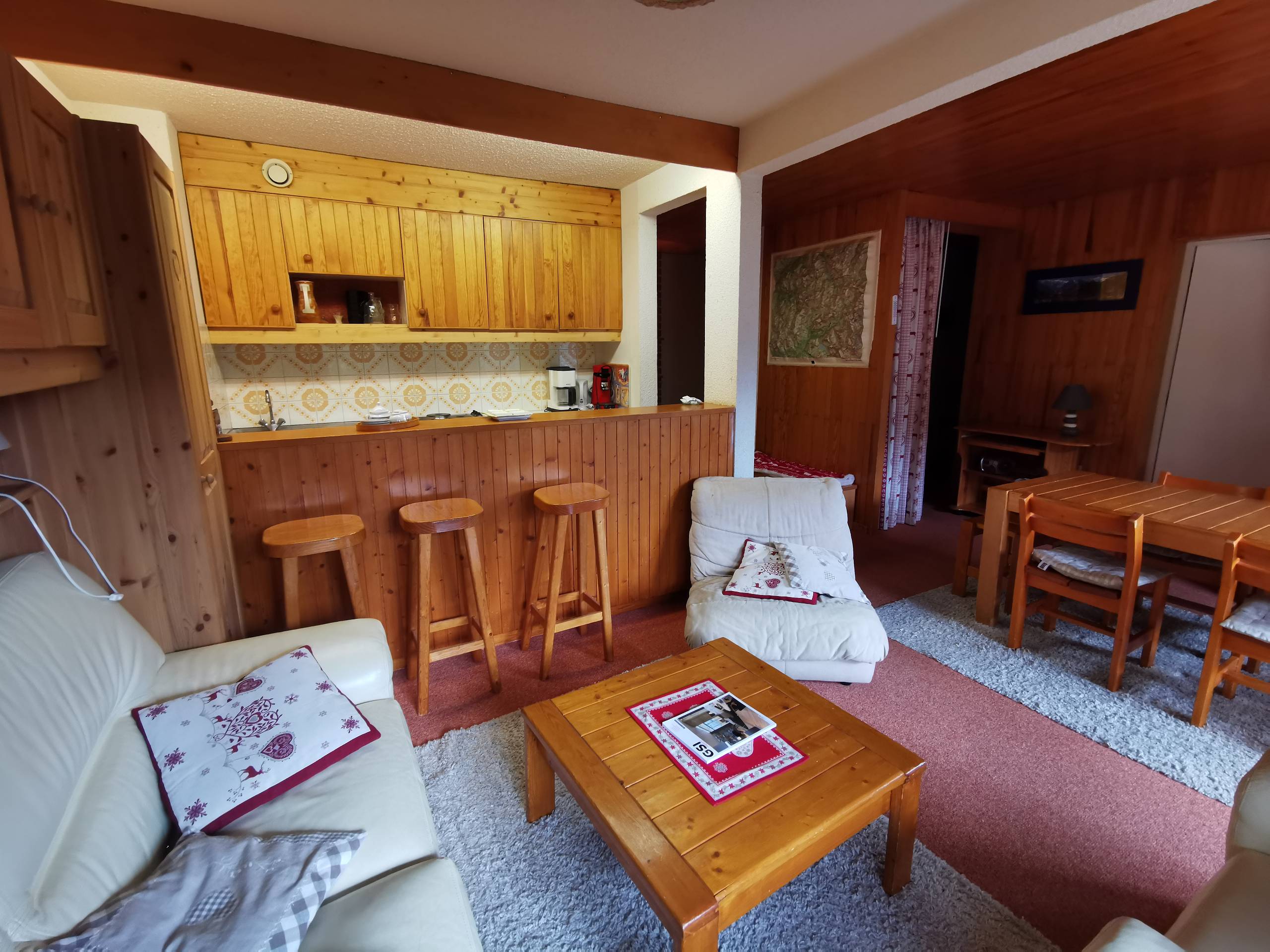 Living room with a sofa (120x180) and a TV with DVD player. Bedroom with a double bed (160x190) and alcove with two sets of bunk beds, 4 sleeps (80x190). The kitchen is equipped with stove, oven, dishwasher, refrigerator, kettle, coffee maker Senseo and washing machine. Bathroom and separate wc. Balcony south facing. Ski locker and a lift in the residence. 2nd floor. Non-smoking apartment /Pets forbidden.