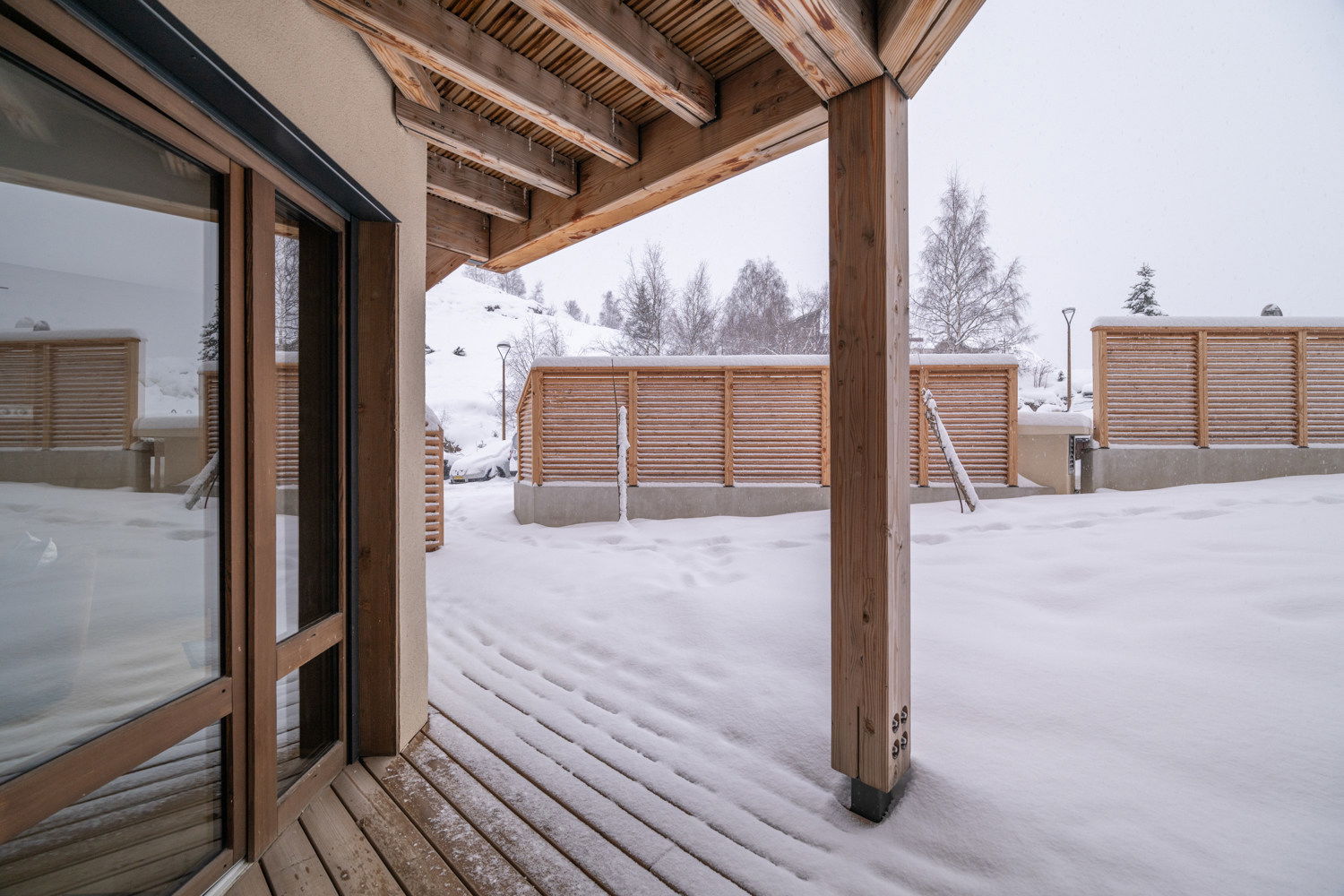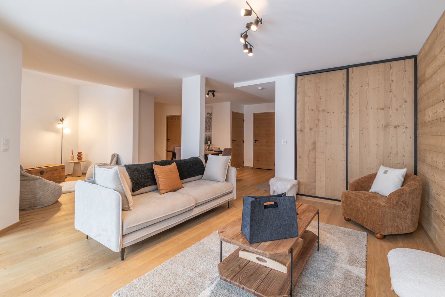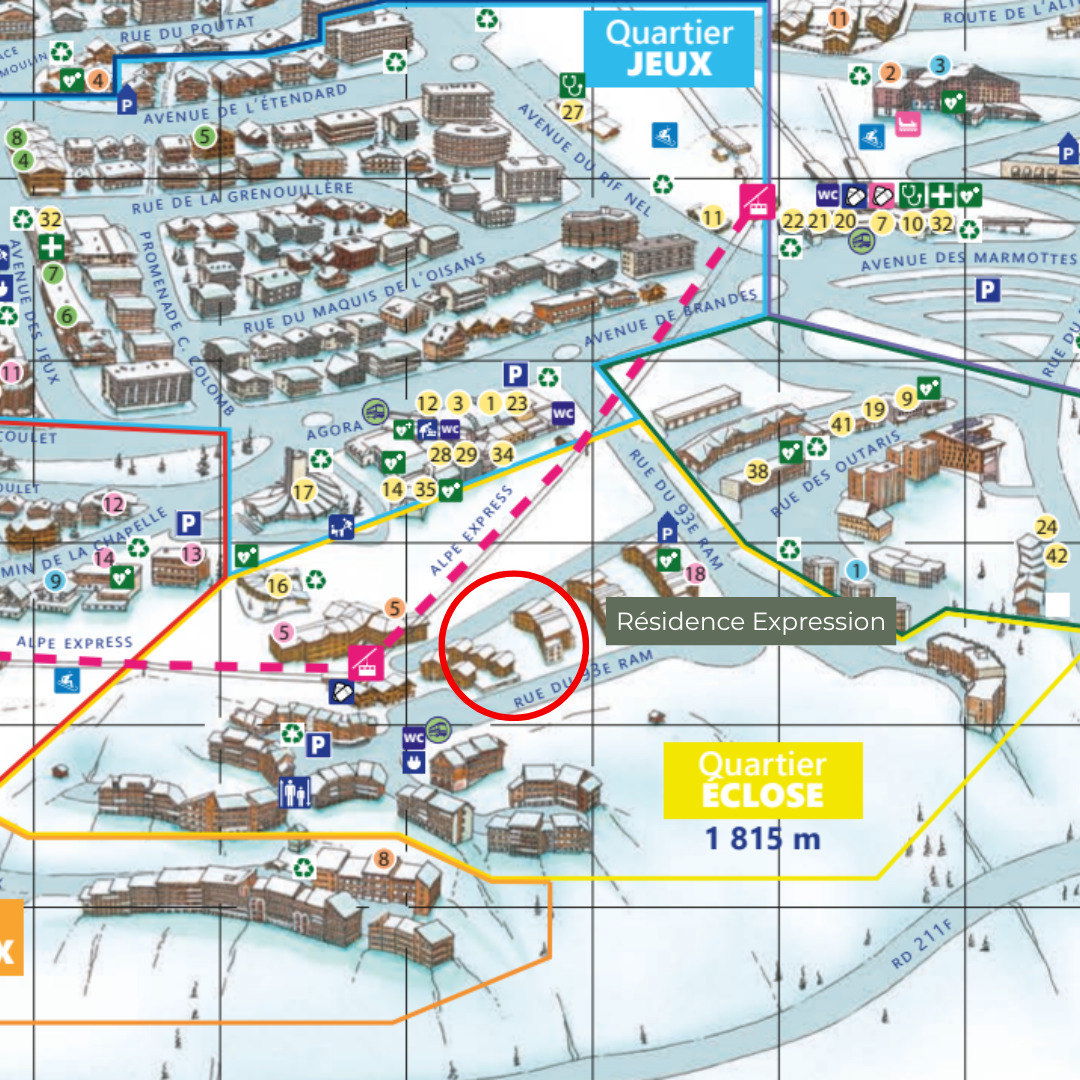 In the heart of Alpe d'Huez, apartment B02 in the luxury Expression residence embodies contemporary Alpine elegance. This 101 m² three-bedroom apartment, located on the ground floor, offers a bright and refined setting for six people, with three comfortable double bedrooms. Its cosy living room, elegant open-plan kitchen and meticulous finishes invite you to relax. Facing south-east, it enjoys ideal sunshine from the morning onwards. The residence, with ski lockers, indoor parking and direct access to the slopes via the Alpe Express, is ideally located near the Palais des Sports and the lively Avenue des Jeux.