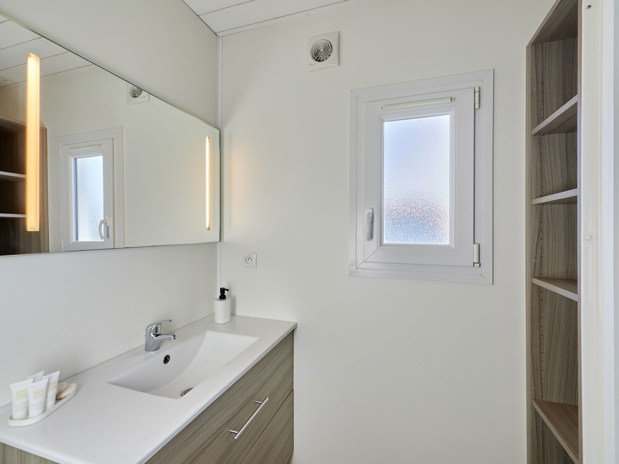 3-room chalet 35 m2. Comfortable and beautiful furnishings: living/dining room with TV (flat screen). 1 room with 2 beds (90 cm, length 190 cm). 1 room with 1 french bed (140 cm, length 190 cm). Open kitchen (oven, dishwasher, 3 induction hot plates, toaster, kettle, microwave, electric coffee machine, Capsules for coffee machine (SENSEO)). Shower, sep. WC. Electric heating. Parking (fenced 2 cars). Please note: non-smokers only. 1 small pet/ dog allowed. Smoke alarm. Offer by a private individual according to Art. 155, IV of CGI.