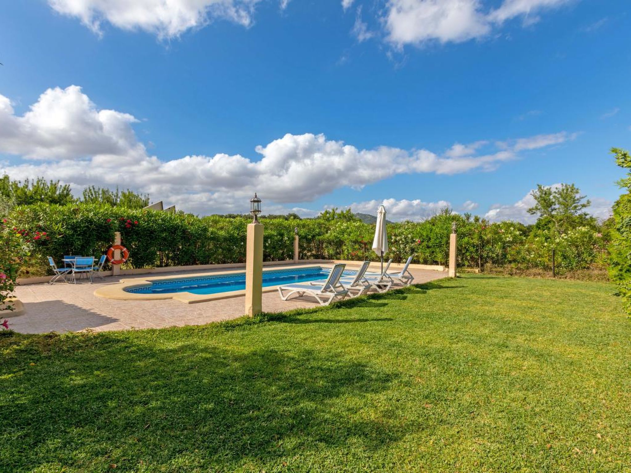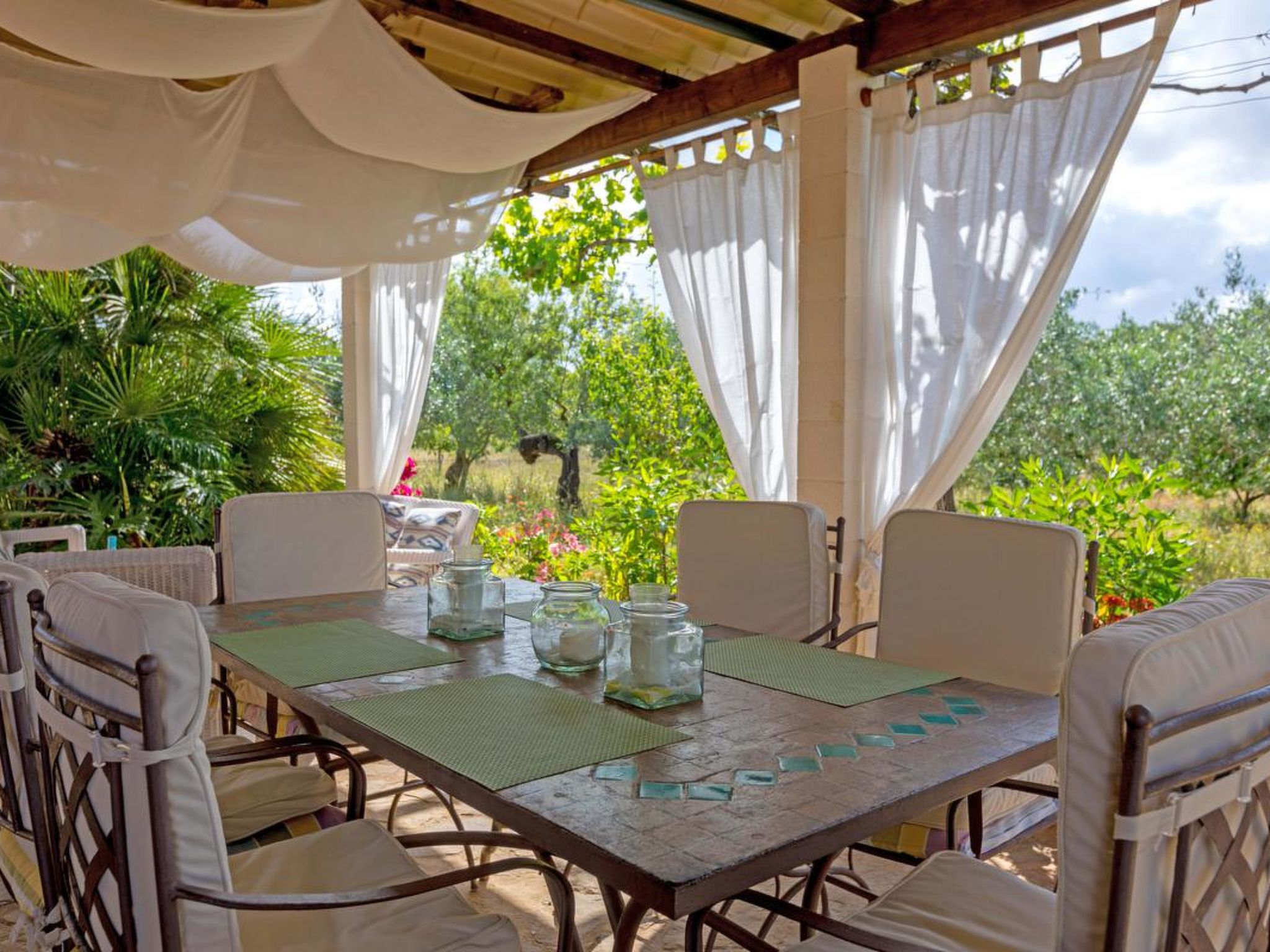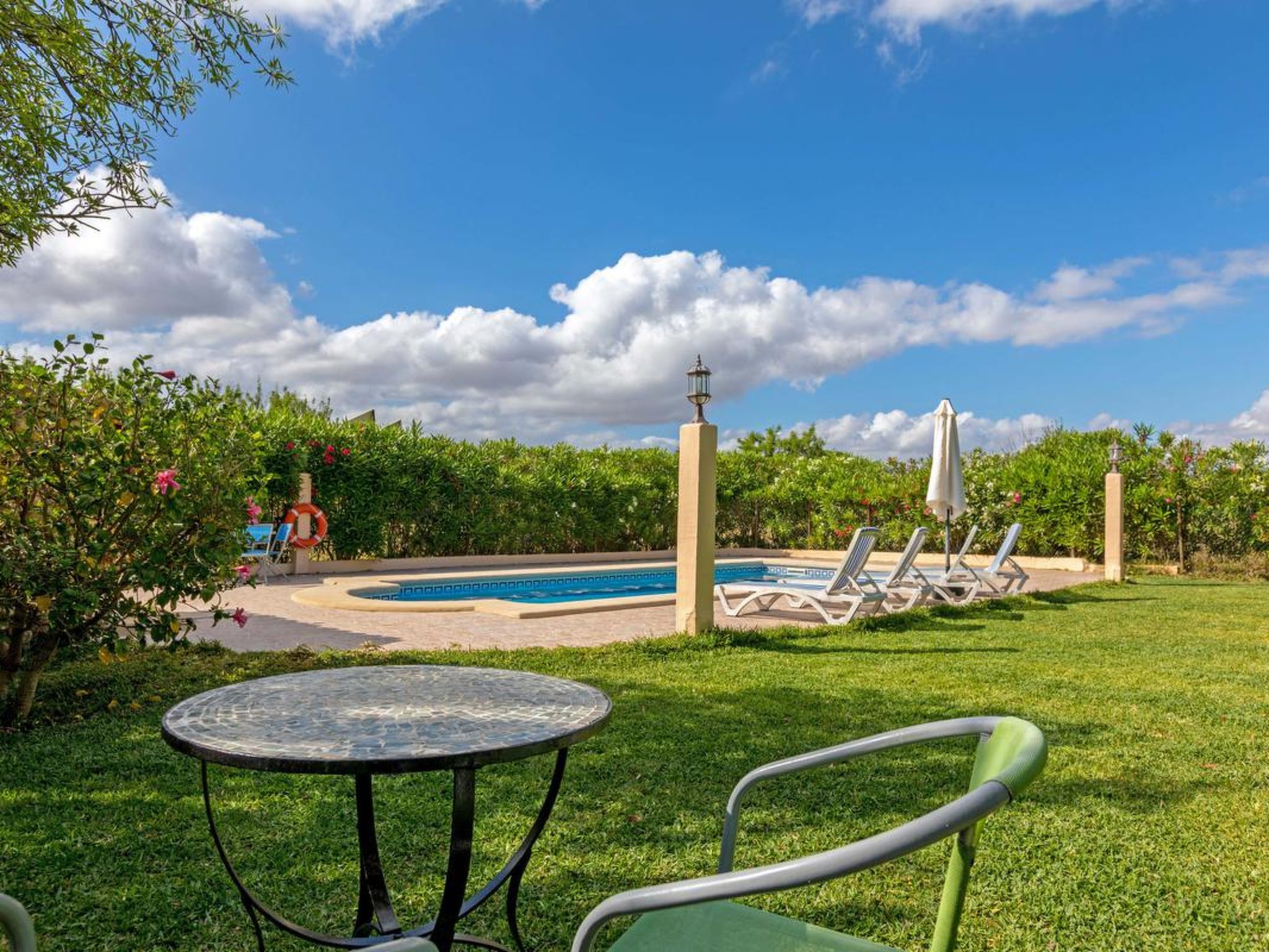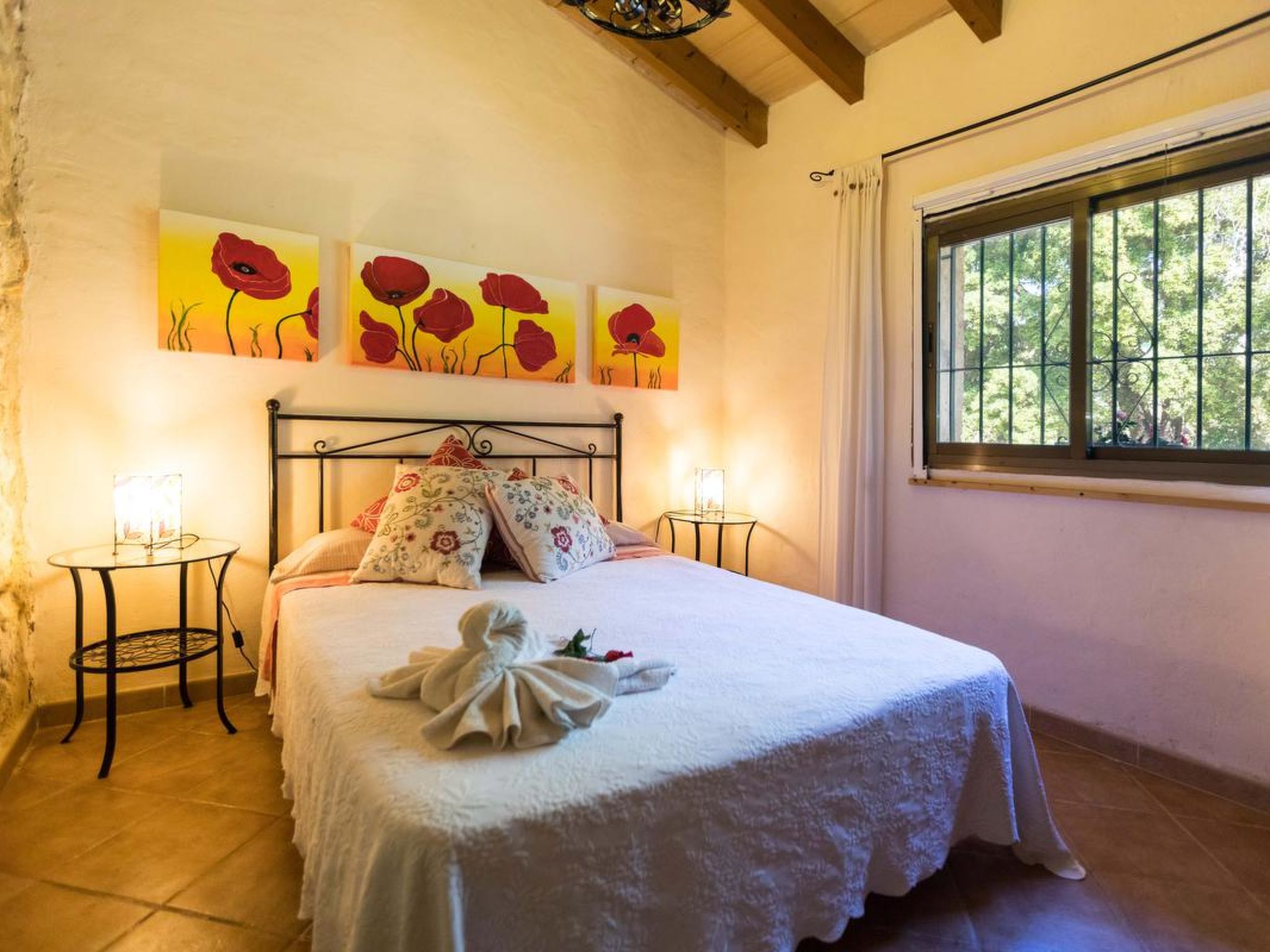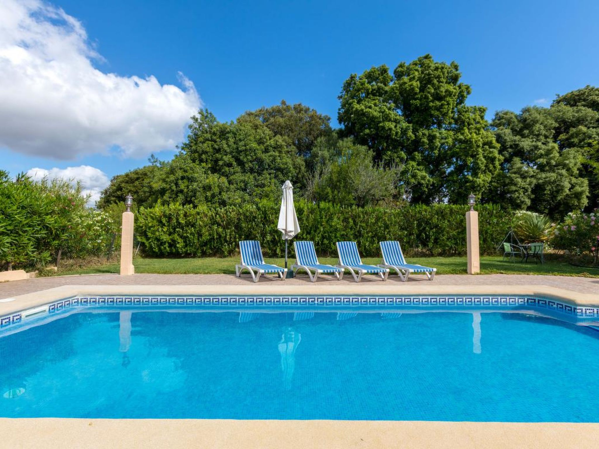 Gorgeous stone cottage set in garden with fruit trees, in the country near the friendly little village of Buger and 15 minutes from the lovely sandy beaches of Alcudia and Playa de Muro.Two double rooms, a lovely country kitchen with dining area, very cosy living room with fireplace and plenty of outdoor porches, terracing, gardens and land. All with gentle rustic touches of wood, terracotta floors, ceramic tiles, and best of all the beautiful bare stone walls, built thick to keep the heat out and the warm in.This eco-friendly house offers fresh eggs and organic vegetables to guests. The saline pool is completely fenced and surrounded by cyprus trees, for privacy, protection and safety.Also with the little ones in mind, there are swings, a slide and a climbing frame in the shade of the old Holme oak tree.Don’t expect to see any neighbours – the nearest farms are several fields away. The cottage is on the edge of a large wooded area, so you will enjoy birdsong, including nightingales in spring and summer.The village of Buger has a supermarket, banks and cafes, plus the bakery that makes the best ensaimadas (typical pastries) in Mallorca! (True – people drive up from Palma to get them)This harmonious little house invites you and your family to enjoy a relaxing holiday in the country within easy driving distance from the sea. The only problem is – you won’t want to go home!
