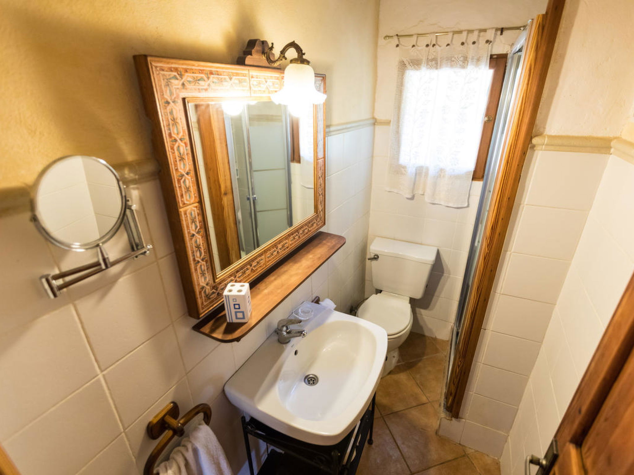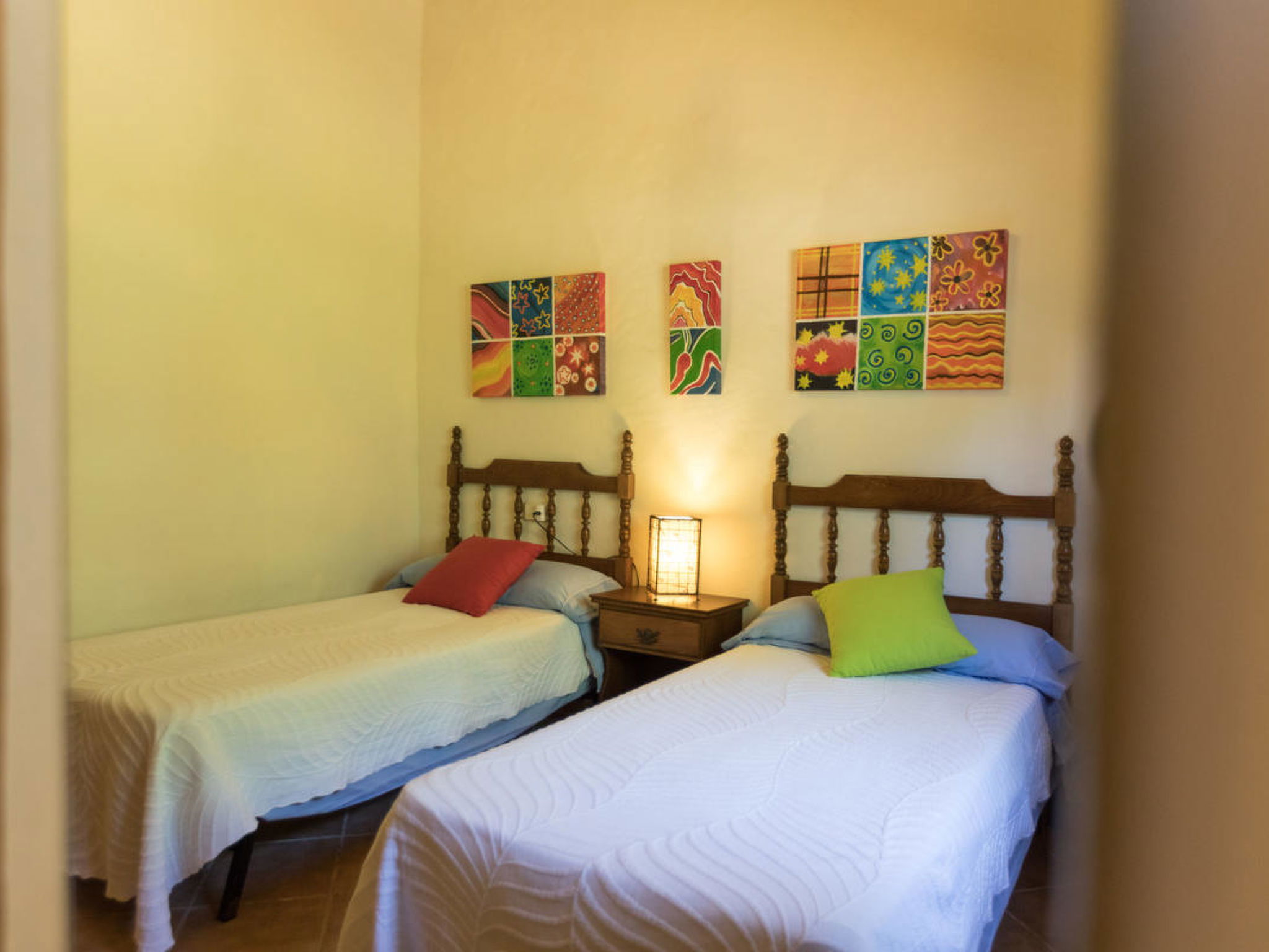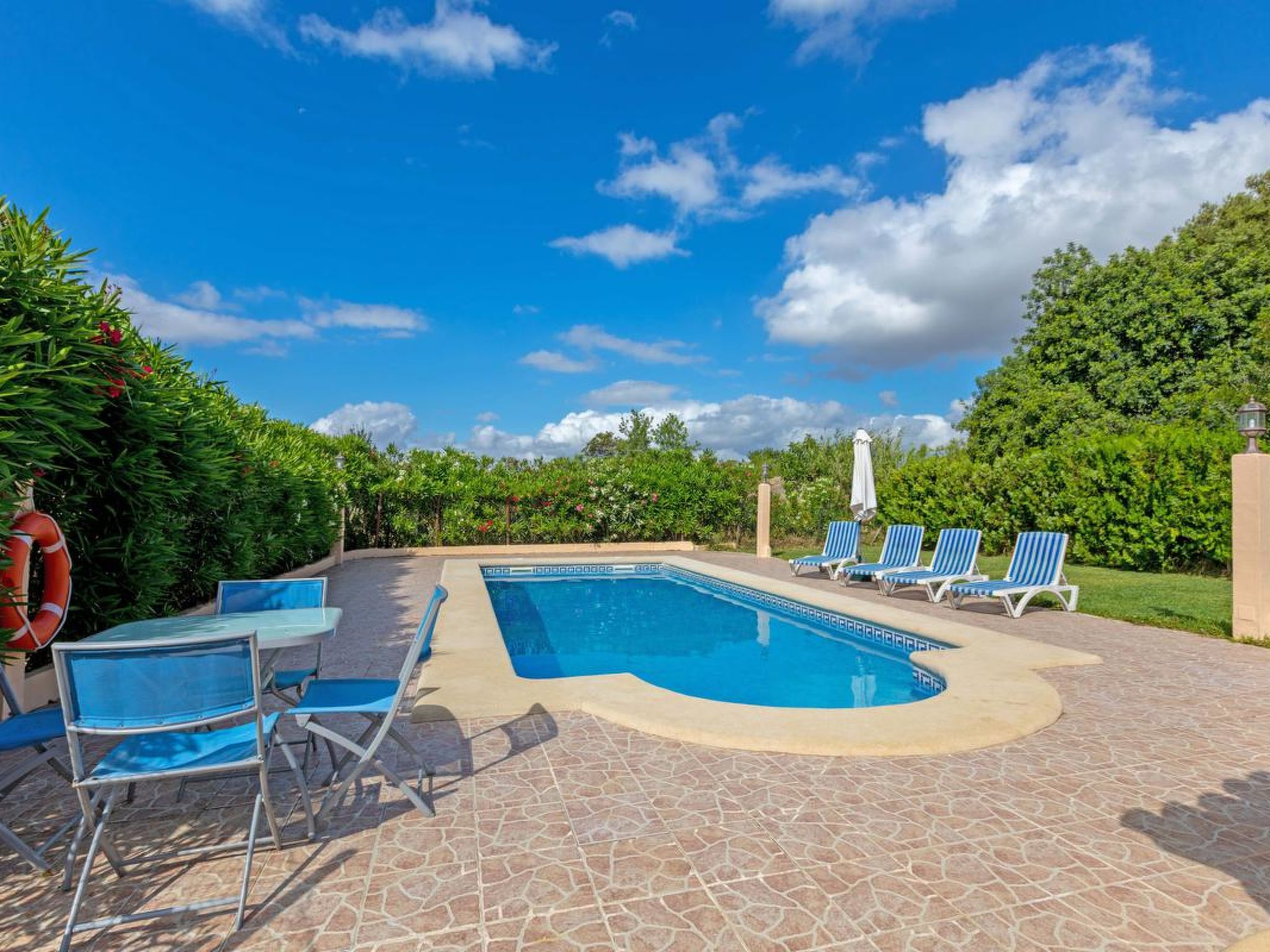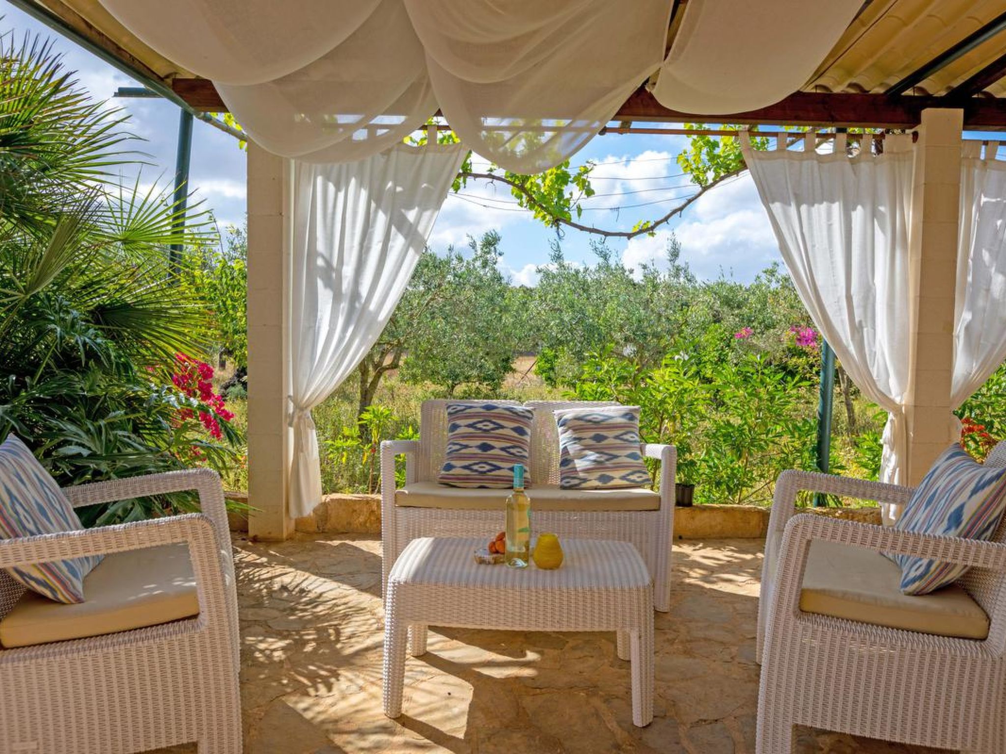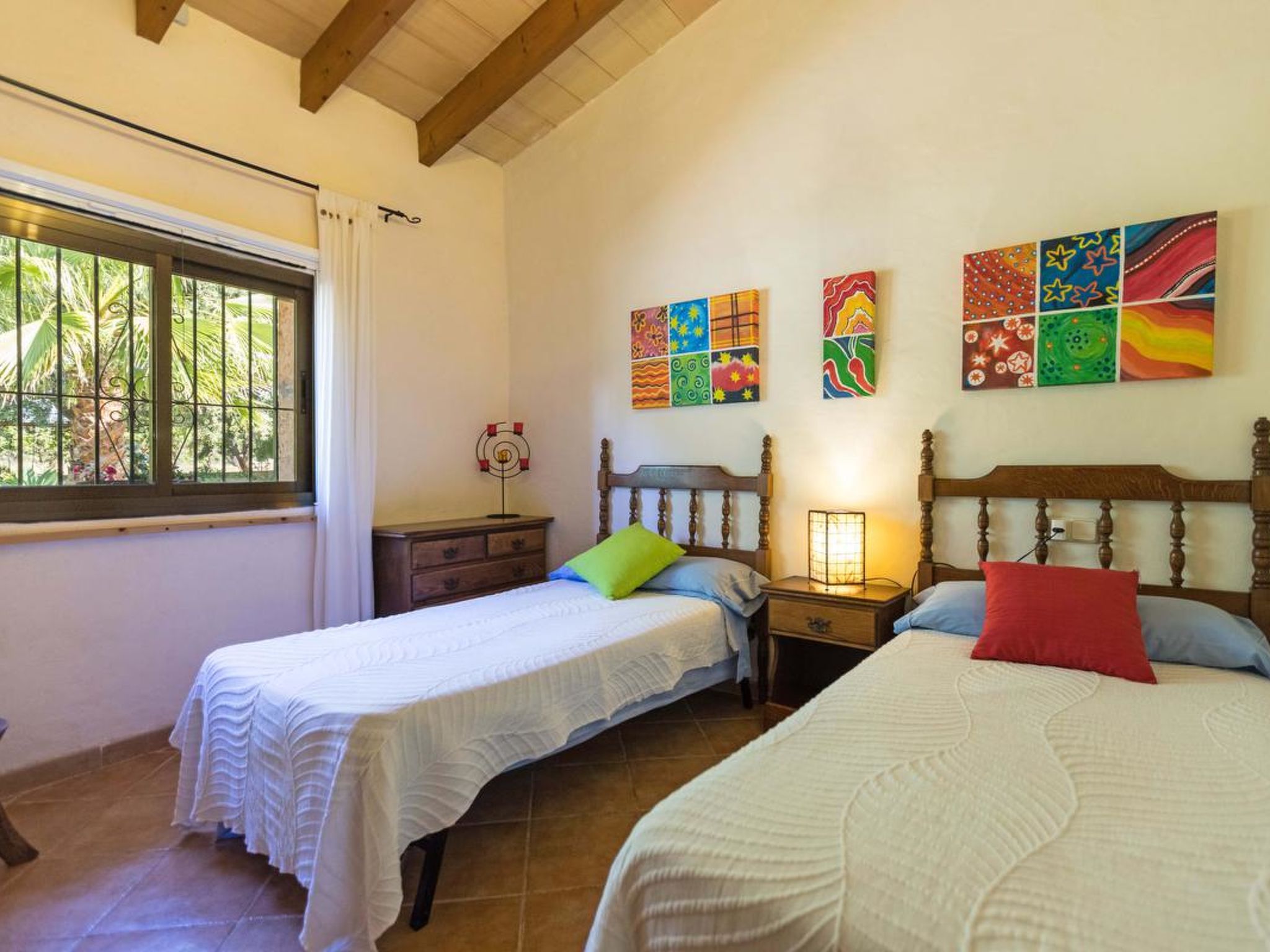 Gorgeous stone cottage set in garden with fruit trees, in the country near the friendly little village of Buger and 15 minutes from the lovely sandy beaches of Alcudia and Playa de Muro.Two double rooms, a lovely country kitchen with dining area, very cosy living room with fireplace and plenty of outdoor porches, terracing, gardens and land. All with gentle rustic touches of wood, terracotta floors, ceramic tiles, and best of all the beautiful bare stone walls, built thick to keep the heat out and the warm in.This eco-friendly house offers fresh eggs and organic vegetables to guests. The saline pool is completely fenced and surrounded by cyprus trees, for privacy, protection and safety.Also with the little ones in mind, there are swings, a slide and a climbing frame in the shade of the old Holme oak tree.Don’t expect to see any neighbours – the nearest farms are several fields away. The cottage is on the edge of a large wooded area, so you will enjoy birdsong, including nightingales in spring and summer.The village of Buger has a supermarket, banks and cafes, plus the bakery that makes the best ensaimadas (typical pastries) in Mallorca! (True – people drive up from Palma to get them)This harmonious little house invites you and your family to enjoy a relaxing holiday in the country within easy driving distance from the sea. The only problem is – you won’t want to go home!