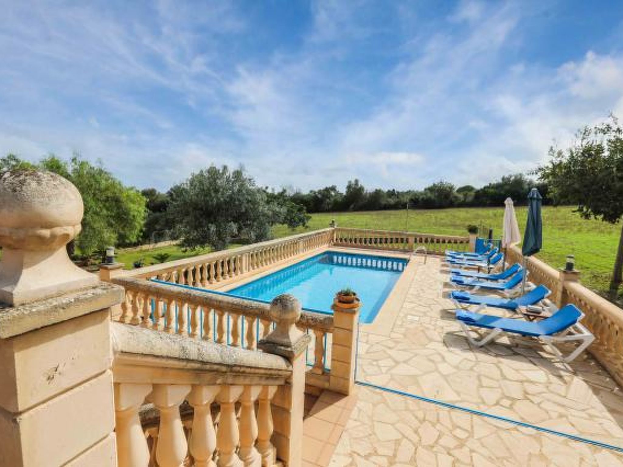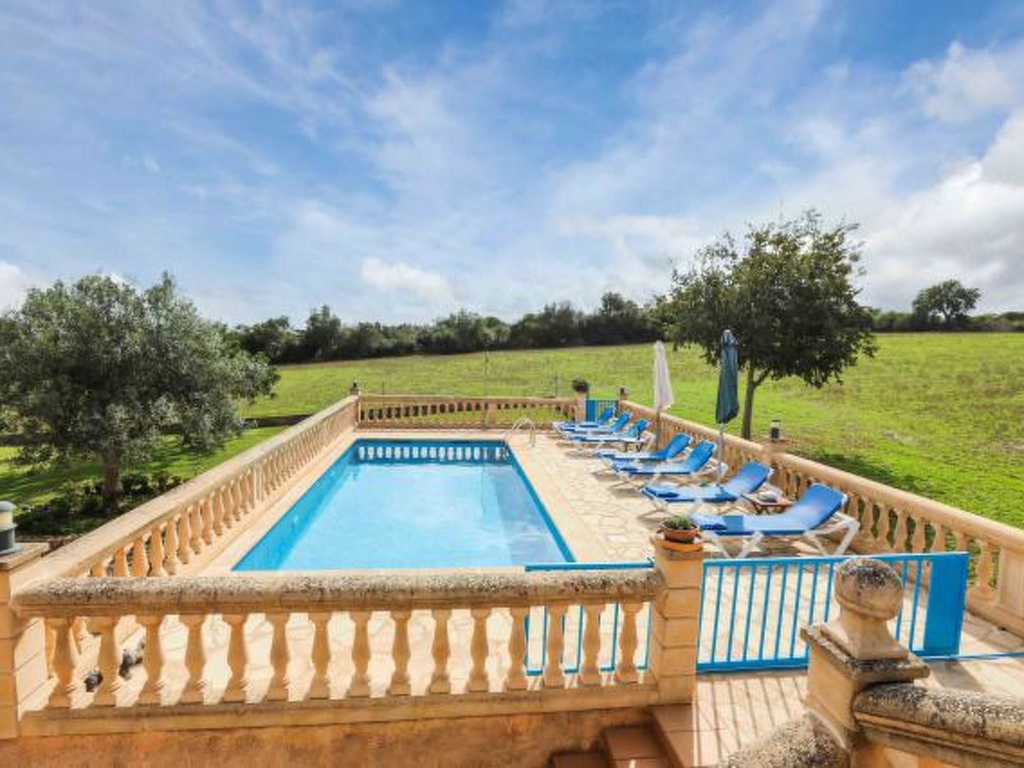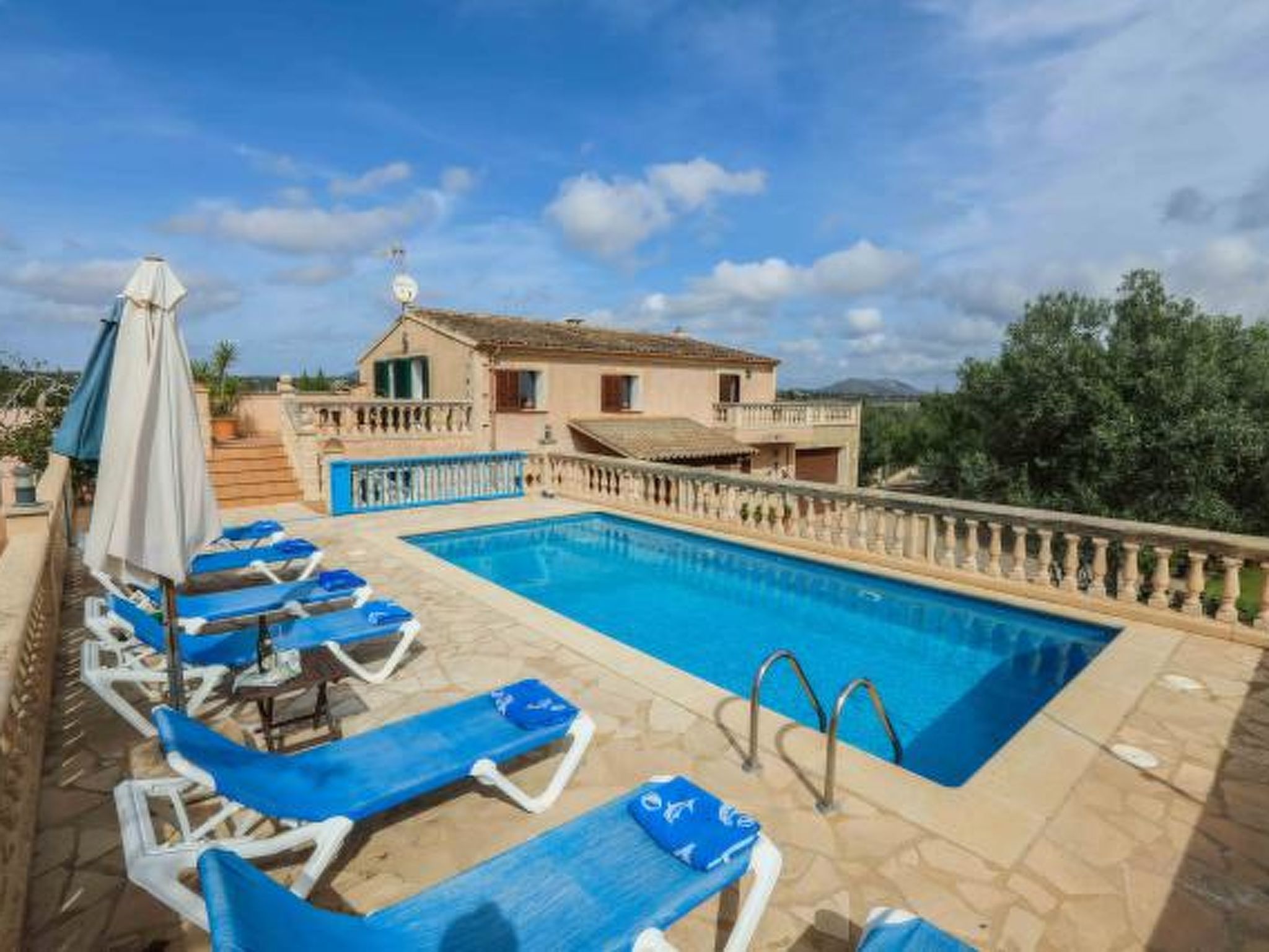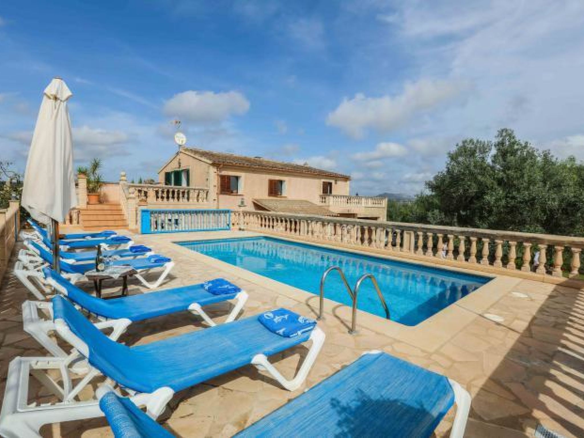 Dieses komfortable Haus ist ländlich gelegen und bietet 7 Personen ausreichend Platz für einen erholsamen Urlaub. Im Aussenbereich gibt es auf den Rasenflächen ausreichend Platz zum Spielen und Toben. Der Poolbereich liegt mit seinen zwei angrenzenden Terrassen erhöht und ist natürlich mit Sonnenliegen und Gartenmöblen ausgestattet. Ausserdem ist er umzäunt, was für Familien mit Kindern eine extra Sicherheit bedeutet (lassen Sie Ihre Kinder aber bitte trotzdem nie alleine im Aussenbereich!) Weiterhin steht ein Grill bereit, dass gemütlichen Barbequeabenden nichts im Wege steht. Das Haus verfügt im Erdgeschoss über ein kleines Esszimmer, einen weiteren Raum, der ebenfalls mit einem grossen Esstisch ausgestattet ist, eine voll ausgestattete Küche, ein Einzelschlafzimmer und ein Badezimmer. Im oberen Geschoss befinden sich ein gemütliches Wohnzimmer, drei Doppelschafzimmer mit jeweiligem Zugang zu den Terrassen und ein Duschbad. Ein tolles Haus für einen unbeschwerten Urlaub!
