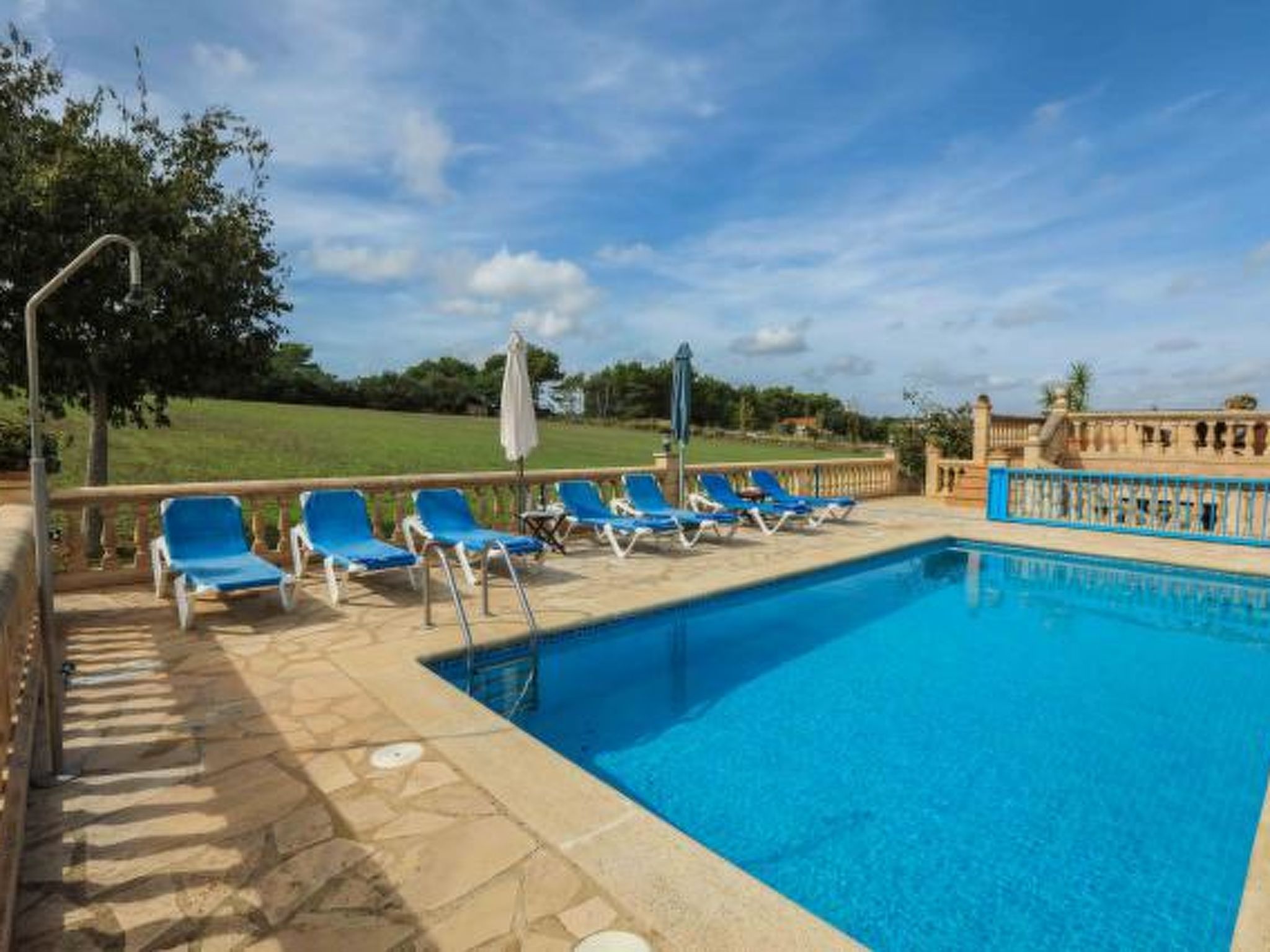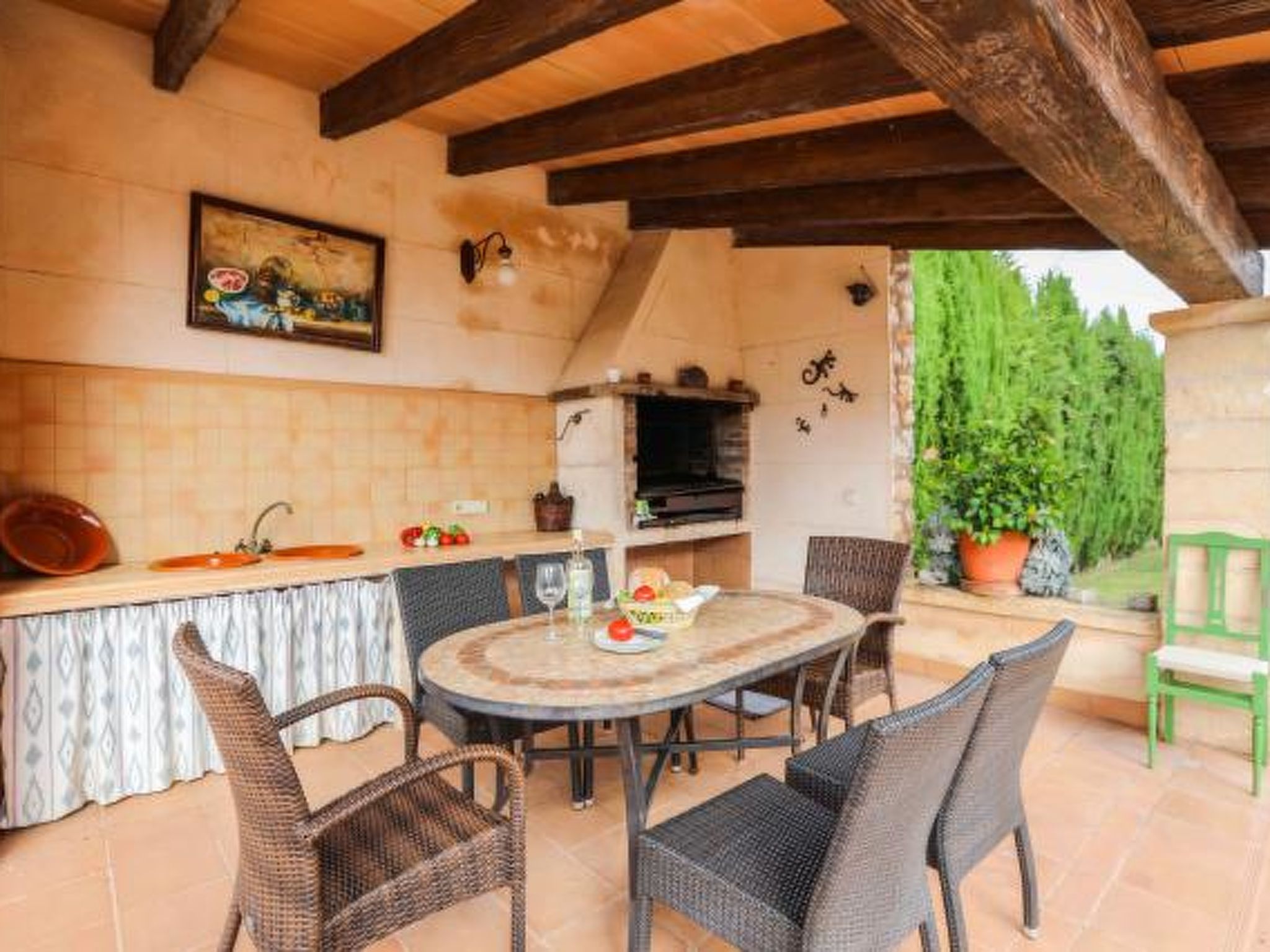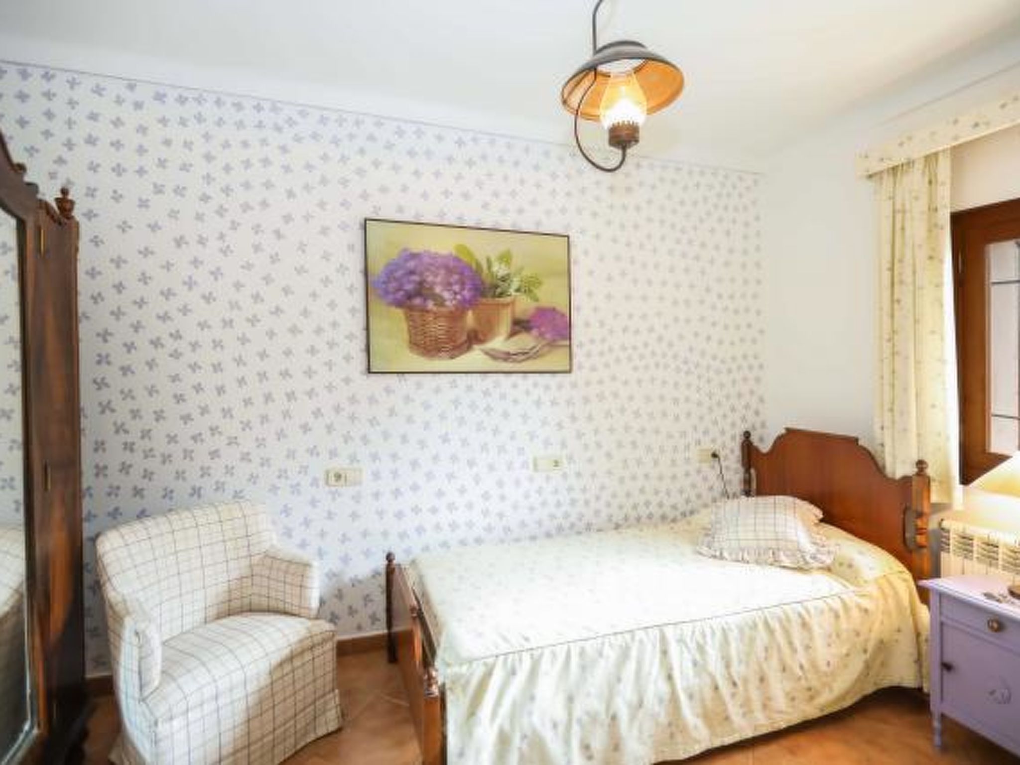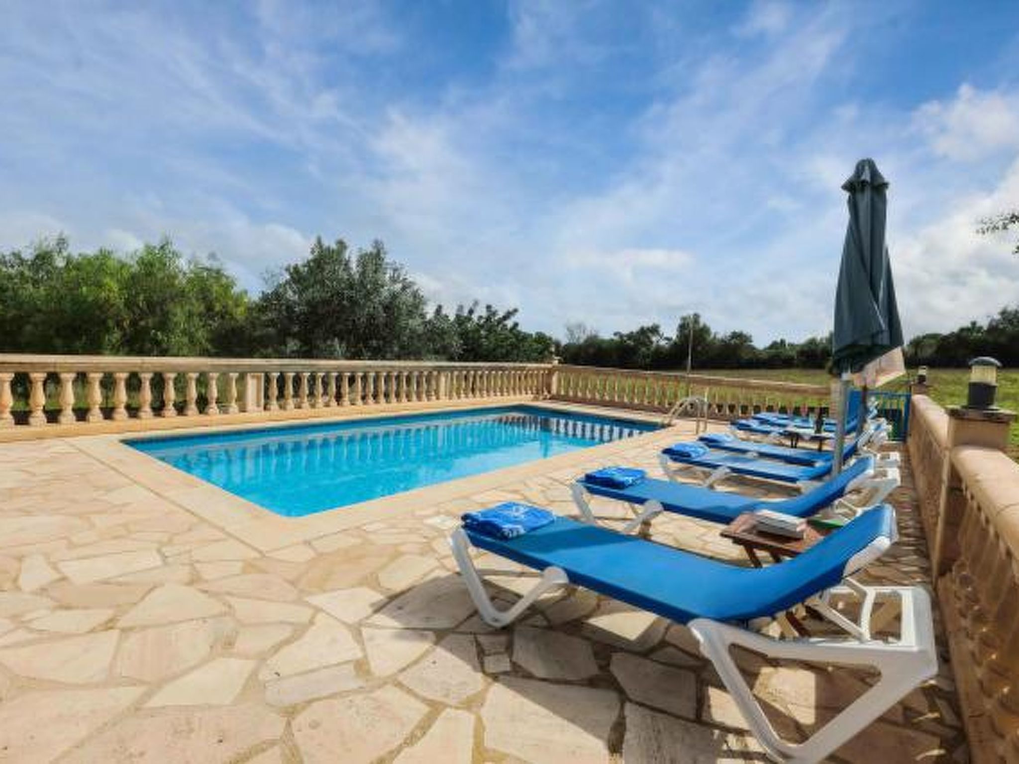 Dieses komfortable Haus ist ländlich gelegen und bietet 7 Personen ausreichend Platz für einen erholsamen Urlaub. Im Aussenbereich gibt es auf den Rasenflächen ausreichend Platz zum Spielen und Toben. Der Poolbereich liegt mit seinen zwei angrenzenden Terrassen erhöht und ist natürlich mit Sonnenliegen und Gartenmöblen ausgestattet. Ausserdem ist er umzäunt, was für Familien mit Kindern eine extra Sicherheit bedeutet (lassen Sie Ihre Kinder aber bitte trotzdem nie alleine im Aussenbereich!) Weiterhin steht ein Grill bereit, dass gemütlichen Barbequeabenden nichts im Wege steht. Das Haus verfügt im Erdgeschoss über ein kleines Esszimmer, einen weiteren Raum, der ebenfalls mit einem grossen Esstisch ausgestattet ist, eine voll ausgestattete Küche, ein Einzelschlafzimmer und ein Badezimmer. Im oberen Geschoss befinden sich ein gemütliches Wohnzimmer, drei Doppelschafzimmer mit jeweiligem Zugang zu den Terrassen und ein Duschbad. Ein tolles Haus für einen unbeschwerten Urlaub!