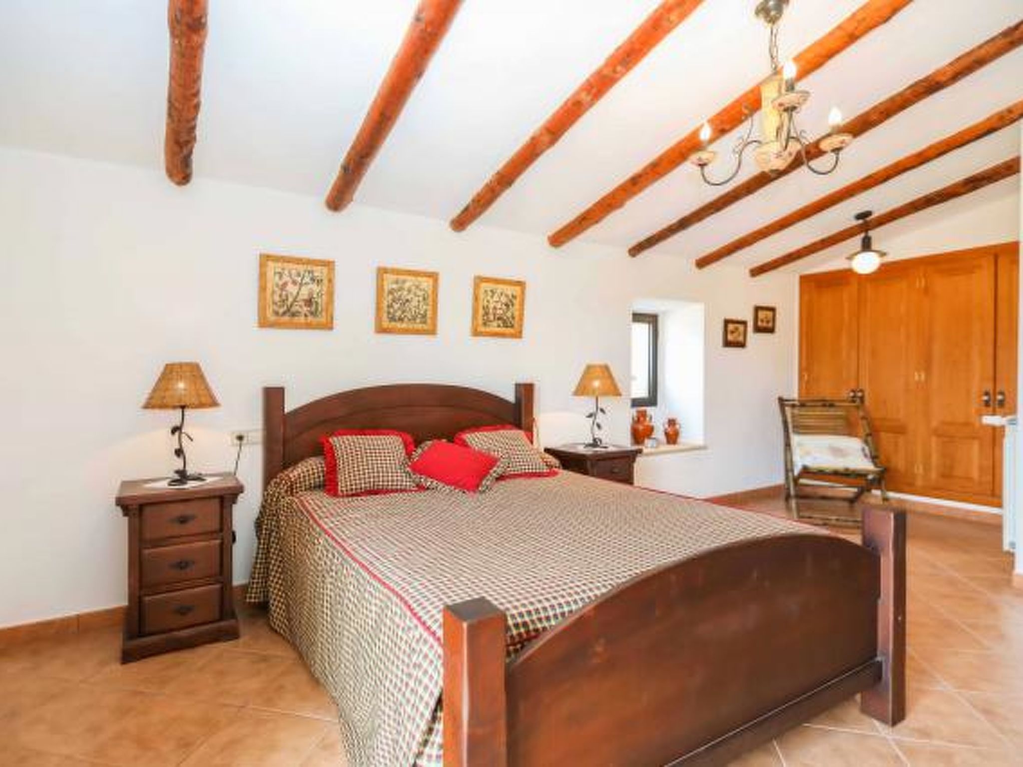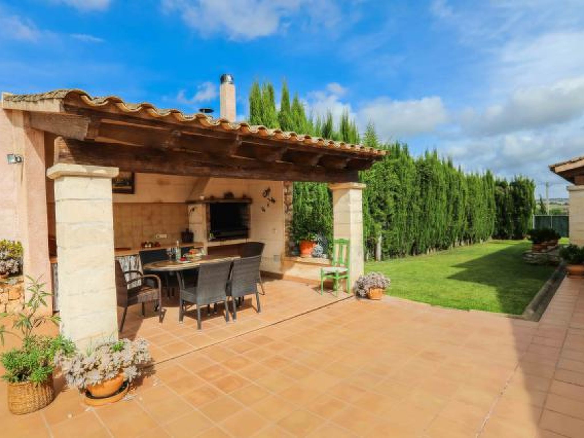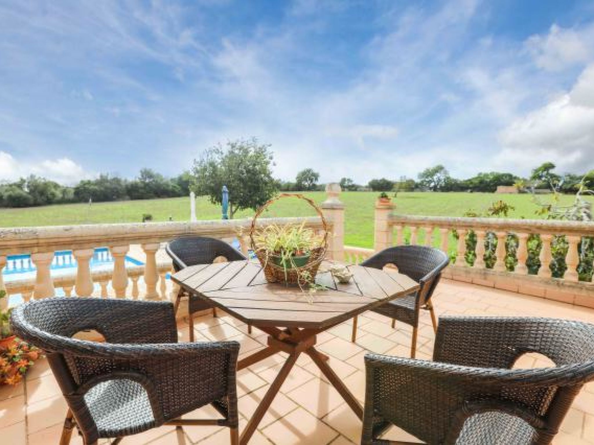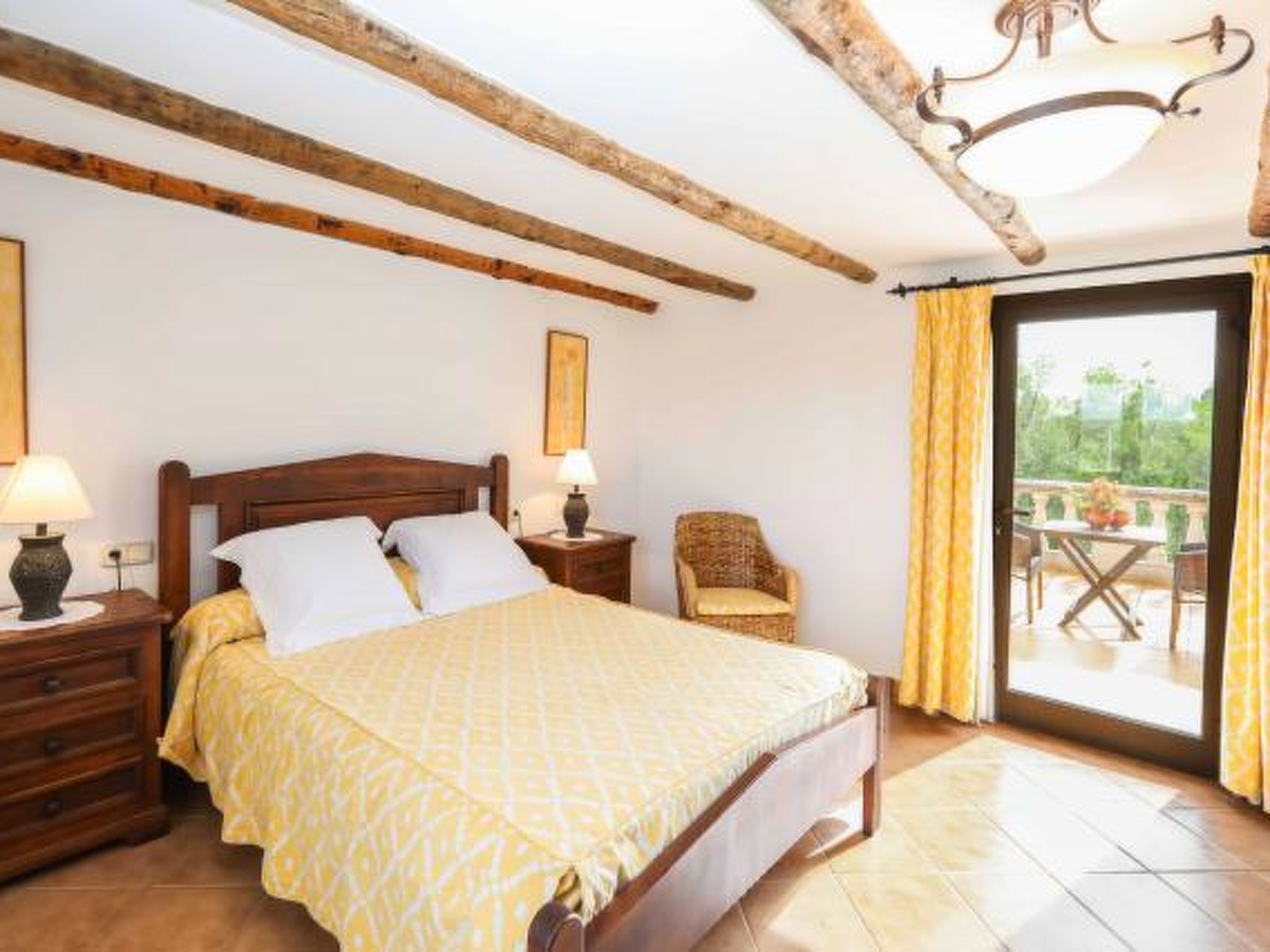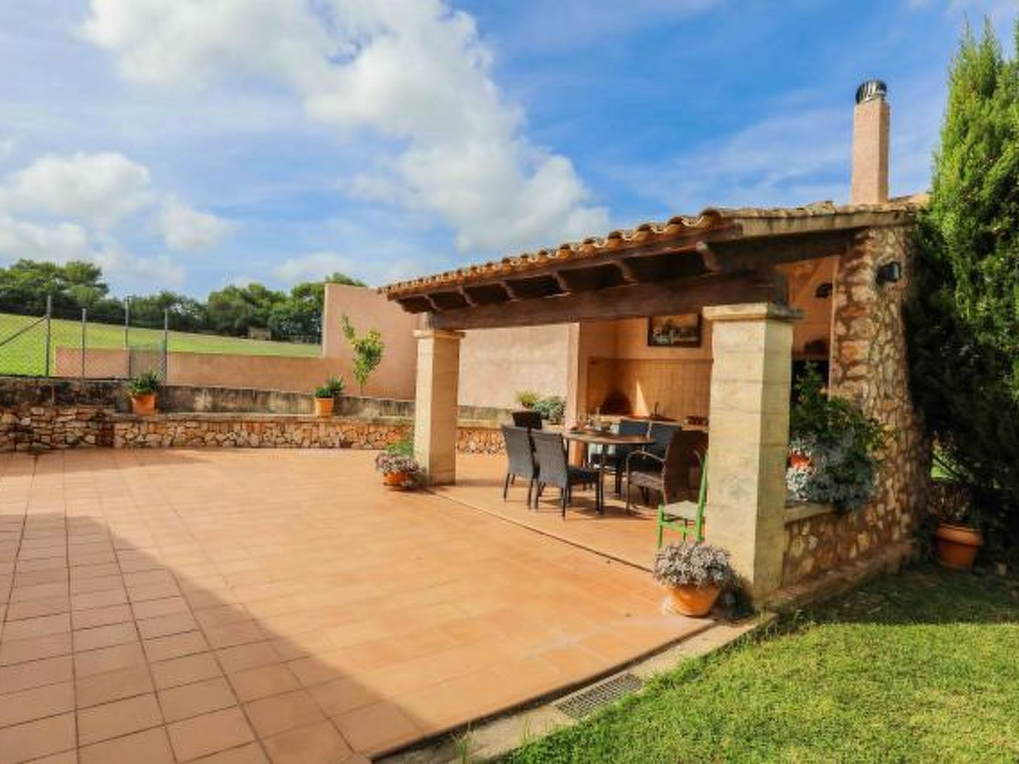 Dieses komfortable Haus ist ländlich gelegen und bietet 7 Personen ausreichend Platz für einen erholsamen Urlaub. Im Aussenbereich gibt es auf den Rasenflächen ausreichend Platz zum Spielen und Toben. Der Poolbereich liegt mit seinen zwei angrenzenden Terrassen erhöht und ist natürlich mit Sonnenliegen und Gartenmöblen ausgestattet. Ausserdem ist er umzäunt, was für Familien mit Kindern eine extra Sicherheit bedeutet (lassen Sie Ihre Kinder aber bitte trotzdem nie alleine im Aussenbereich!) Weiterhin steht ein Grill bereit, dass gemütlichen Barbequeabenden nichts im Wege steht. Das Haus verfügt im Erdgeschoss über ein kleines Esszimmer, einen weiteren Raum, der ebenfalls mit einem grossen Esstisch ausgestattet ist, eine voll ausgestattete Küche, ein Einzelschlafzimmer und ein Badezimmer. Im oberen Geschoss befinden sich ein gemütliches Wohnzimmer, drei Doppelschafzimmer mit jeweiligem Zugang zu den Terrassen und ein Duschbad. Ein tolles Haus für einen unbeschwerten Urlaub!