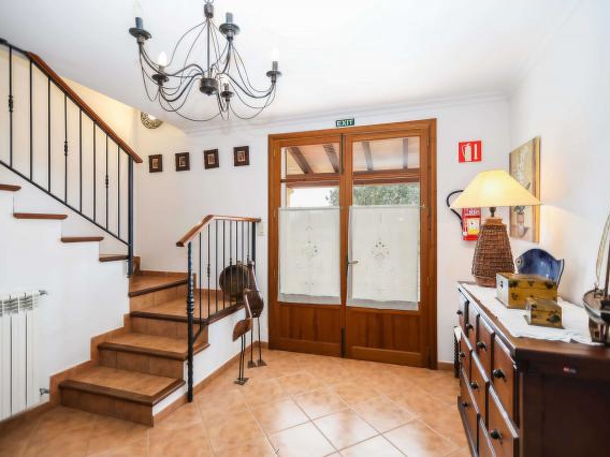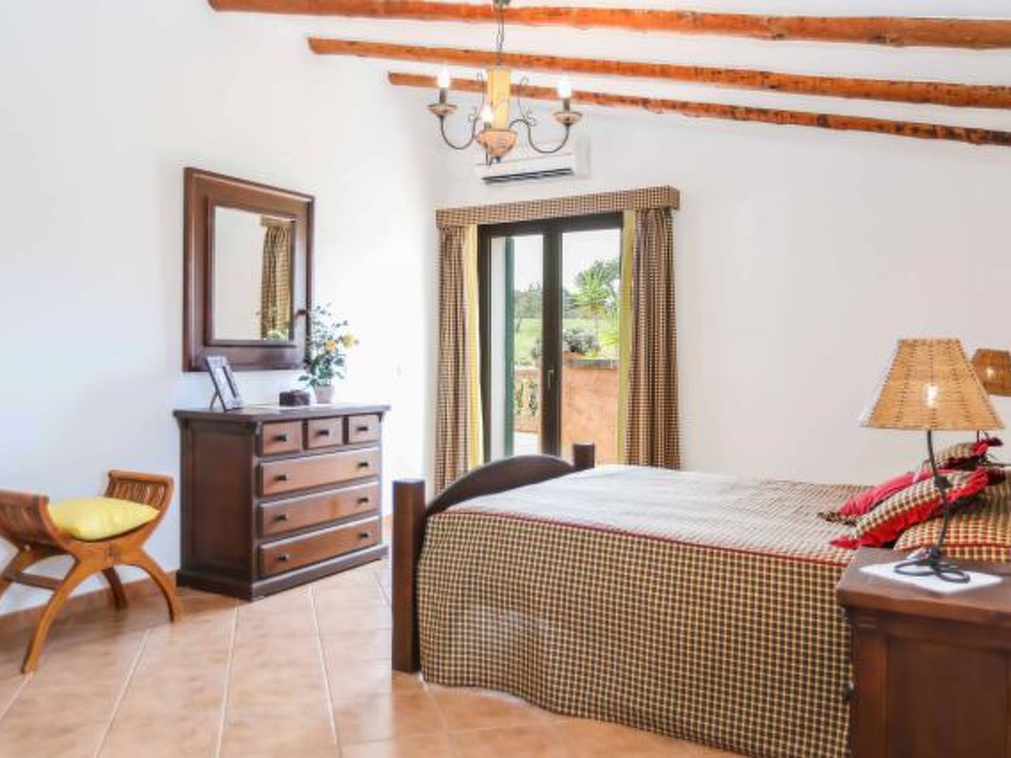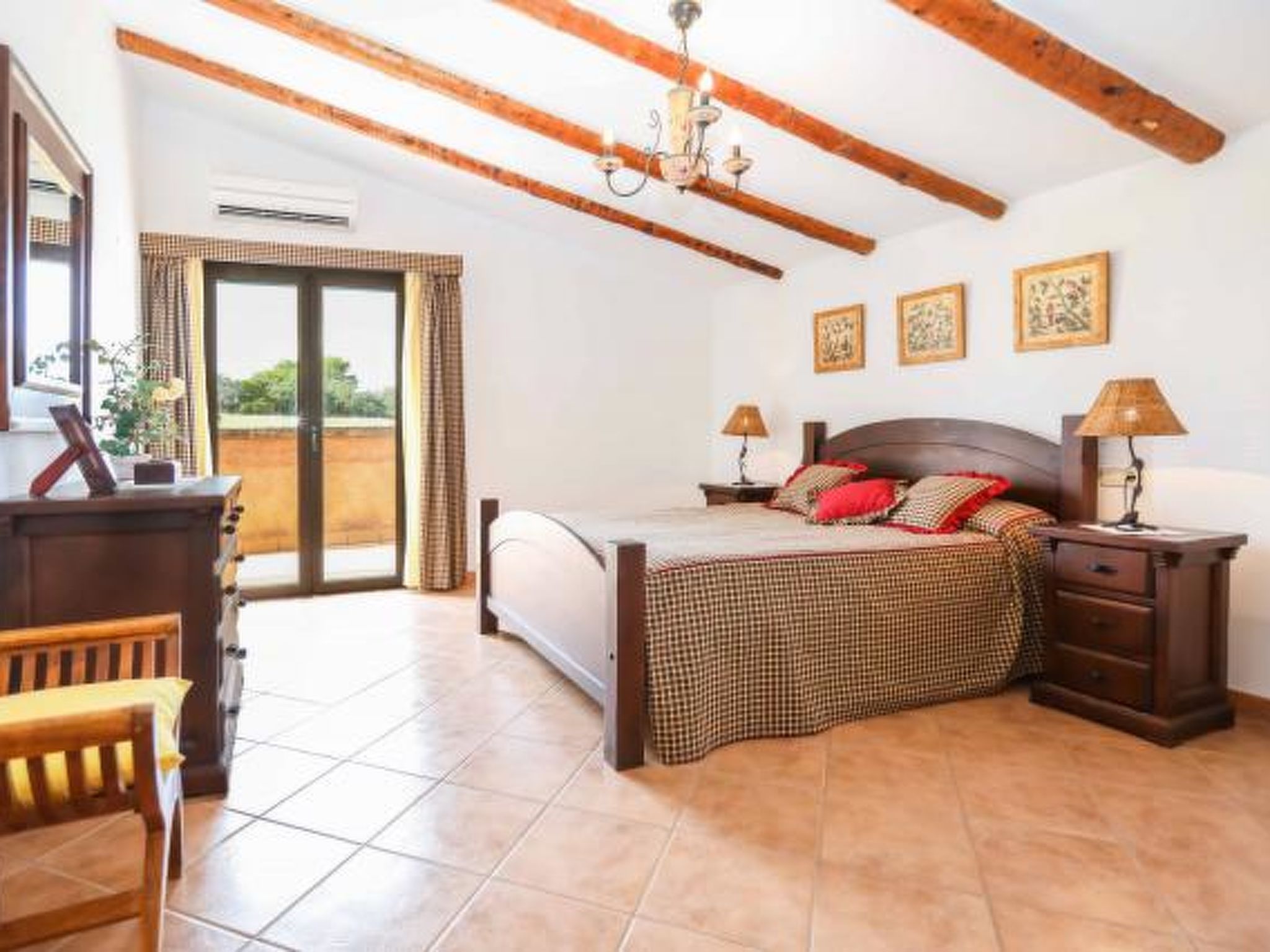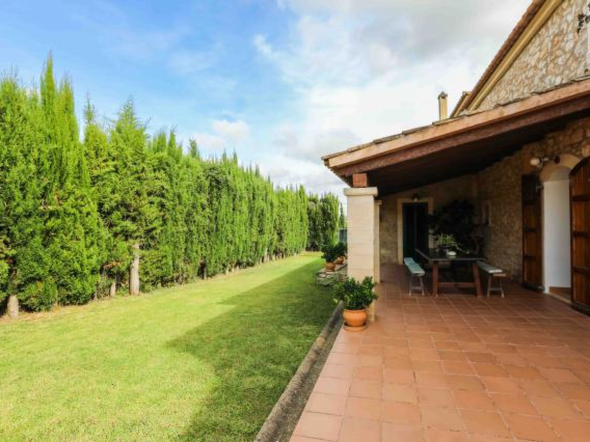 Dieses komfortable Haus ist ländlich gelegen und bietet 7 Personen ausreichend Platz für einen erholsamen Urlaub. Im Aussenbereich gibt es auf den Rasenflächen ausreichend Platz zum Spielen und Toben. Der Poolbereich liegt mit seinen zwei angrenzenden Terrassen erhöht und ist natürlich mit Sonnenliegen und Gartenmöblen ausgestattet. Ausserdem ist er umzäunt, was für Familien mit Kindern eine extra Sicherheit bedeutet (lassen Sie Ihre Kinder aber bitte trotzdem nie alleine im Aussenbereich!) Weiterhin steht ein Grill bereit, dass gemütlichen Barbequeabenden nichts im Wege steht. Das Haus verfügt im Erdgeschoss über ein kleines Esszimmer, einen weiteren Raum, der ebenfalls mit einem grossen Esstisch ausgestattet ist, eine voll ausgestattete Küche, ein Einzelschlafzimmer und ein Badezimmer. Im oberen Geschoss befinden sich ein gemütliches Wohnzimmer, drei Doppelschafzimmer mit jeweiligem Zugang zu den Terrassen und ein Duschbad. Ein tolles Haus für einen unbeschwerten Urlaub!