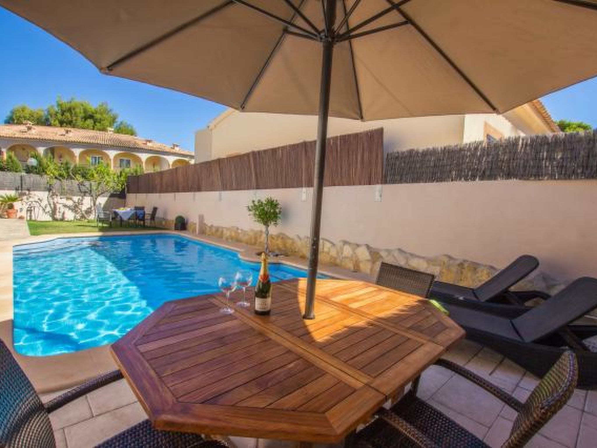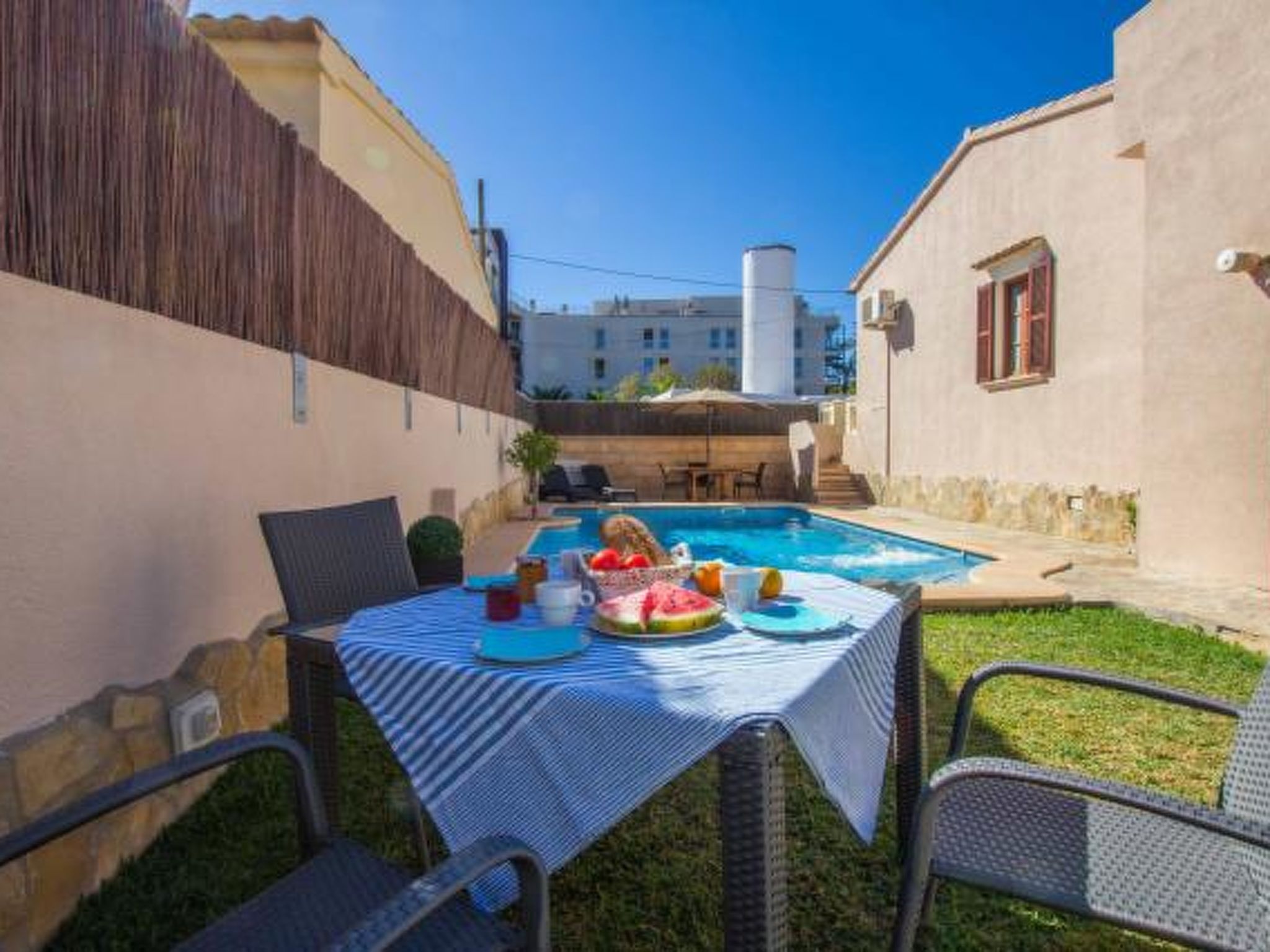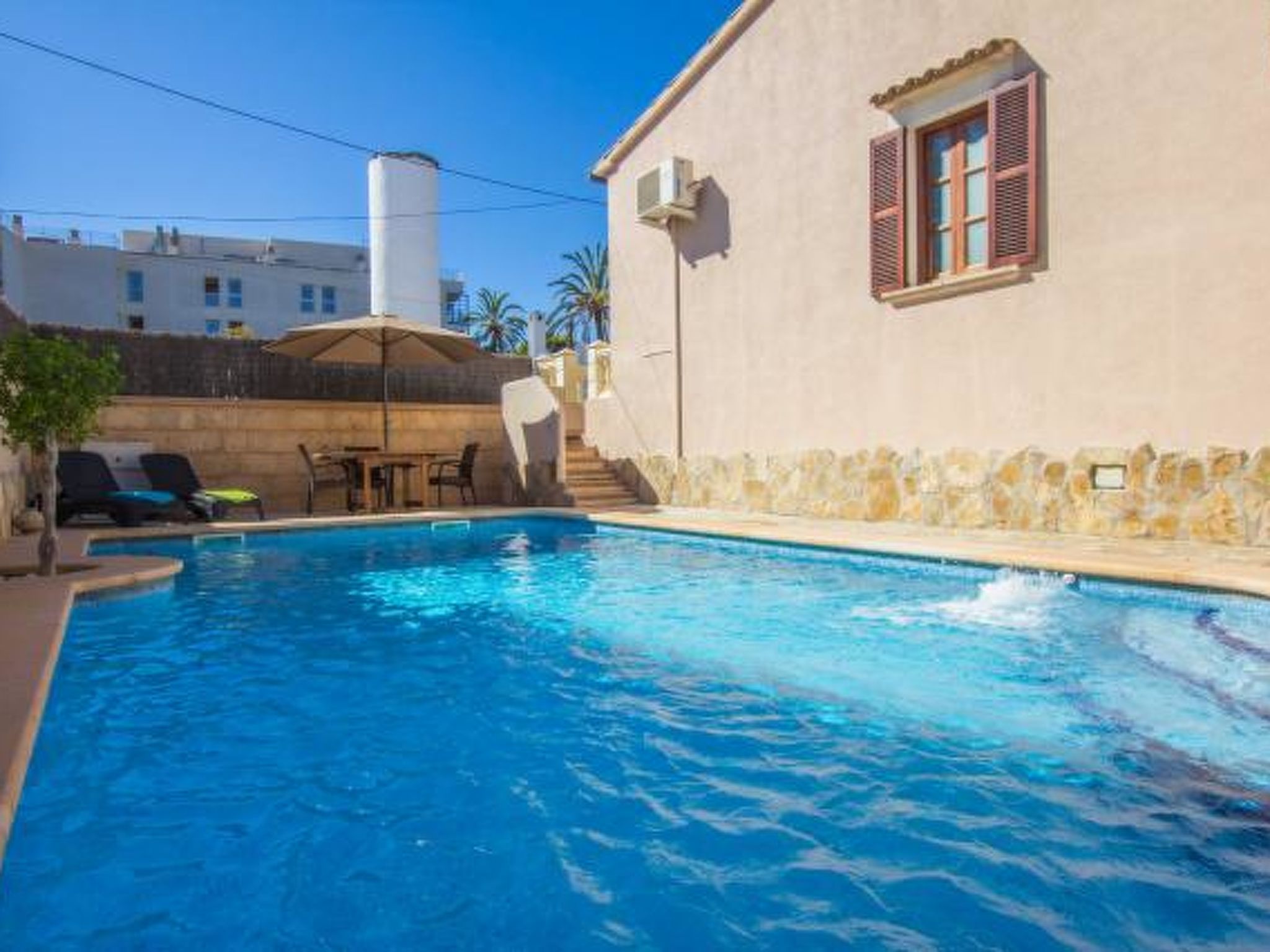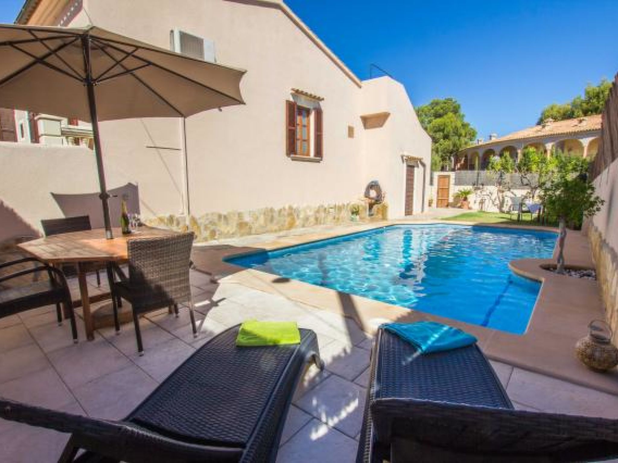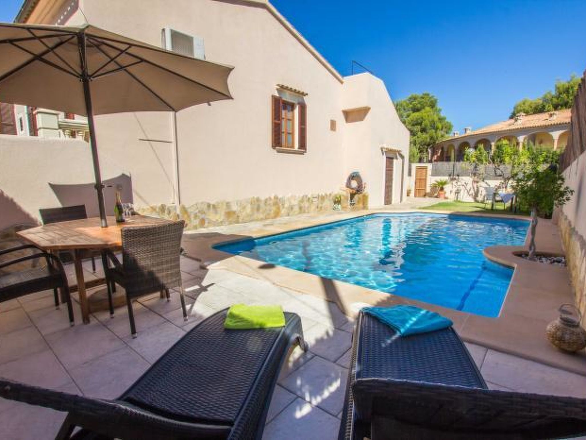 Sie lieben Mallorca, wollen aber nicht in Hotels? Dann kommen Sie in Ihr eigenes privates Ferienhaus in einer zentralen Wohngegend von Cala Ratjada und nur 120m vom Strand entfernt.Dieses einstöckige, 100m2 Haus verfügt über drei Schlafzimmer und ein Badezimmer. Es hat bequem Raum für sechs Personen und ist ideal für einen Familienurlaub. Es ist nur wenige Gehminuten vom schönen, sauberen, sicheren Sandstrand von Son Moll entfernt und in der Nähe sind eine Fülle von Geschäften, Restaurants und Unterhaltungsmöglichkeiten.Es gibt viel Platz im Freien für Familienspaß – privater Pool, mediterraner Garten mit Rasen, schöne Verandamöbel und einen Grill.Ein geräumiges, luftiges Wohnzimmer bietet einen kühlen, ruhigen Ort zum Entspannen. Voll ausgestattete moderne Küche.Nutzen Sie auch unsere günstigen Vor-und Nachsaison Preise!