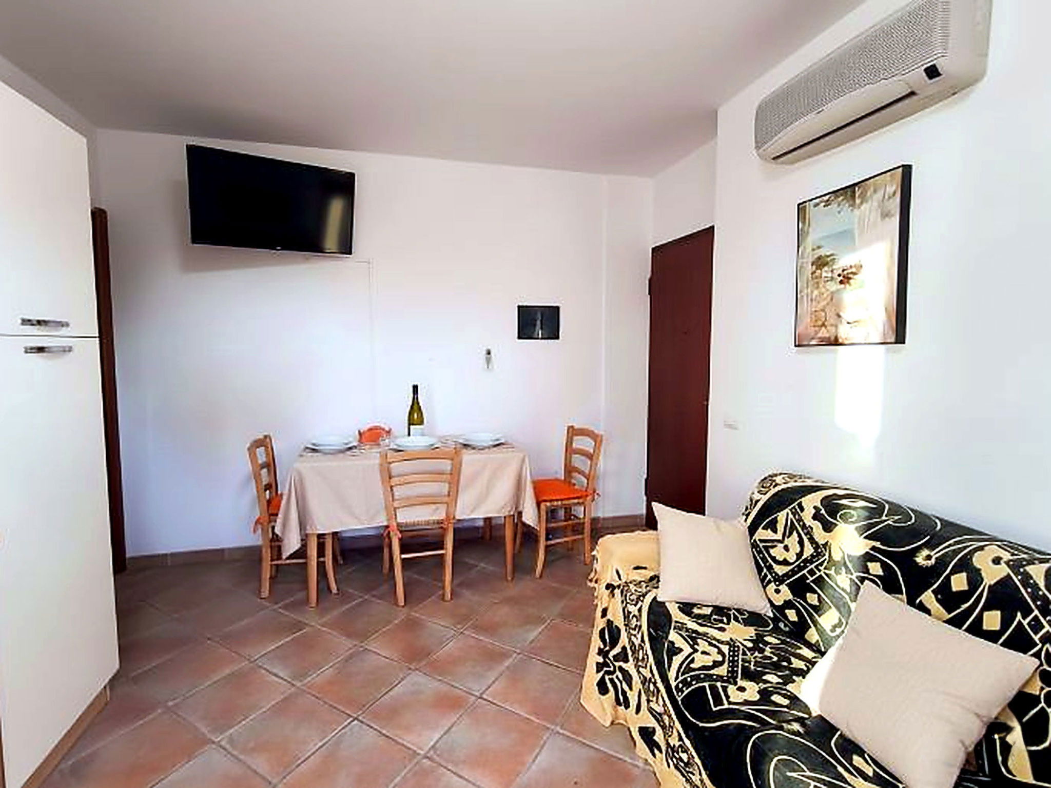 "Pellicano Azzurro", 2-room apartment 40 m2, on the ground floor. Simple and practical furnishings: living/dining room, window onto the courtyard with 1 sofabed, TV, flat screen and air conditioning. Exit to the balcony. 1 room with 1 double bed, TV and flat screen. Kitchenette (oven, 4 induction hot plates, toaster, kettle, electric coffee machine). Shower/bidet/WC. Air-conditioning, boiler. Small balcony. Balcony furniture. Facilities: washing machine, iron. Parking (1 car) at the house. Suitable for families. Maximum 1 small pet/ dog allowed. IT000000C0000T0000