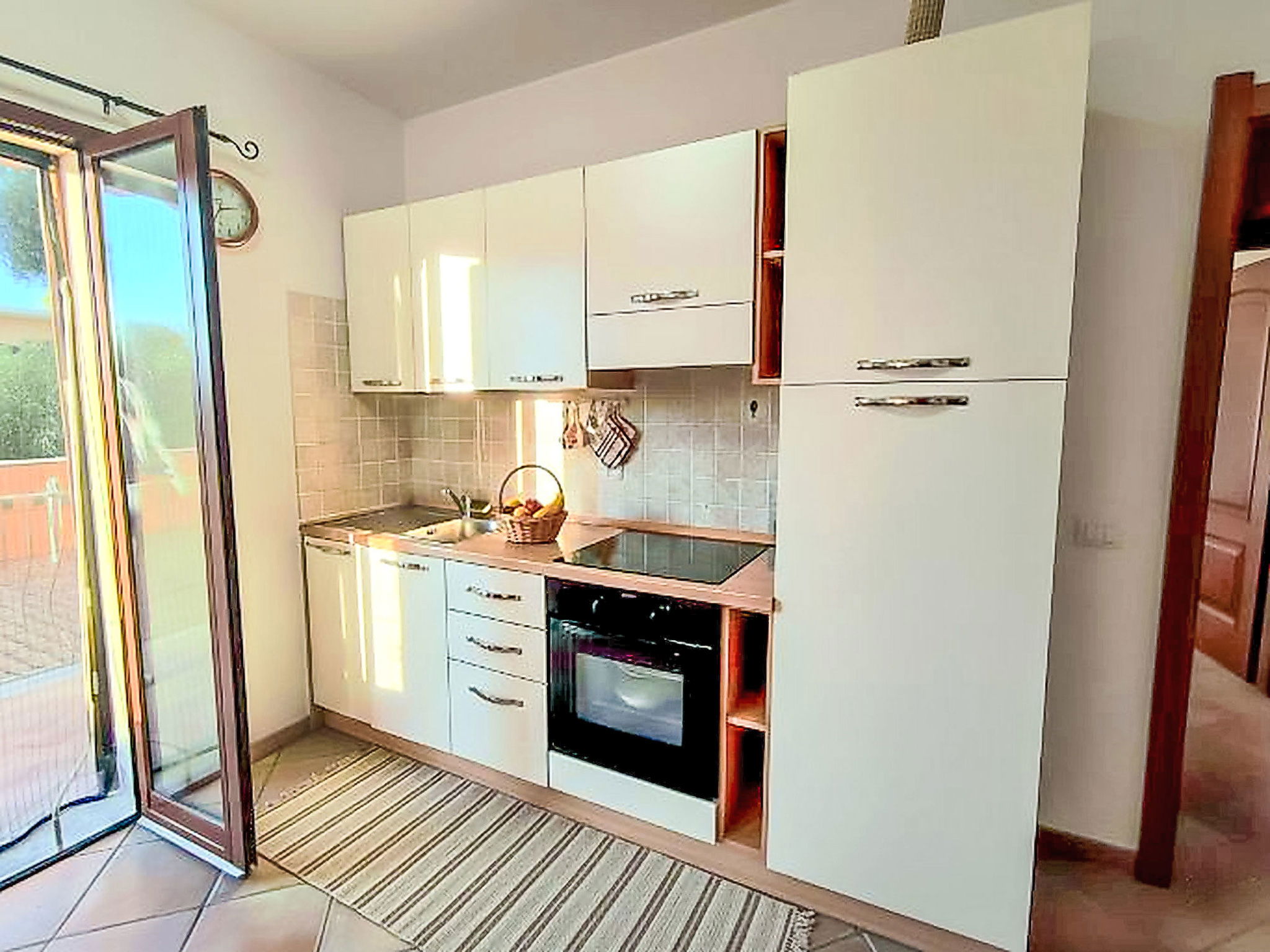 Beautiful, cosy residence terraced. In the district of La Muddizza 3 m from the centre of Valledoria, 1.5 km from the sea. For shared use: swimming pool (5 x 10 m, depth 110 - 170 cm, seasonal availability: 16.Jun. - 16.Sep. pool opening hours: 09:00-13:00 and 16:00-20:00). Motor access to 15 m from the house. Parking at the house. Supermarket 86 m, restaurant 700 m, bar 50 m, bus stop "La Muddizza" 180 m, sandy beach "LA Ciaccia" 1.5 km. Nearby attractions: Castelsardo 10 km, Aeroporto di Olbia 110 km, Aeroporto Alghero Fertilia 70 km, Isola Rossa 22 km, Stintino 70 km, Badesi 13 m. Please note: car recommended. Suitable for families, suitable for seniors.