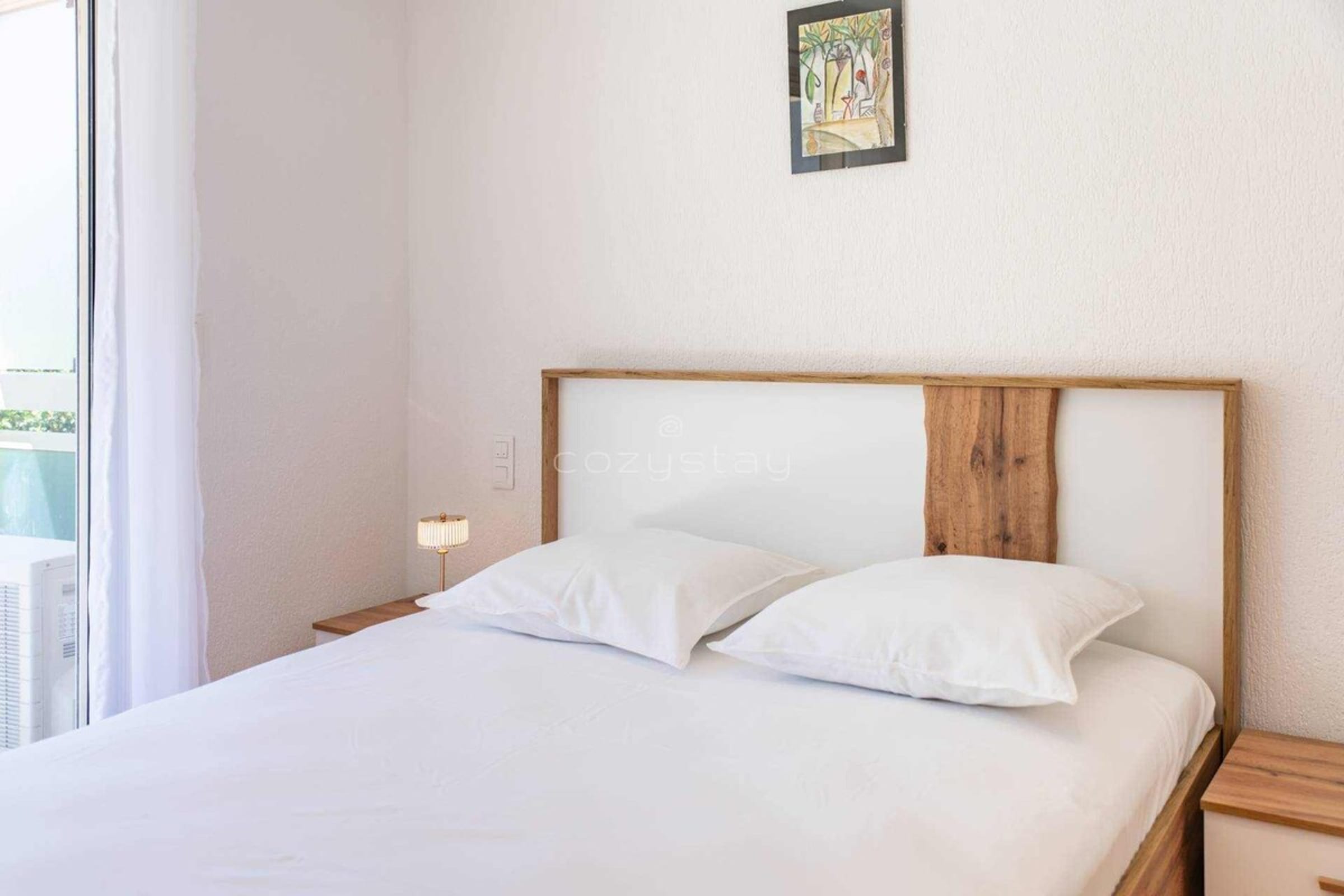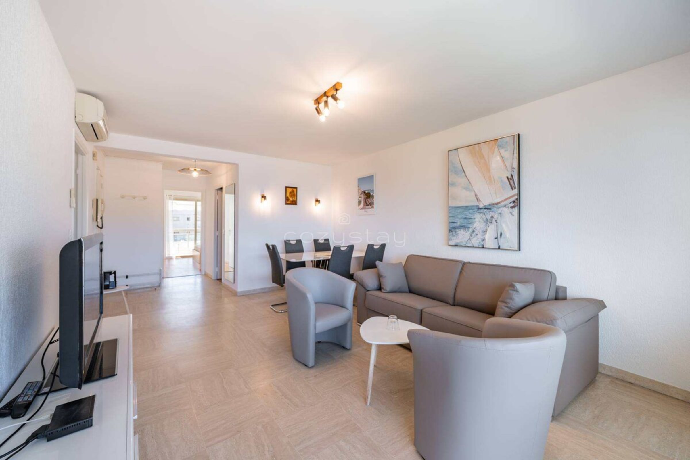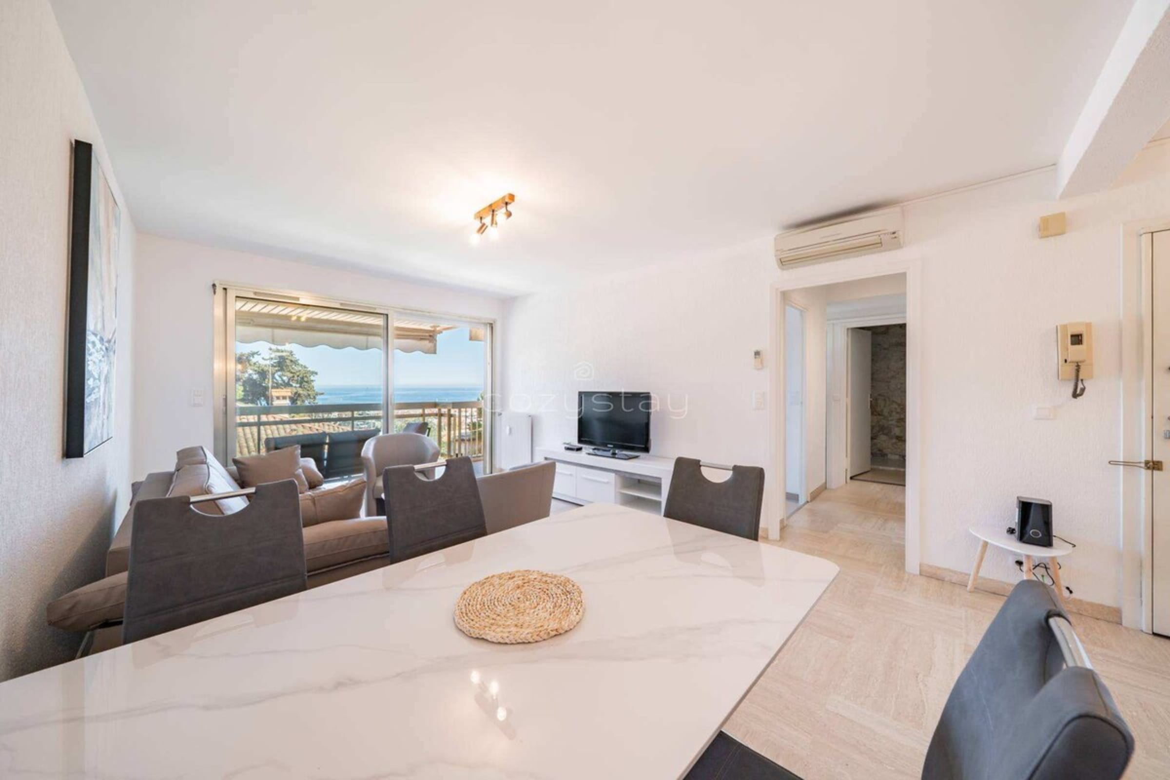 Parfaitement agencé, il comprend un salon confortable avec cuisine ouverte entièrement équipée, prolongé par un espace extérieur où profiter des petits-déjeuners face à la Méditerranée. L’appartement dispose de deux chambres et de deux salles d’eau modernes, garantissant confort et intimité à chacun. Entre élégance, calme et proximité des plages, c’est le pied-à-terre rêvé pour des vacances inoubliables sur la Côte d’Azur.