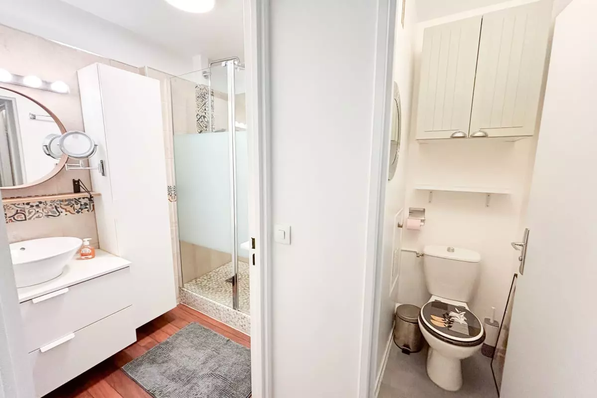 The accommodation is highly praised for its practicality. It's ideal for 3 travelers, with the option to accommodate 4 people thanks to the living room sofa and convertible armchair. With its contemporary interior and a continuous balcony, a true extension of the living space, you can enjoy a coffee or a drink in peace and quiet.