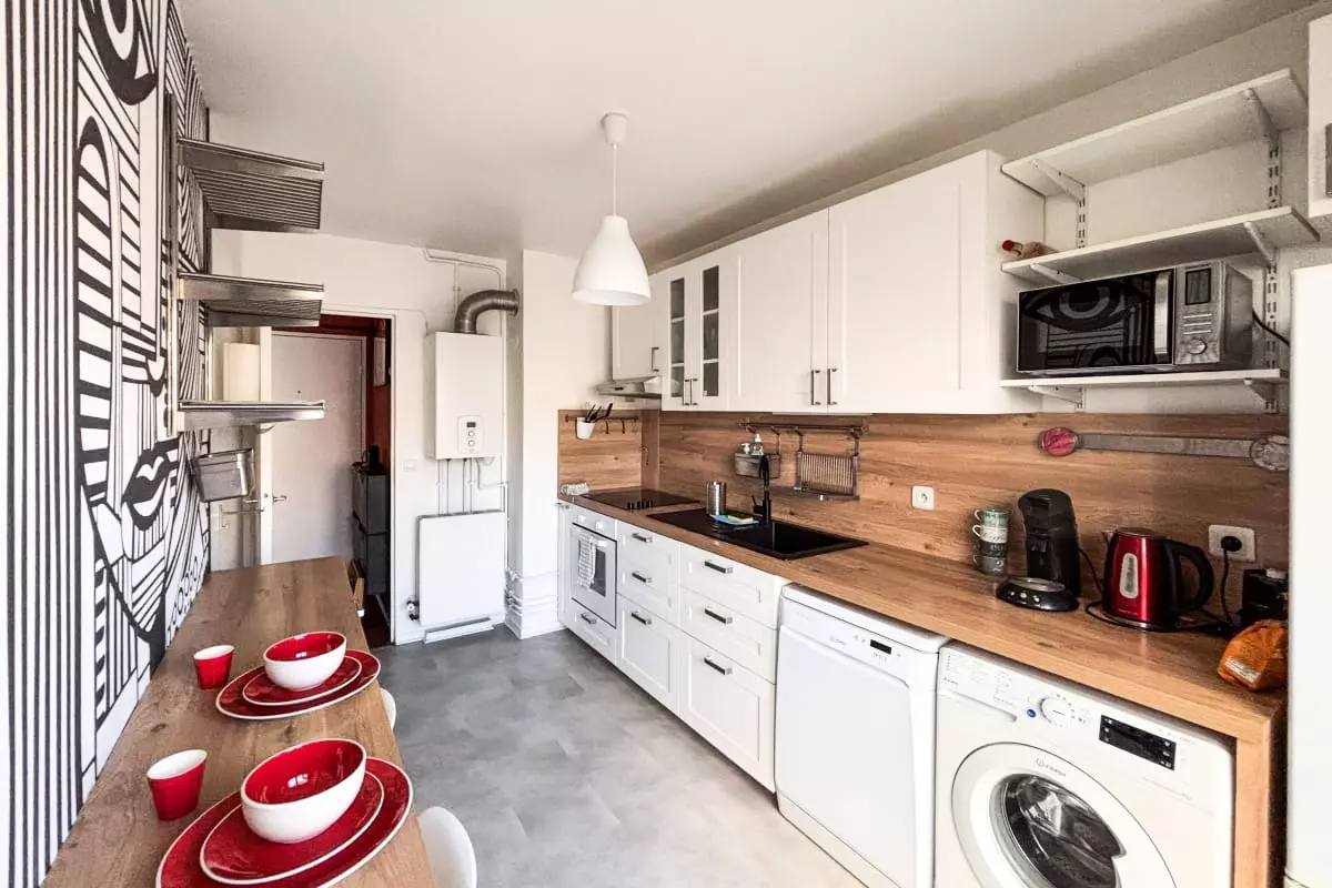 This lovely 55 m² apartment in Ivry-sur-Seine can accommodate up to 4 people. It includes a bedroom with a 160x200 cm double bed, a fully equipped kitchen, a bathroom, and a separate toilet. The comfortable living area is perfect for relaxing after a busy day and features a 70x185 cm sofa bed (single size), ideal for a child or teenager, as well as a 90x195 cm daybed that can accommodate an additional person.