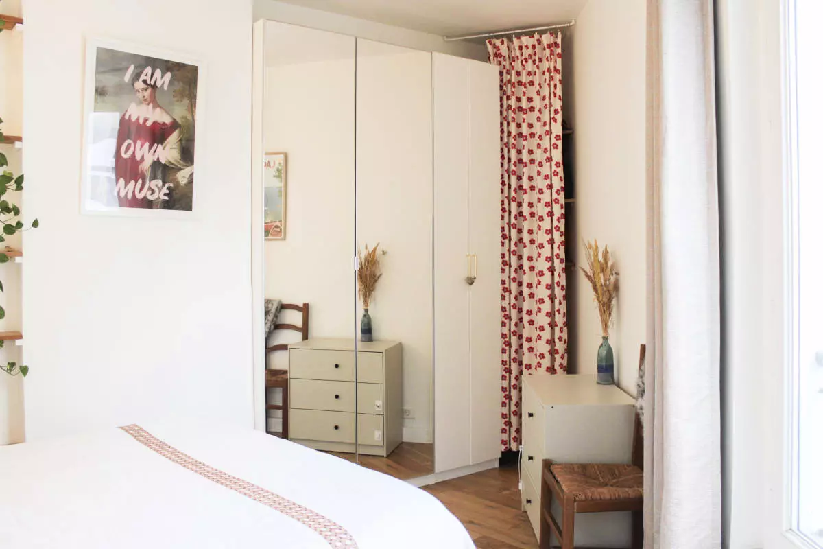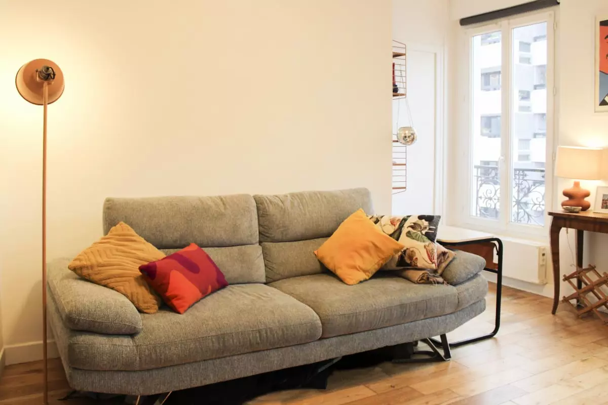 This beautiful apartment in Paris is ideal for a functional and relaxing stay. With a surface area of 35 m², it can accommodate up to 3 people. It features a comfortable bedroom with a double bed (140x190 cm), a fully equipped kitchen for preparing meals, and a pleasant living room with a sofa bed (90x200 cm) for relaxing after a day of sightseeing.