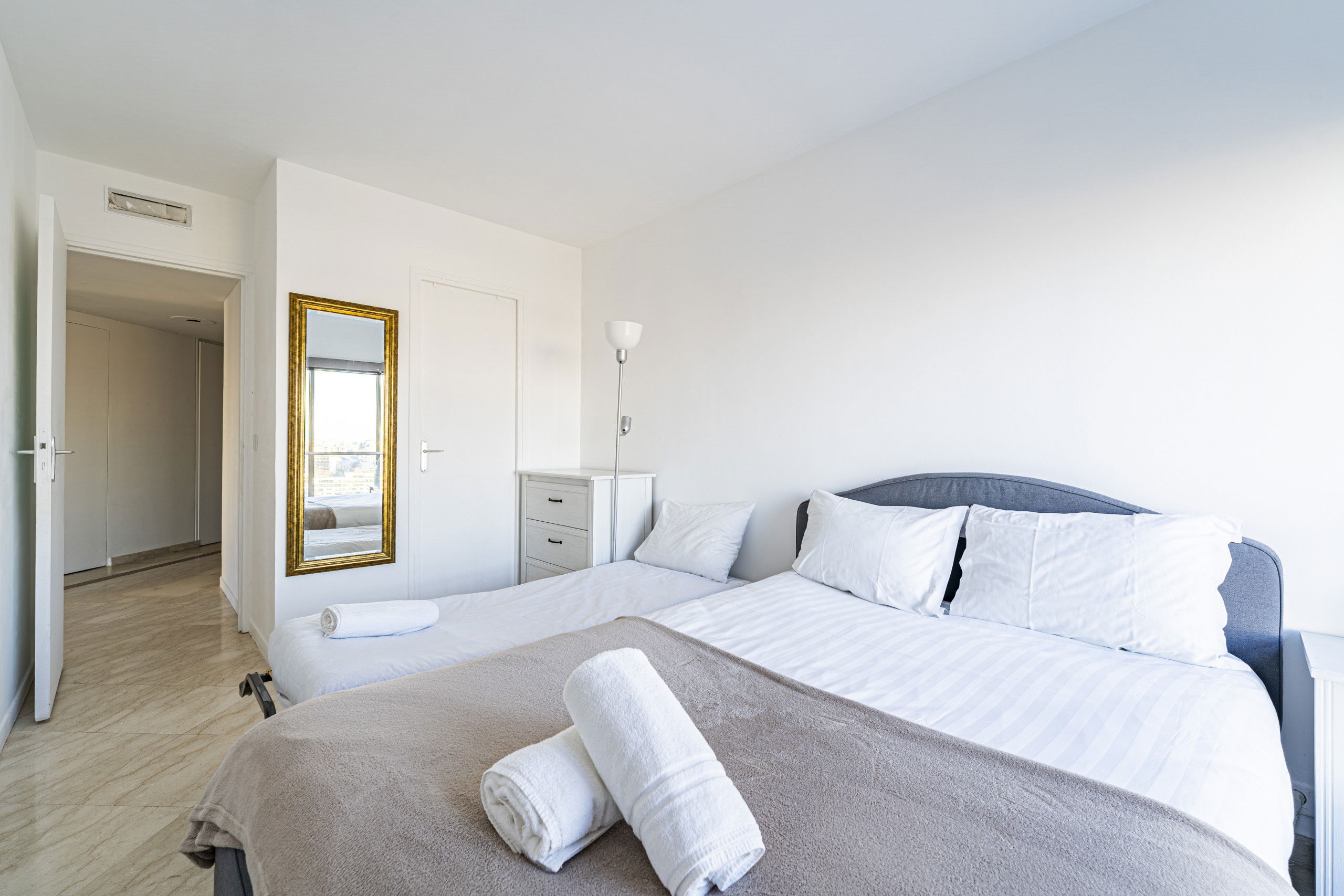 The apartment in Paris has 2 bedrooms and capacity for 6 people.
