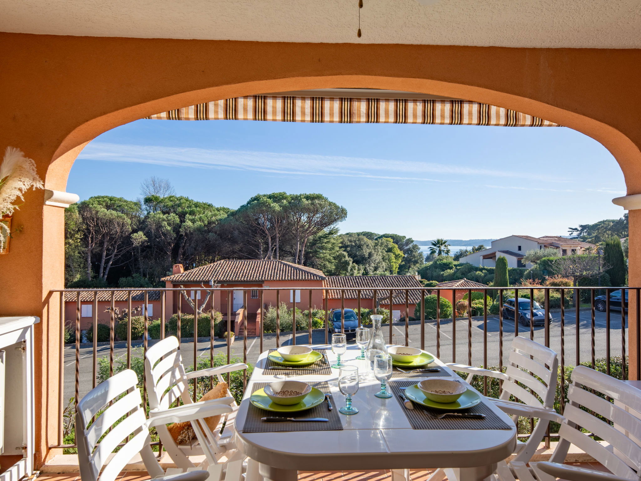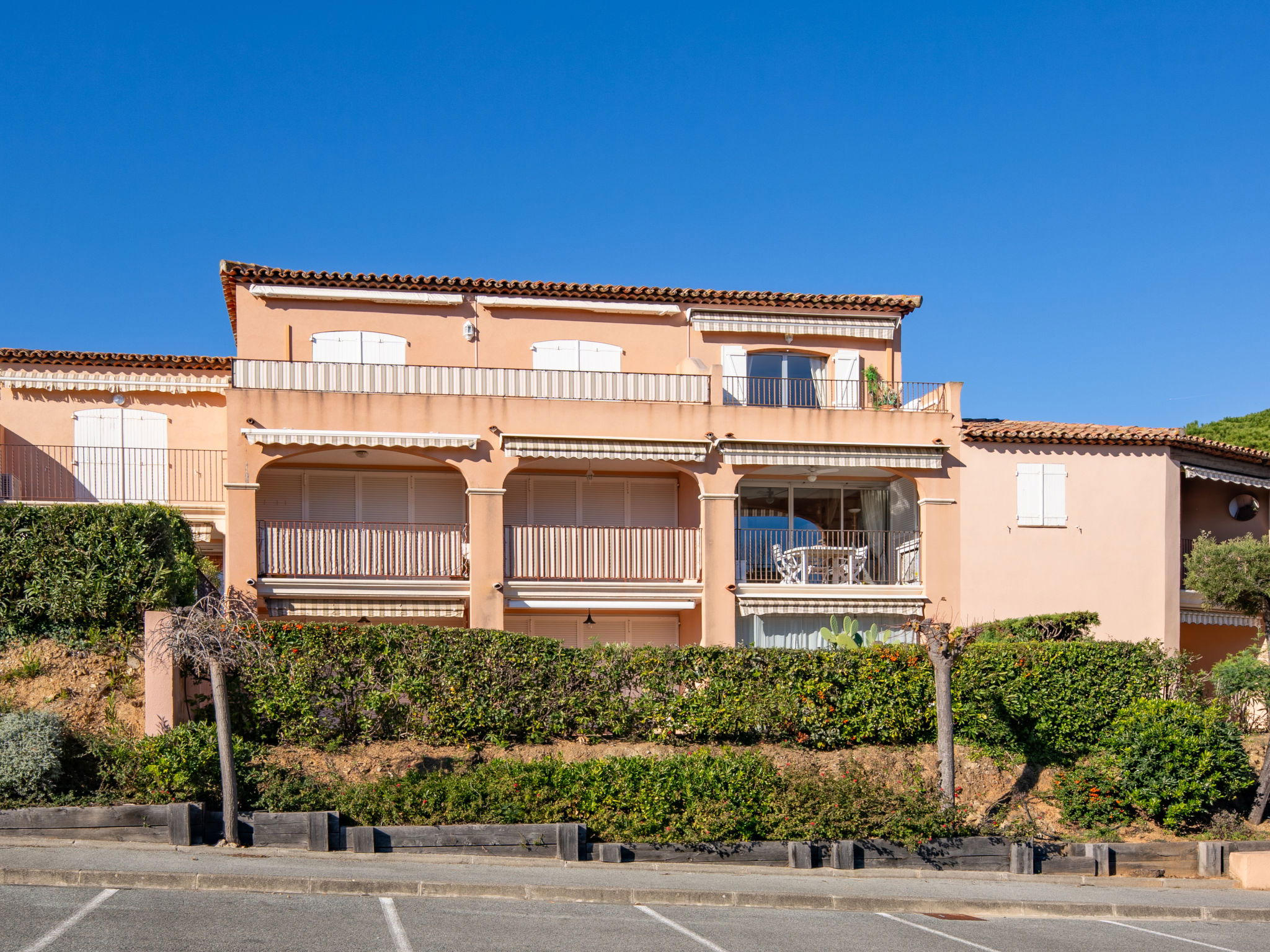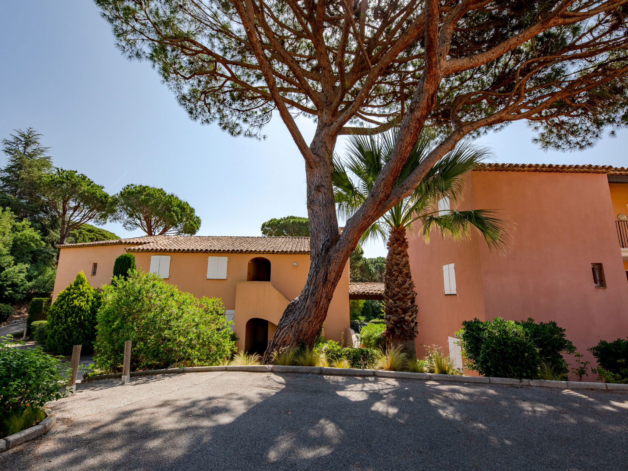 Beautiful residence "Le Thalassa", 2 storeys. Domaine des Myrtes, in the district of La Croisette, on the outskirts, 800 m from the centre of Sainte Maxime, in the residential district, 200 m from the sea, 200 m from the beach. For shared use: park 2 ha, swimming pool (7 x 15 m, depth 100 - 190 cm, seasonal availability: 01.Jun. - 30.Sep.). Children's pool, tennis, parking (limited number of spaces). Shop, grocery 600 m, supermarket 2 km, shopping centre 2 km, restaurant 300 m, café 600 m, bus stop 500 m, railway station "Saint-Raphael TGV" 20 km, sandy beach "la Croisette" 200 m, park "Jardin Botanique" 50 m, thermal baths "Thalasso Les Issambres" 7 km. Sports harbour 2 km, golf course (18 hole) 5 km, tennis 150 m. Nearby attractions: Aqualand waterpark 5 km, Azur park attractions 16 km, Saint-Tropez/Ramatuelle 16 km, Port-Grimaud 12 km, Gorges du Verdon 95 km, Navette / shuttle boat St-Tropez 15min 2 km. Hiking paths: Massif des Maures 5 km, Massif de l'Esterel 38 km. Please note: car recommended. Residence with electric gates. The keys‘ handover takes place by the agency in Sainte-Maxime. Airfield 70 km from the property.