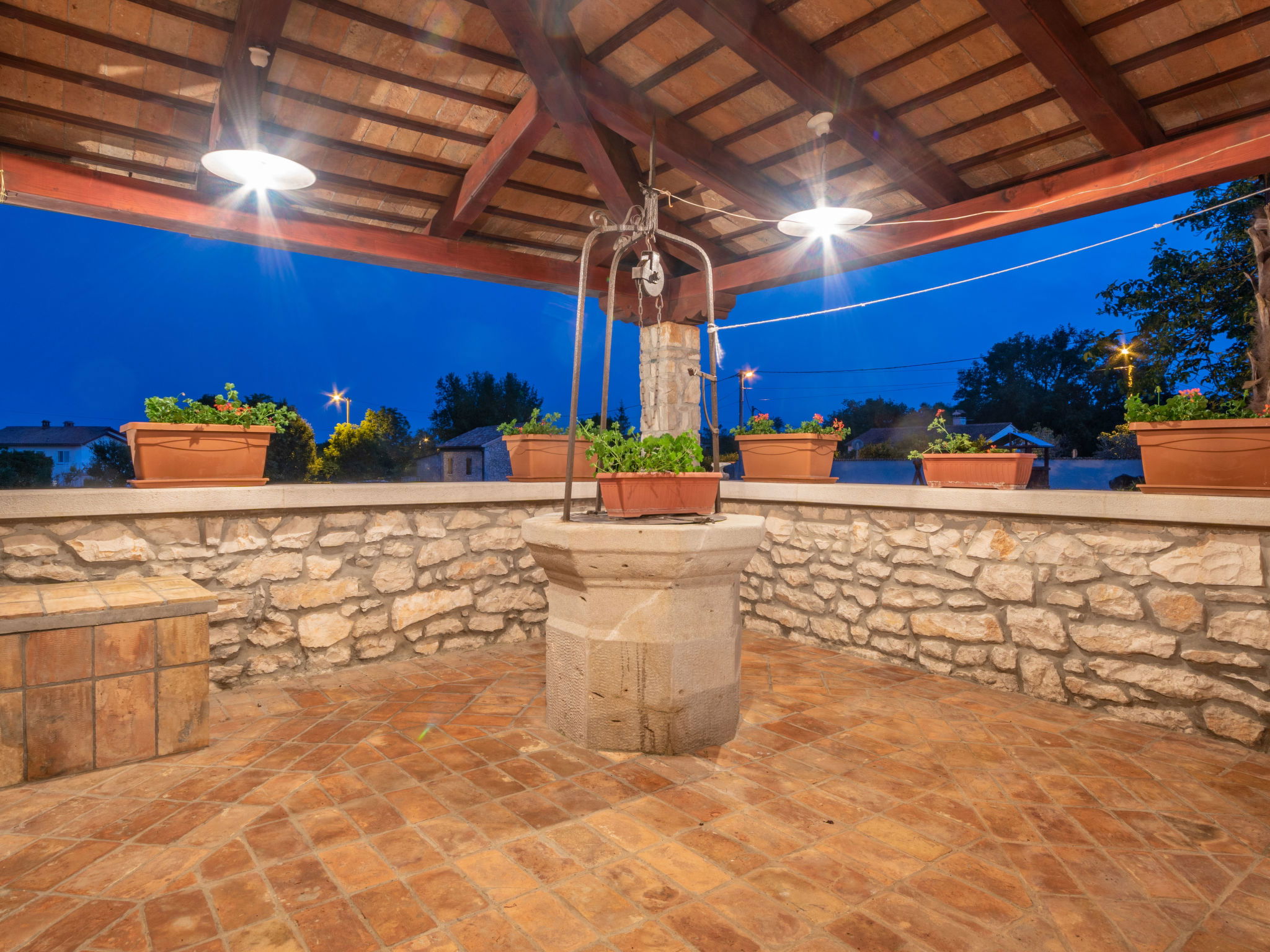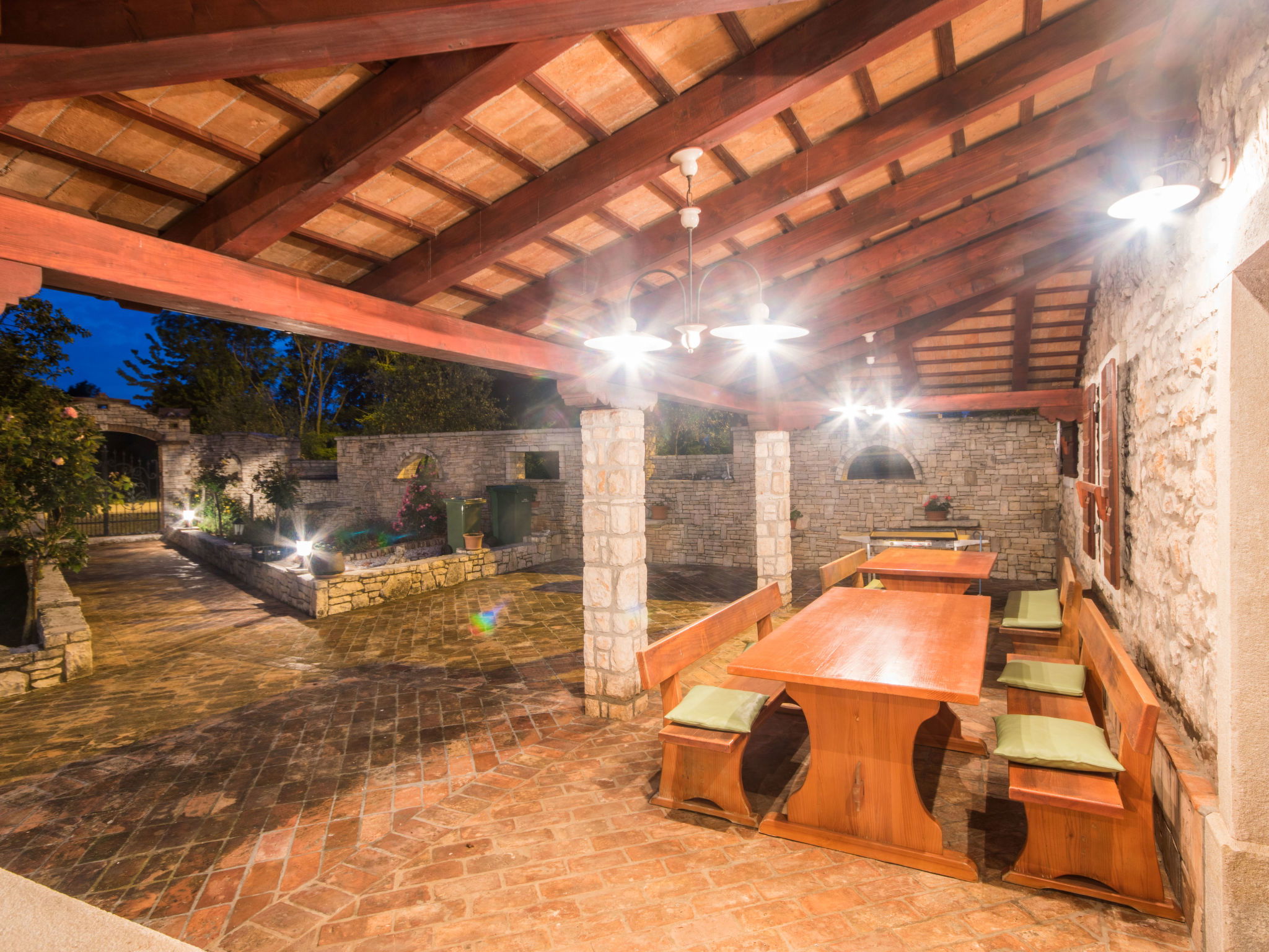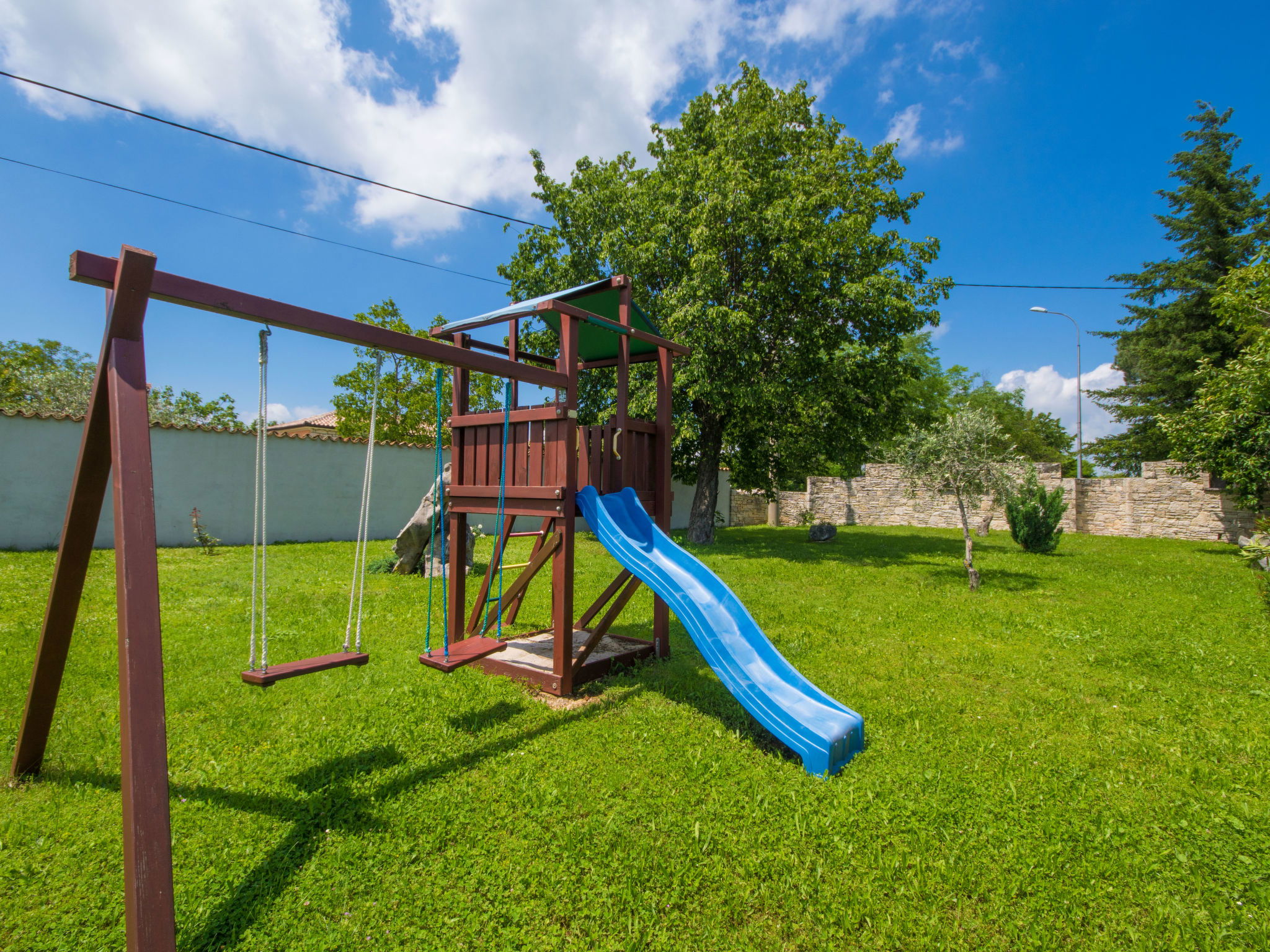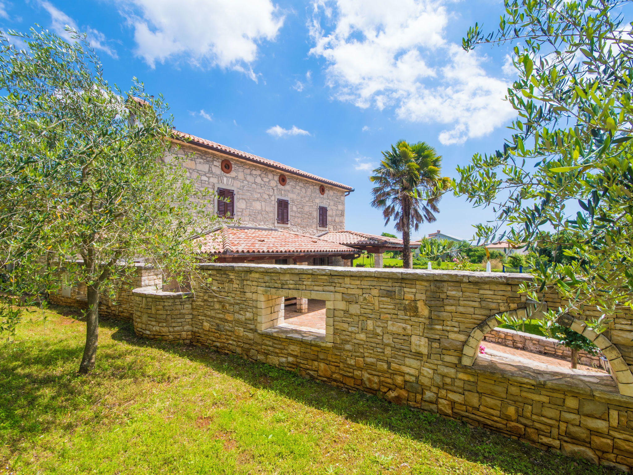 Rustic single-family house "Blašković", 3 storeys. In the hamlet Balarini 9 km from the centre of Labin, 15 km from the centre of Rabac, 15 km from the sea, 15 km from the beach. Private: property 1'200 m2 (fenced), lawn and wildlife garden, swimming pool angular (8 x 4 m, depth 140 cm, seasonal availability: 01.Apr. - 30.Oct.) with internal staircase. Outdoor shower, terrace (70 m2), barbecue, pool maintenance by the owner/gardener. In the house: internet access, washing machine. Parking (for 4 cars) at the house on the premises. Shop 6 km, supermarket 9 km, restaurant 6 km, bus stop "Labin" 9 km, pebble beach 15 km. Please note: airfield 45 km from the property.