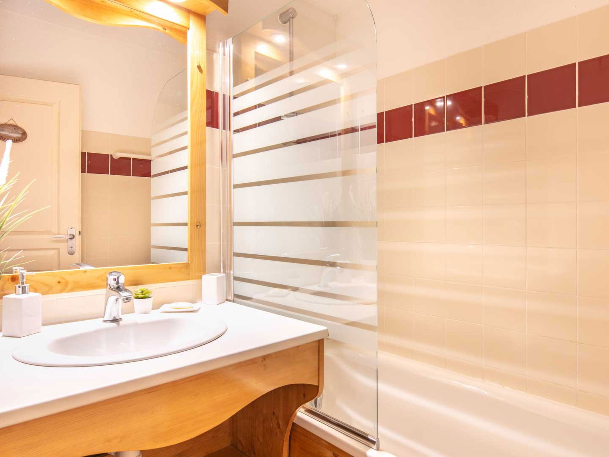 "V. Du Bachat Joubarbes", 2-room apartment 29 m2, on the ground floor. Object suitable for 4 adults. 1 room with 1 double bed and TV. Living room with 1 sofabed and 1 pull-out bed. Open kitchen (4 hot plates, oven, dishwasher, toaster, kettle, microwave, electric coffee machine). Bath/WC. Terrace. Facilities: washing machine. Internet (WiFi, free). Please note: non-smokers only. Offer by a commercial proprietor according to Art. 155, IV, CGI