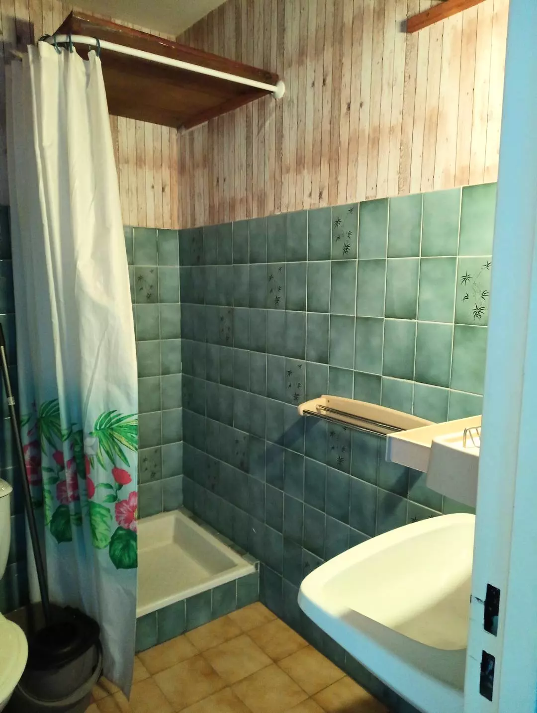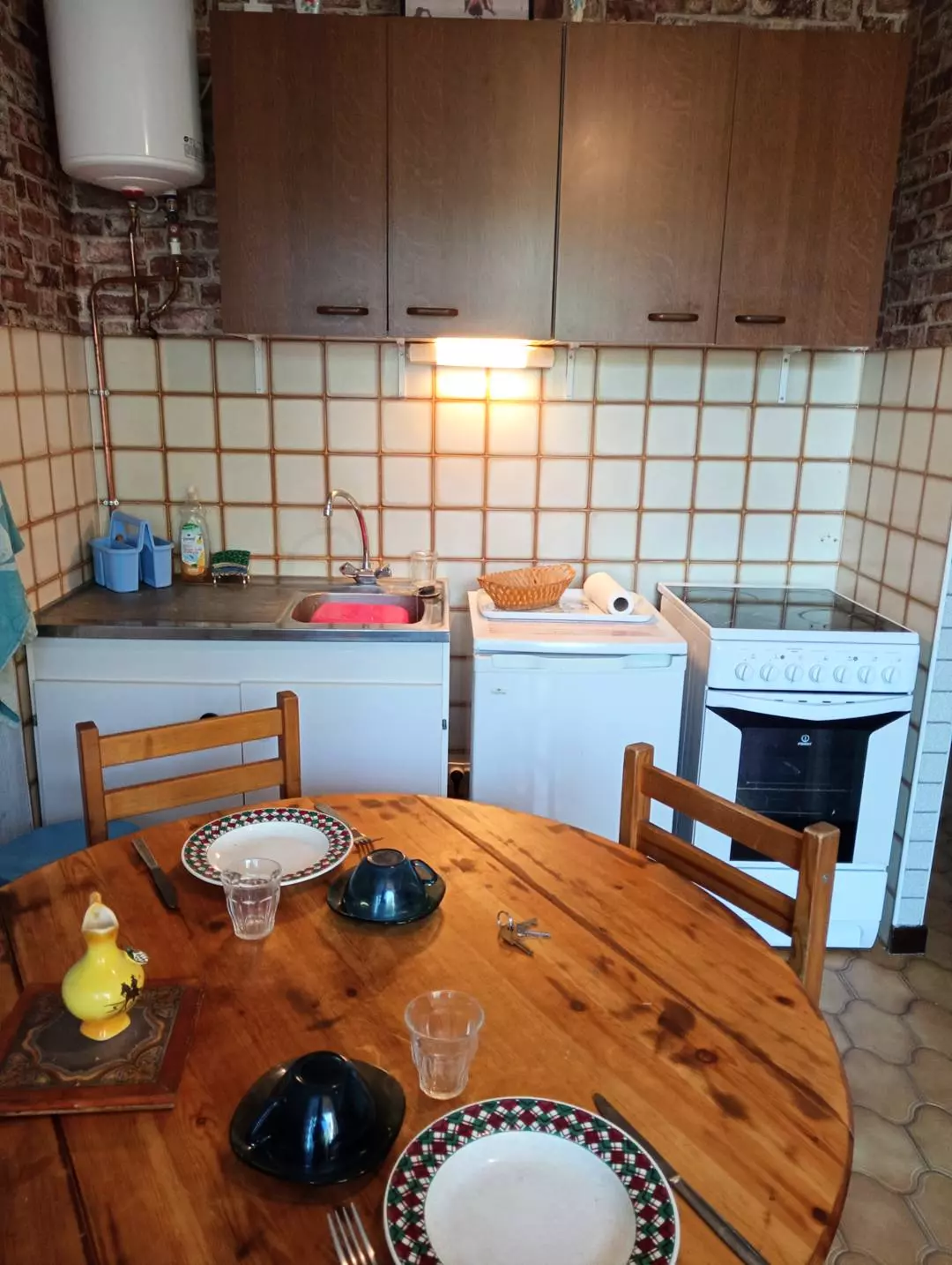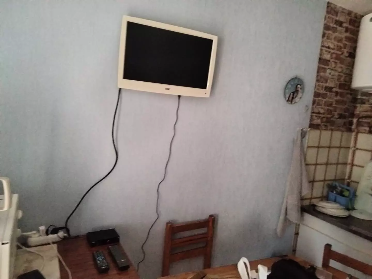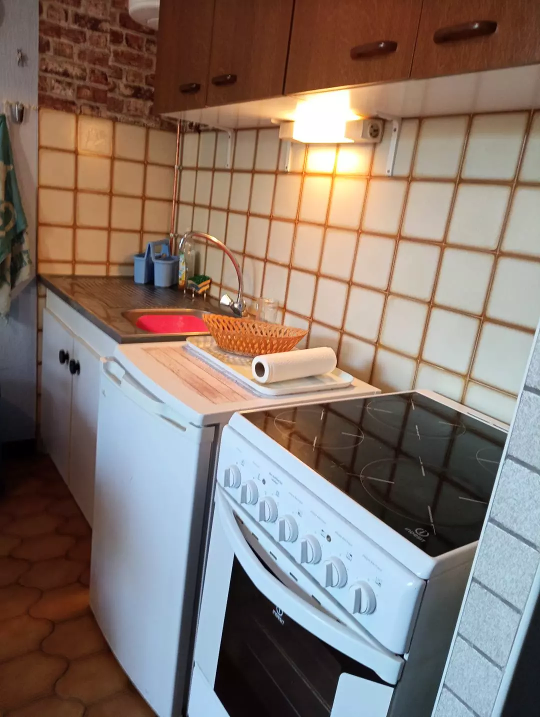 It has a bright living room with a TV, a 2-seater sofa bed and a pull-out bed (90 cm), a fully equipped kitchenette (hob, microwave, small refrigerator, oven), as well as a bathroom with shower, sink and toilet.