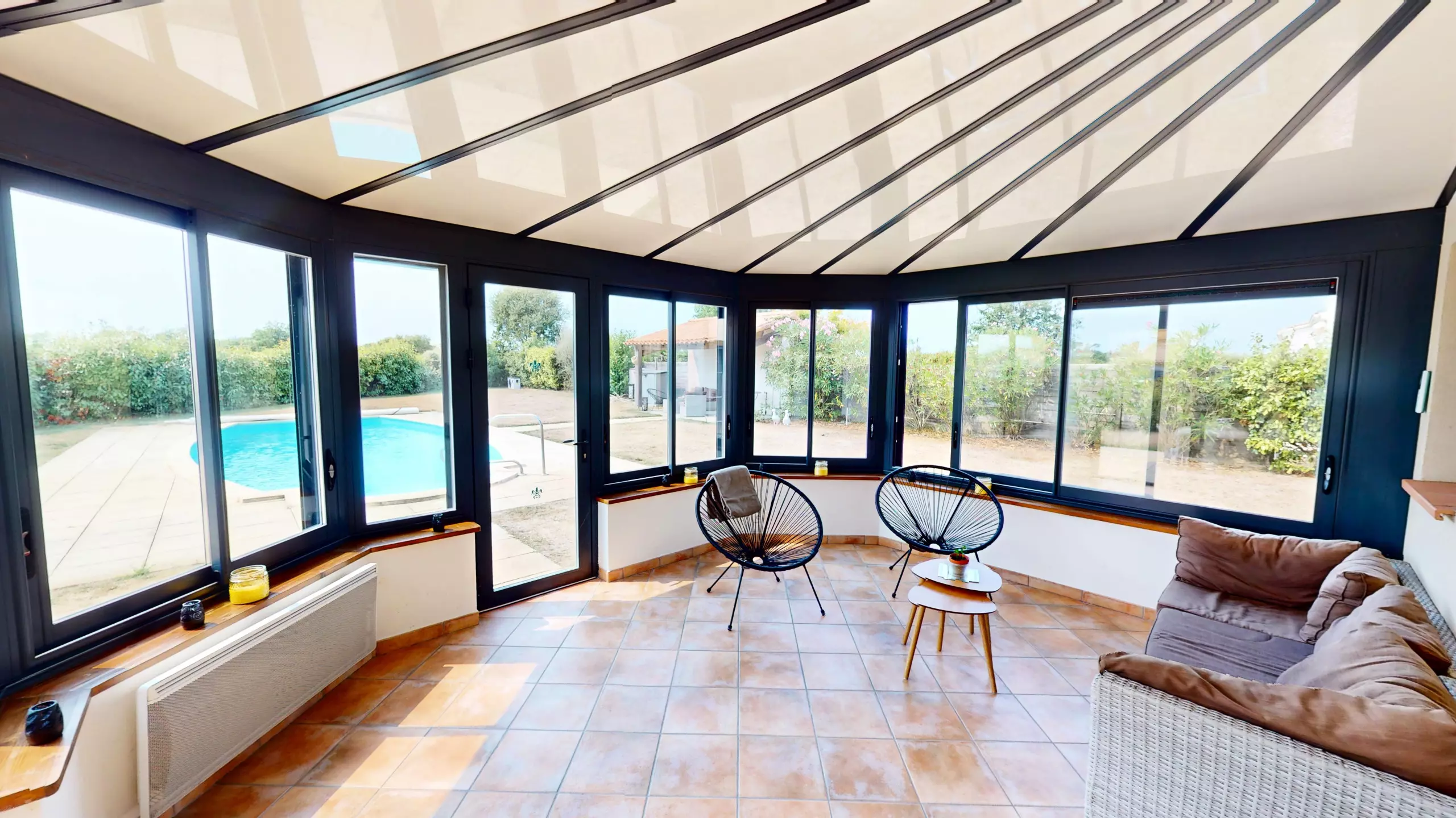 Outside, the enclosed garden offers complete privacy to enjoy the warmer months. The garden furniture with its barbecue is ideal for al fresco dining, while the terrace with table and chairs is perfect for sunbathing or dining al fresco. If you prefer a bit more peace and quiet, the veranda with its seating area allows you to enjoy a soothing view of the swimming pool.