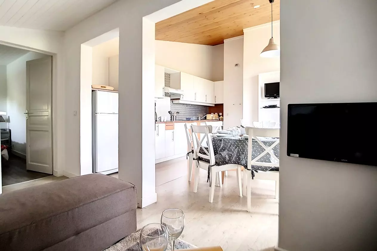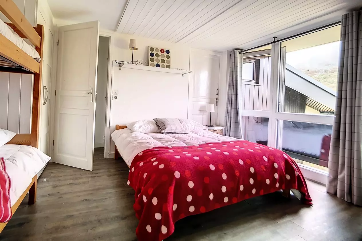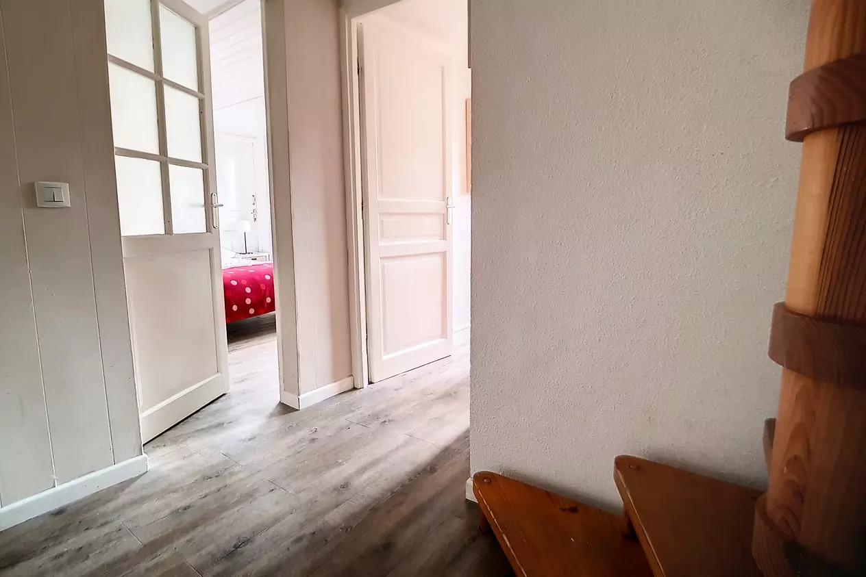 Beautiful 4-room duplex apartment of 66m² for 8 people with 2 west-facing balconies (one on the ground floor and one on the floor). The apartment is located on the 3rd floor (no elevator) in a ski-in/ski-out residence. Aigle entrance.