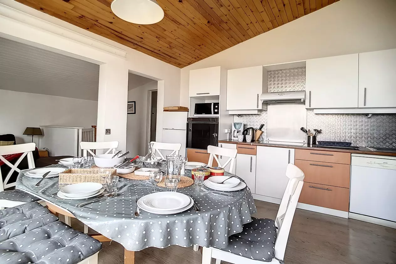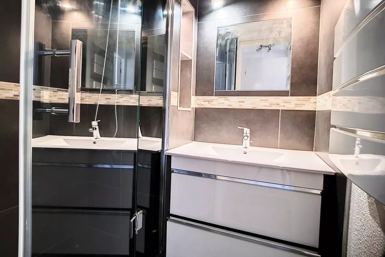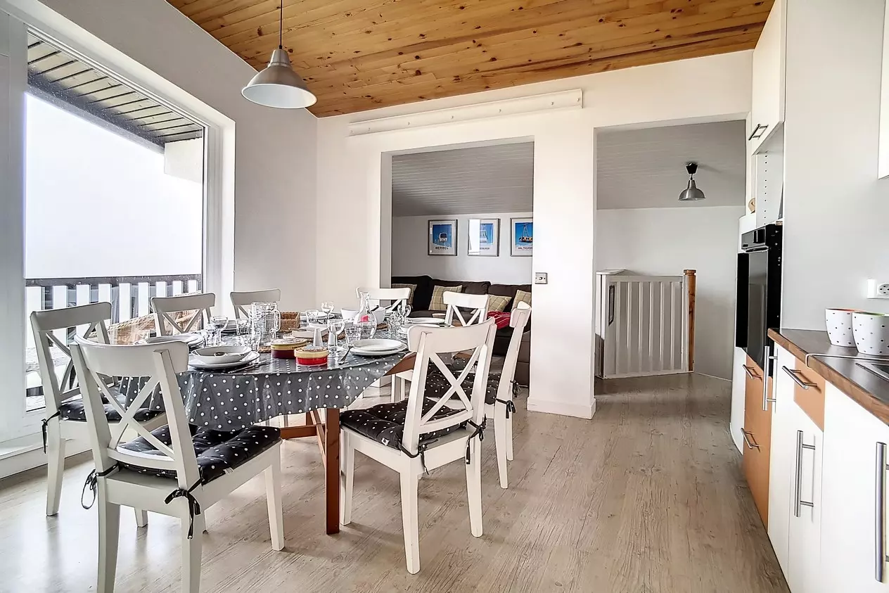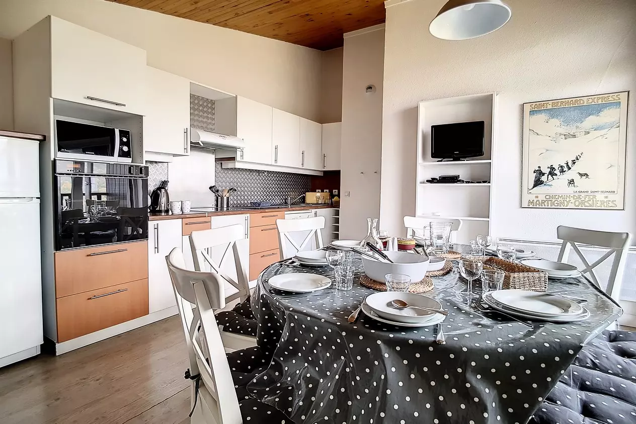 Beautiful 4-room duplex apartment of 66m² for 8 people with 2 west-facing balconies (one on the ground floor and one on the floor). The apartment is located on the 3rd floor (no elevator) in a ski-in/ski-out residence. Aigle entrance.