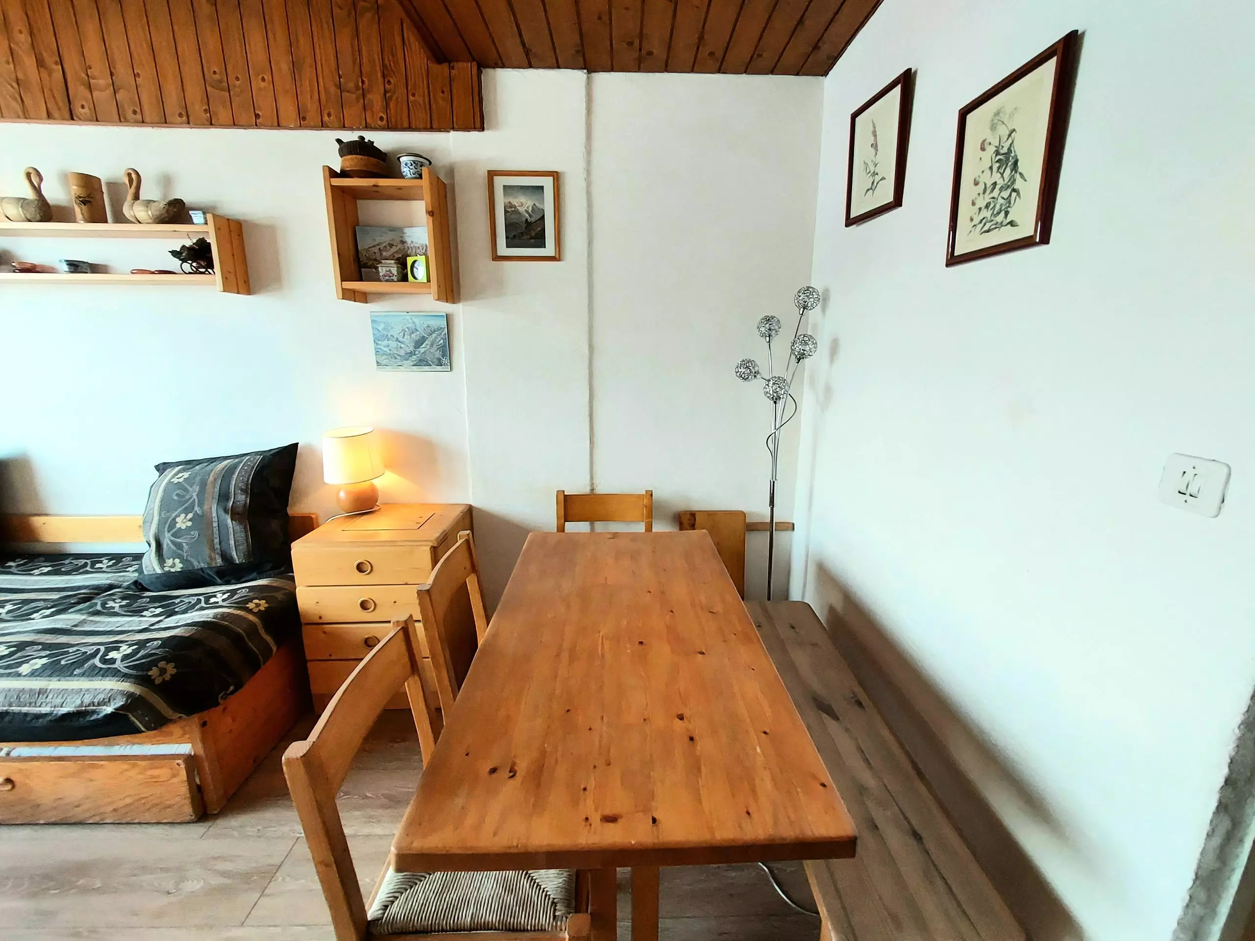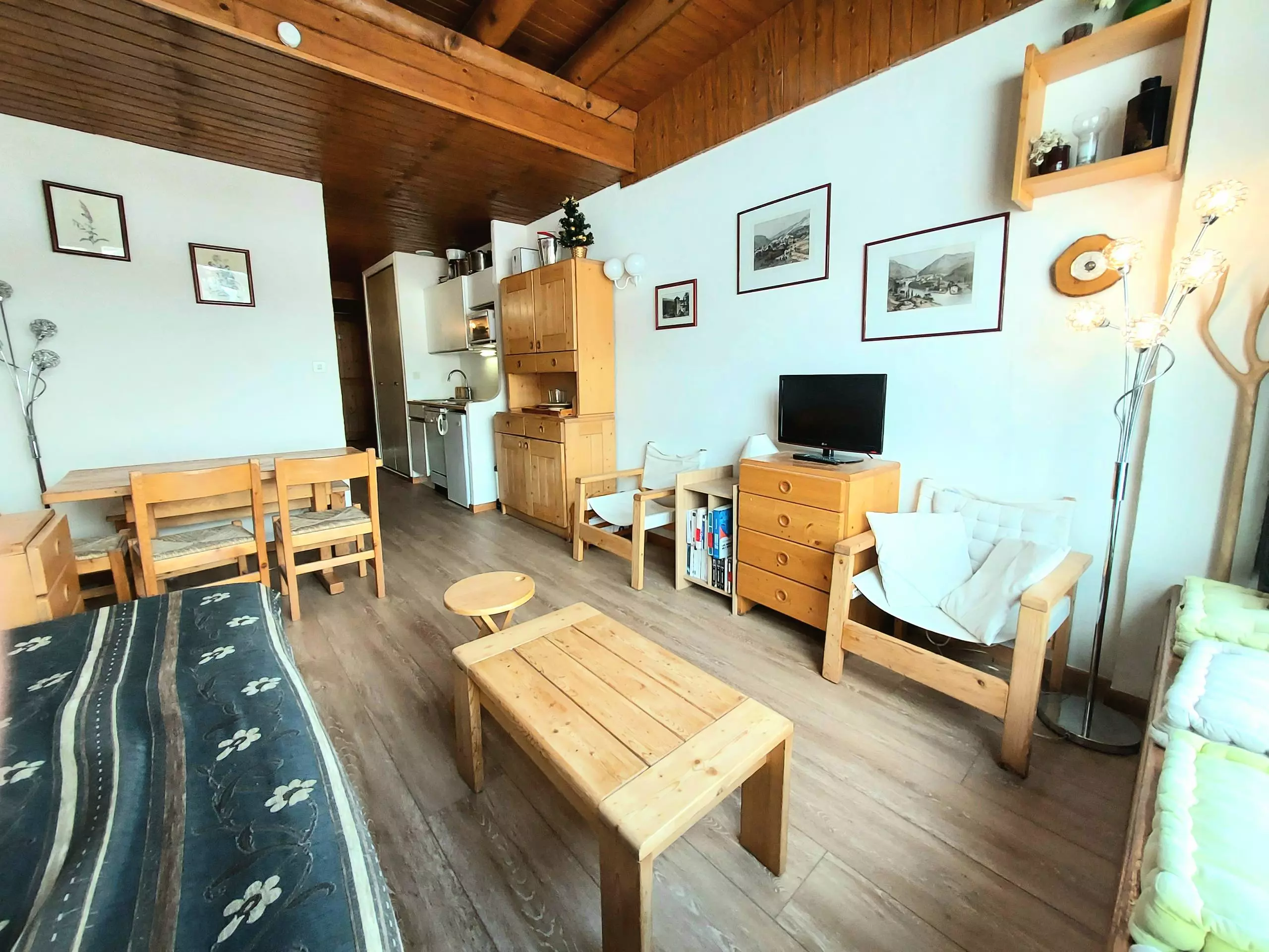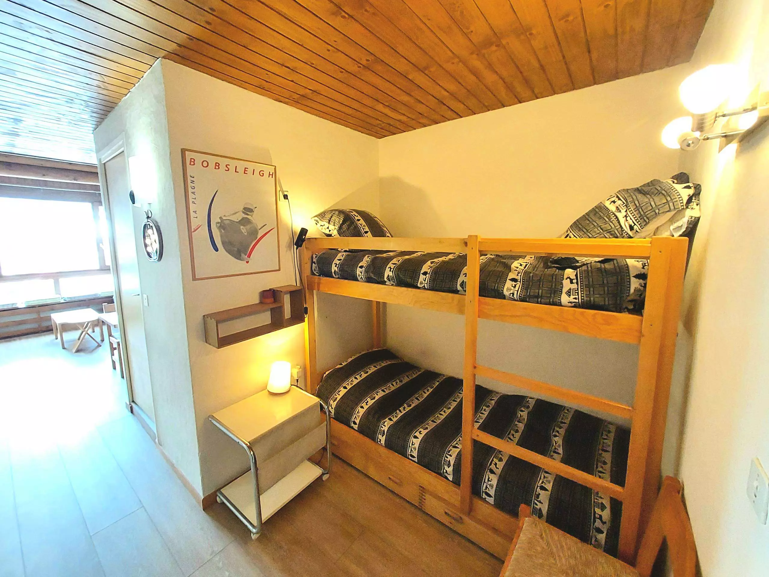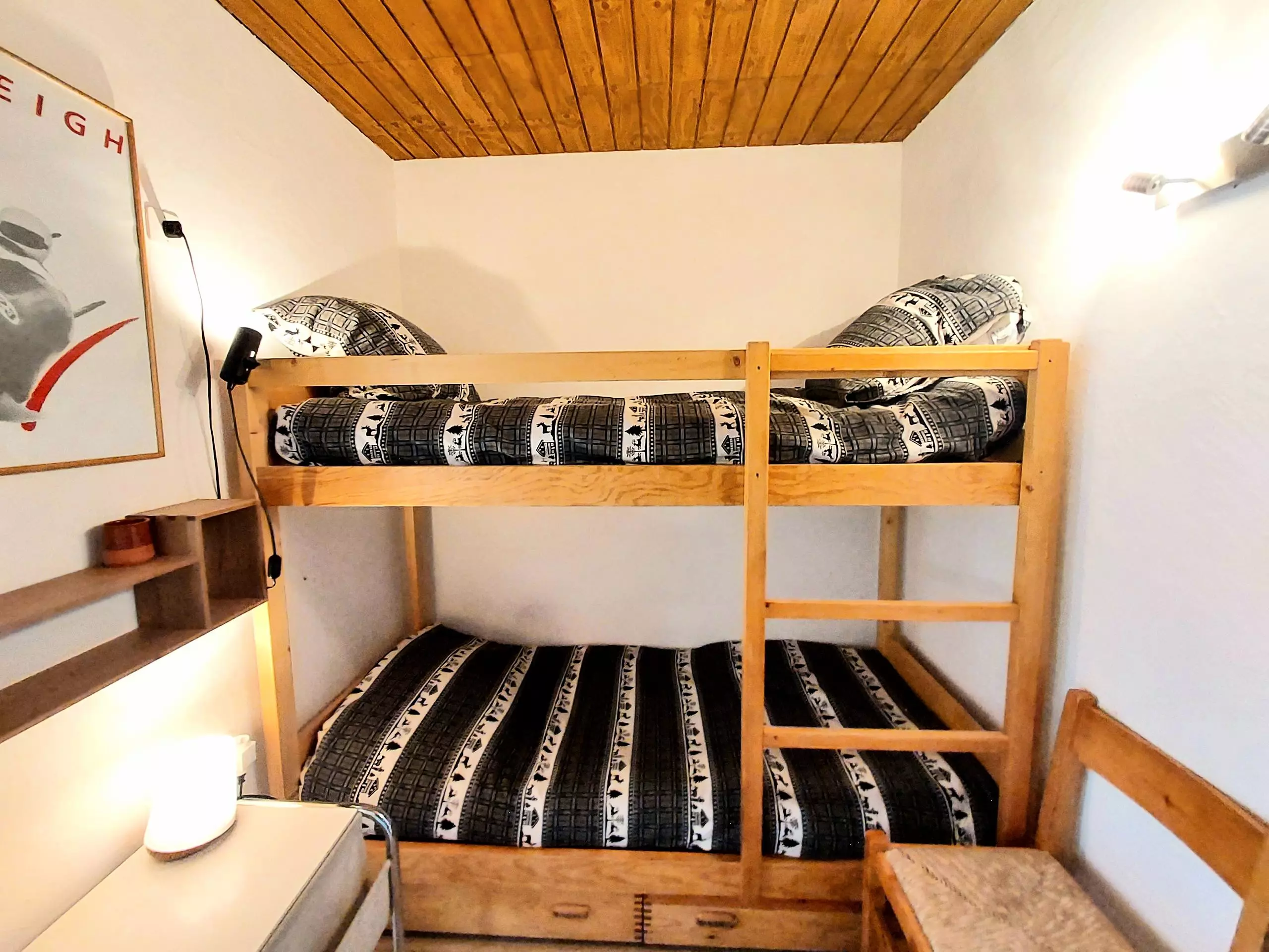 - Living room equipped with a set of bunk beds in the entrance and a pull-out bed