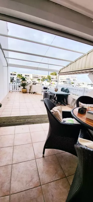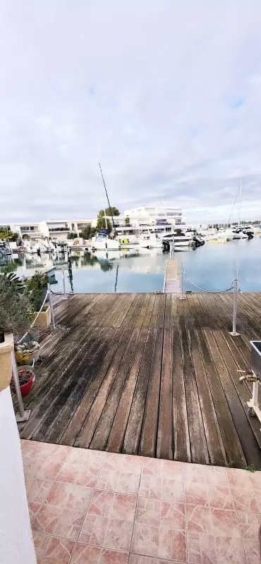 Unique access: Entrance on the street side and exit on the pontoon side, outdoor terrace directly overlooking the water.