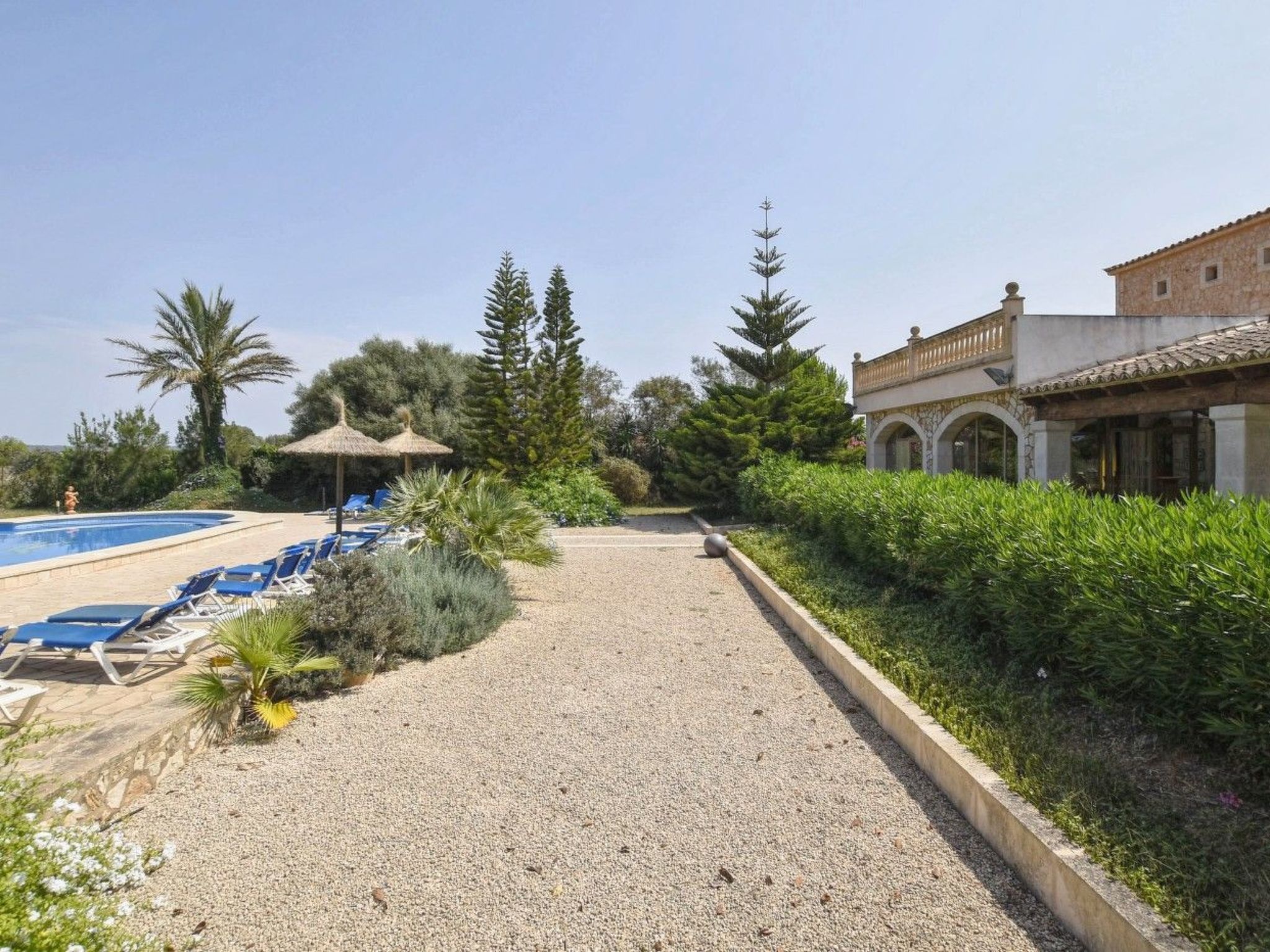 Discover the charm and tranquillity of this majestic holiday home located in Campos, Majorca, ideal for groups of up to 18 people. Designed to provide maximum comfort and privacy, this residence has all the necessary comforts to guarantee an unforgettable stay. Its extensive 700 m2 surface area offers generous spaces, perfect for relaxation and conviviality.