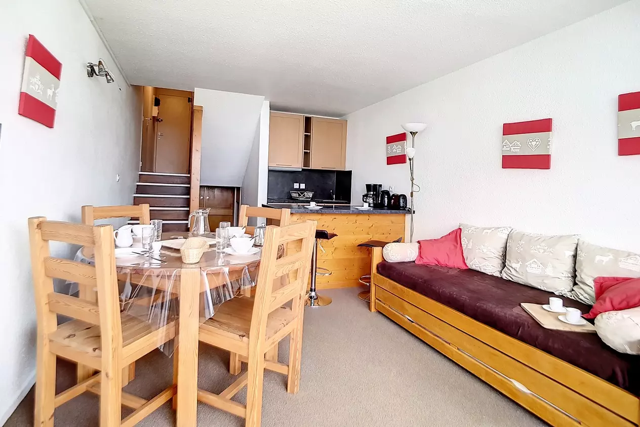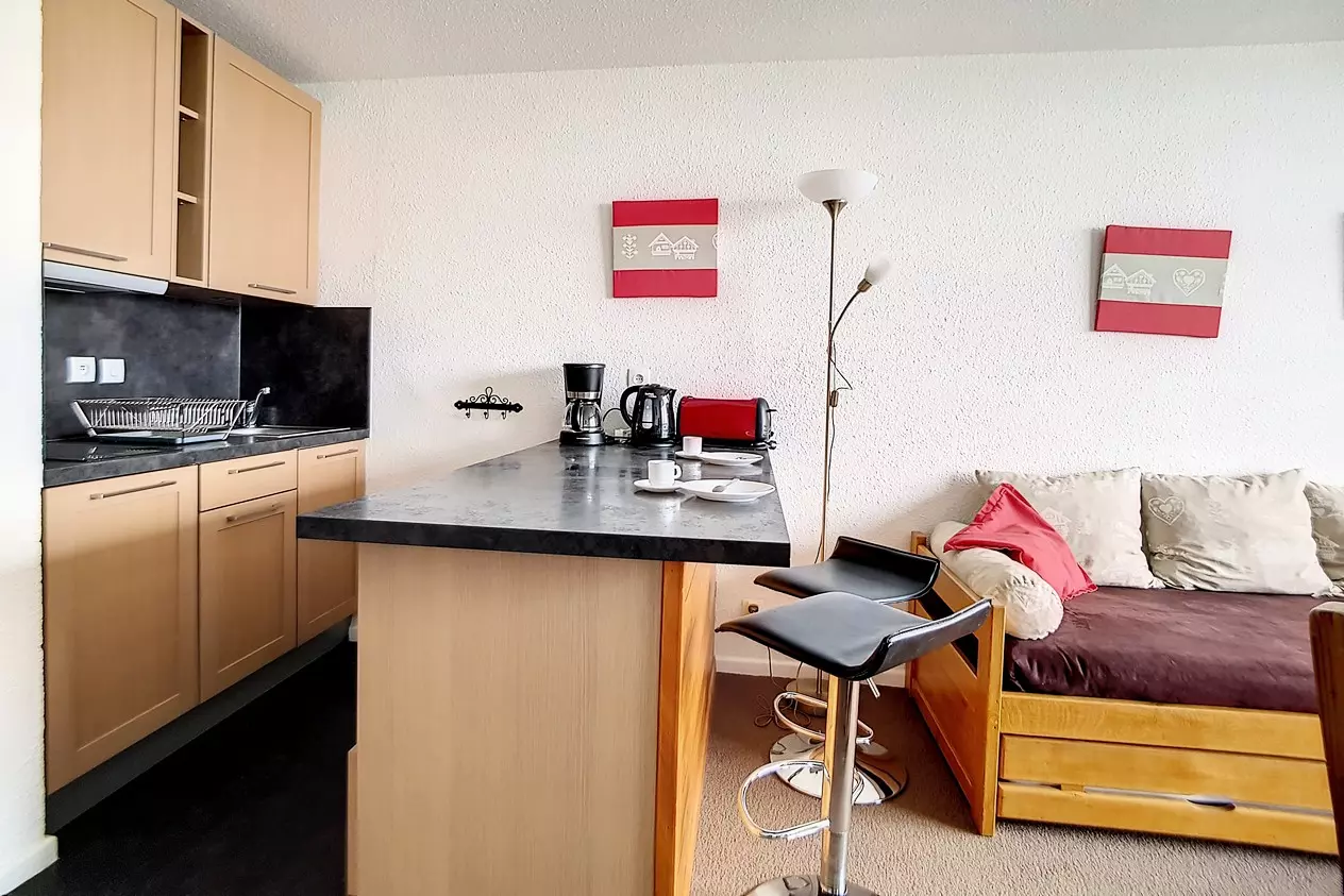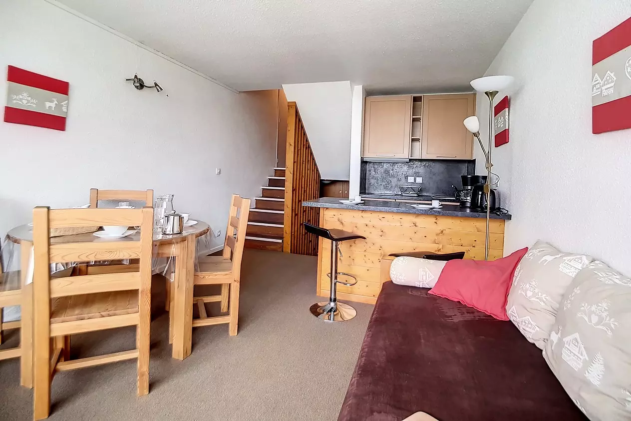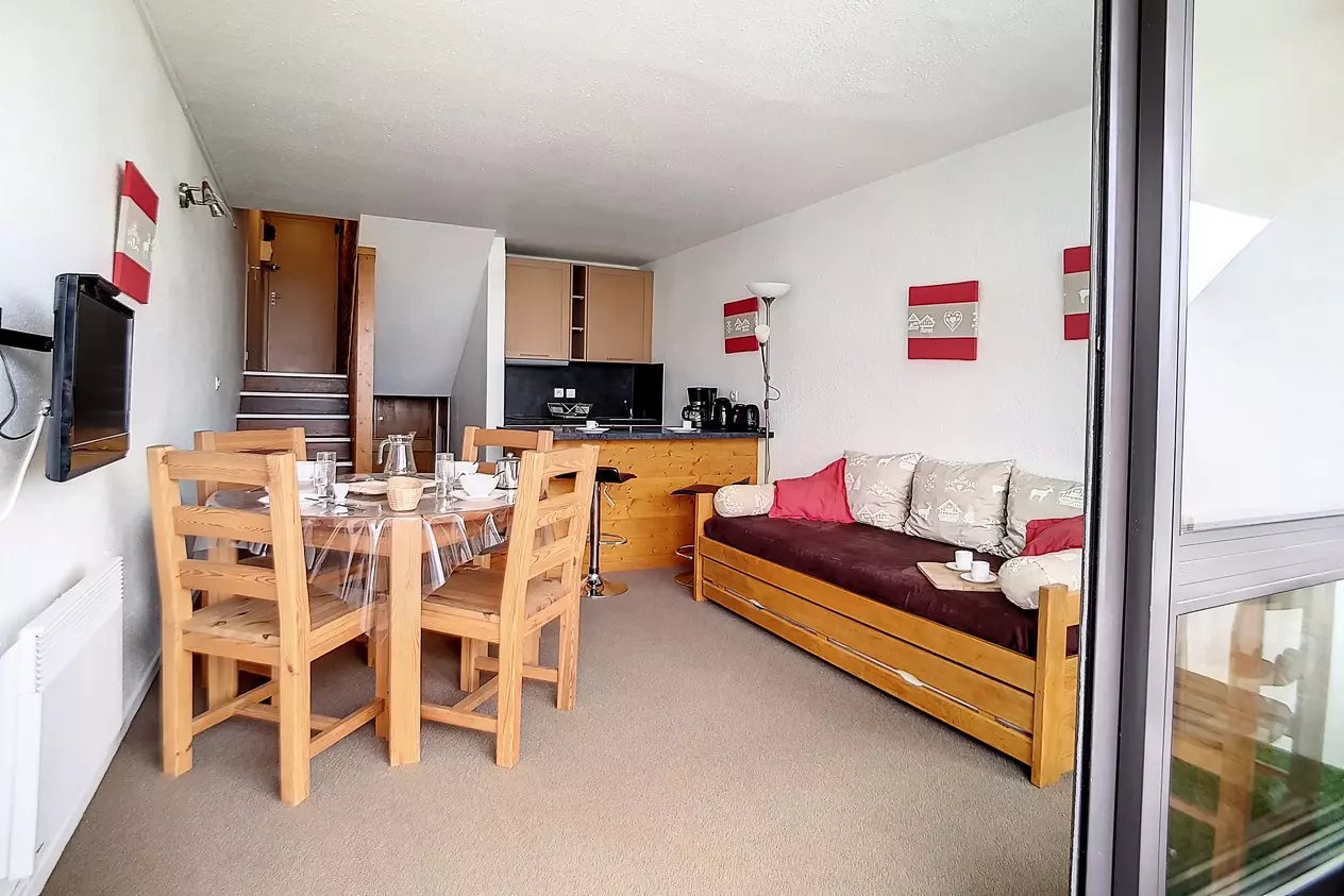 28 m² duplex studio apartment for 4 people with a south/west facing balcony located on the 4th floor with elevator. Exceptional views and sunshine.