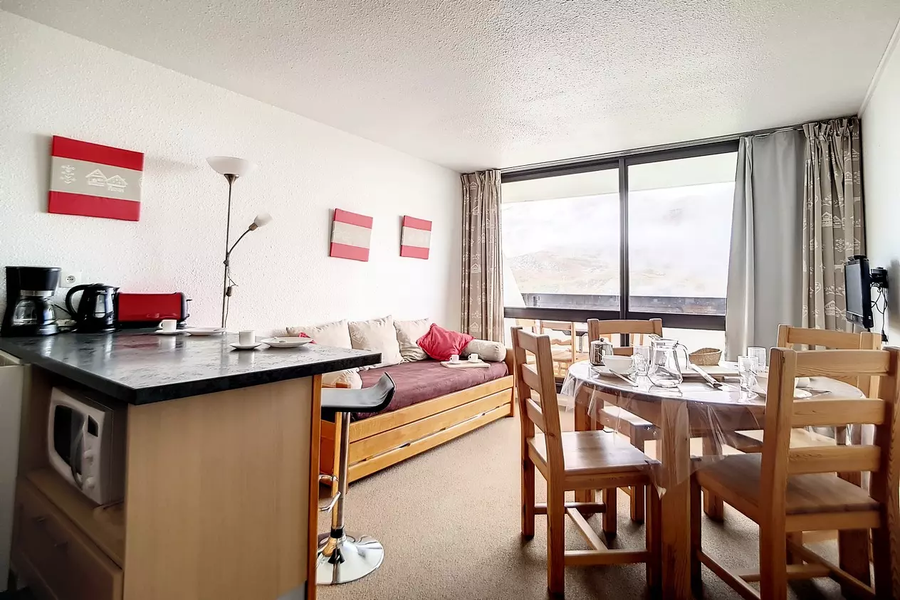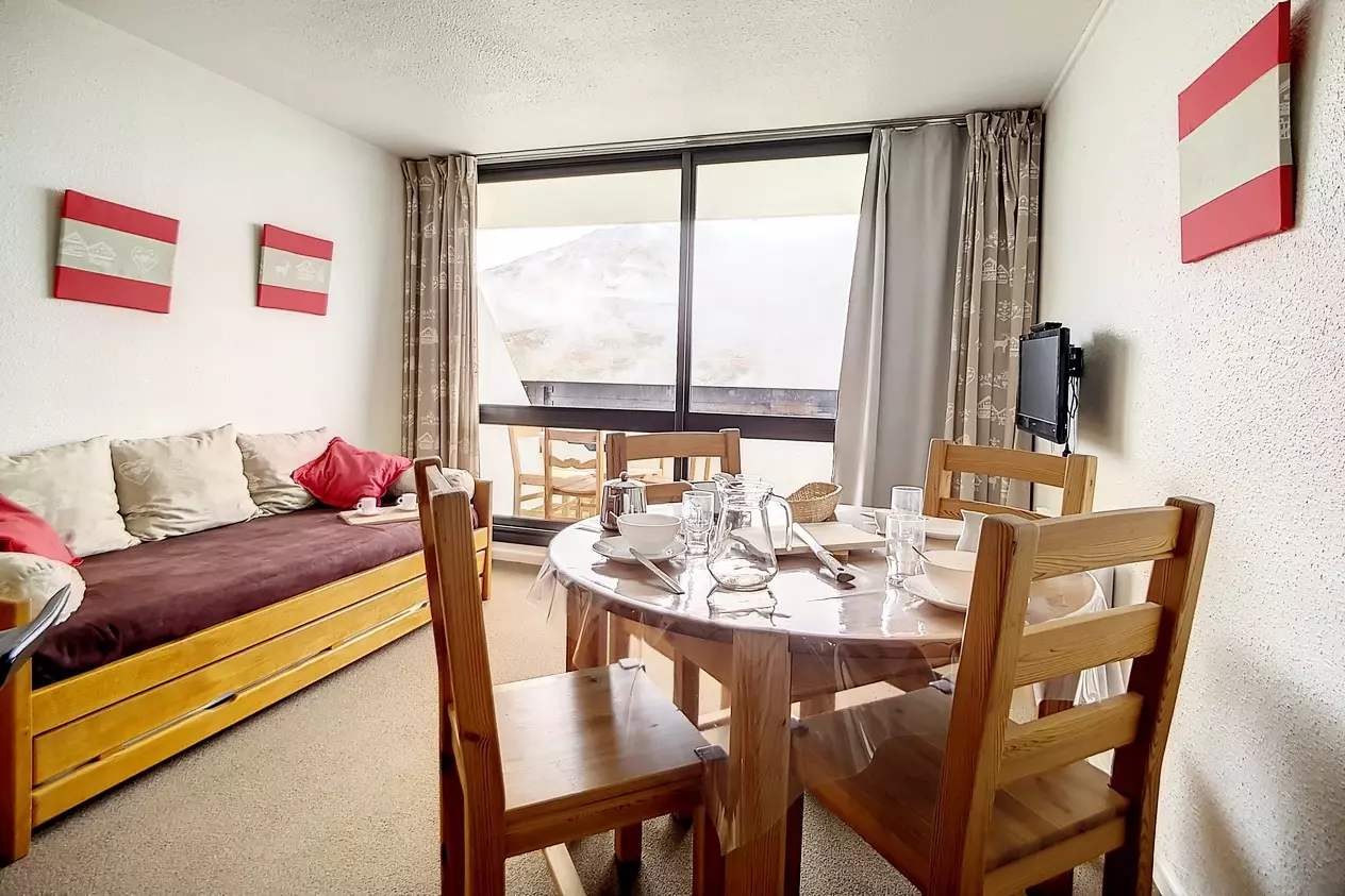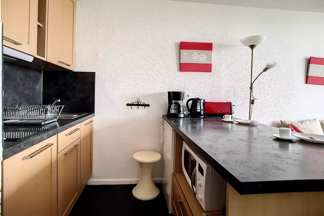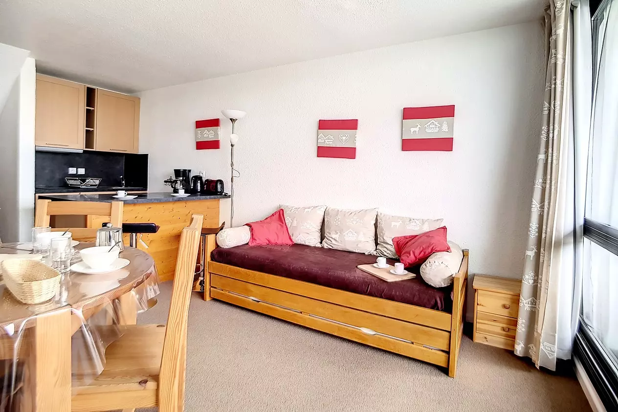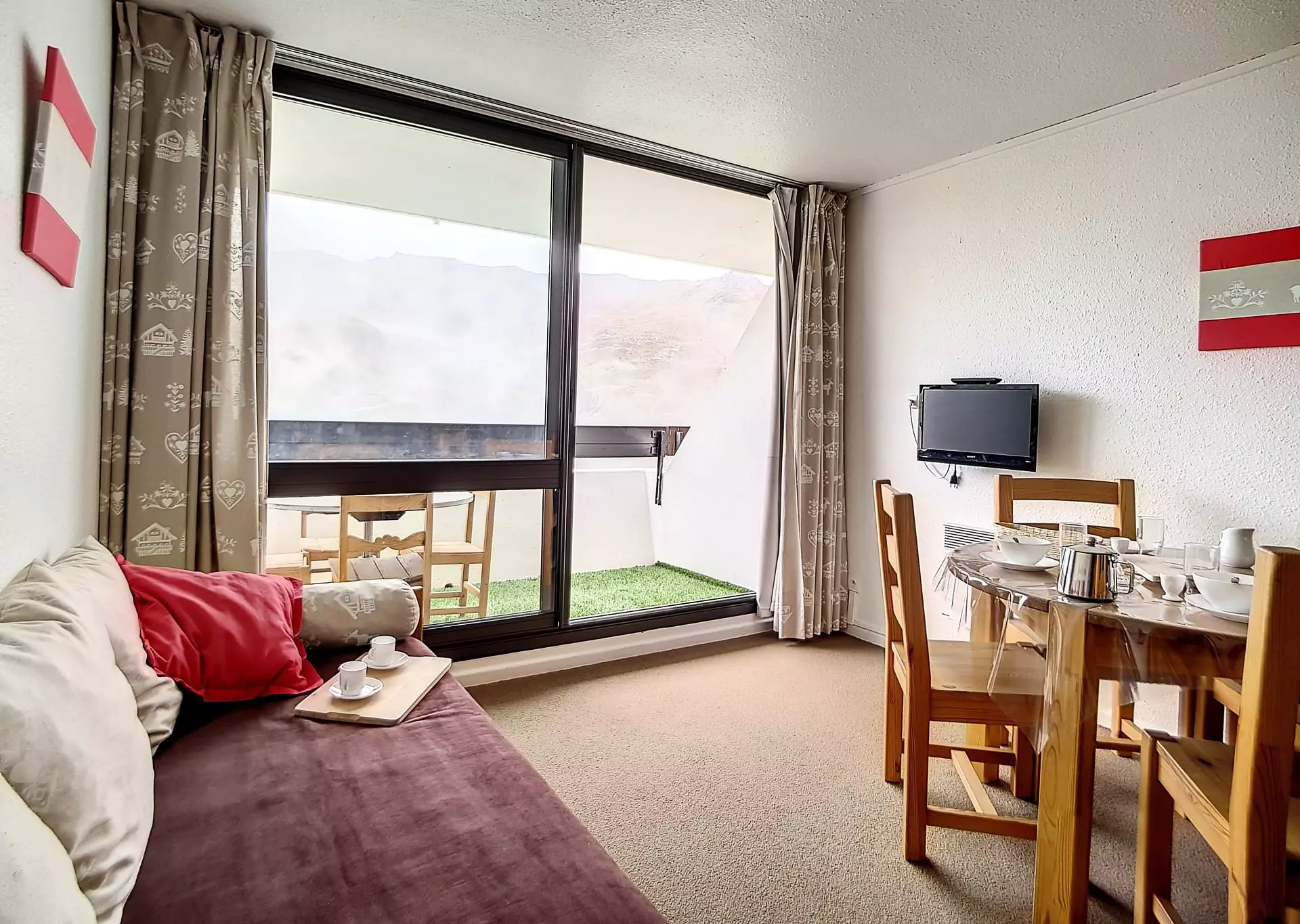 28 m² duplex studio apartment for 4 people with a south/west facing balcony located on the 4th floor with elevator. Exceptional views and sunshine.