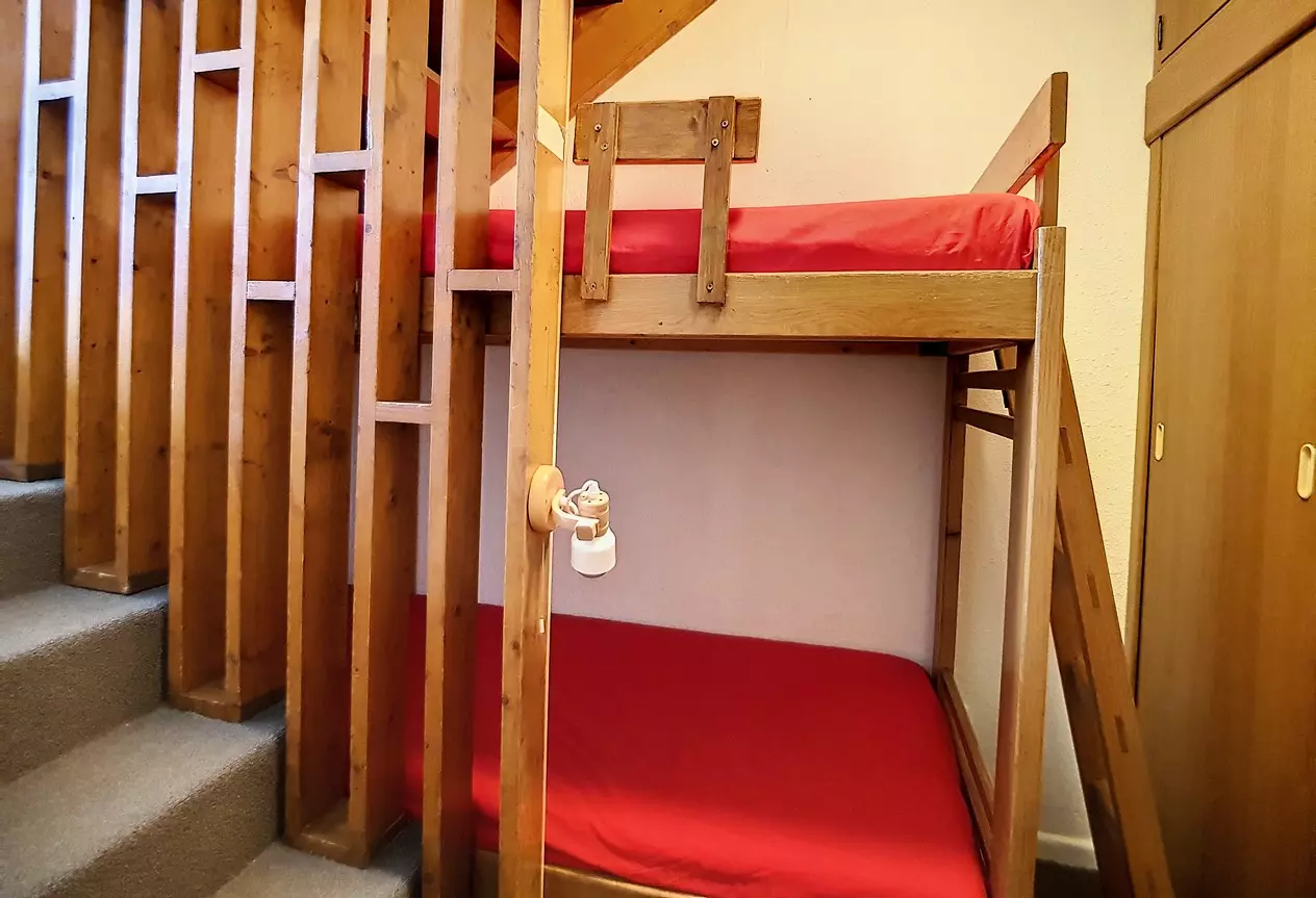 Mountain corner under the stairs: 2 single bunk beds. The upper bunk is not suitable for children under 6 years old.