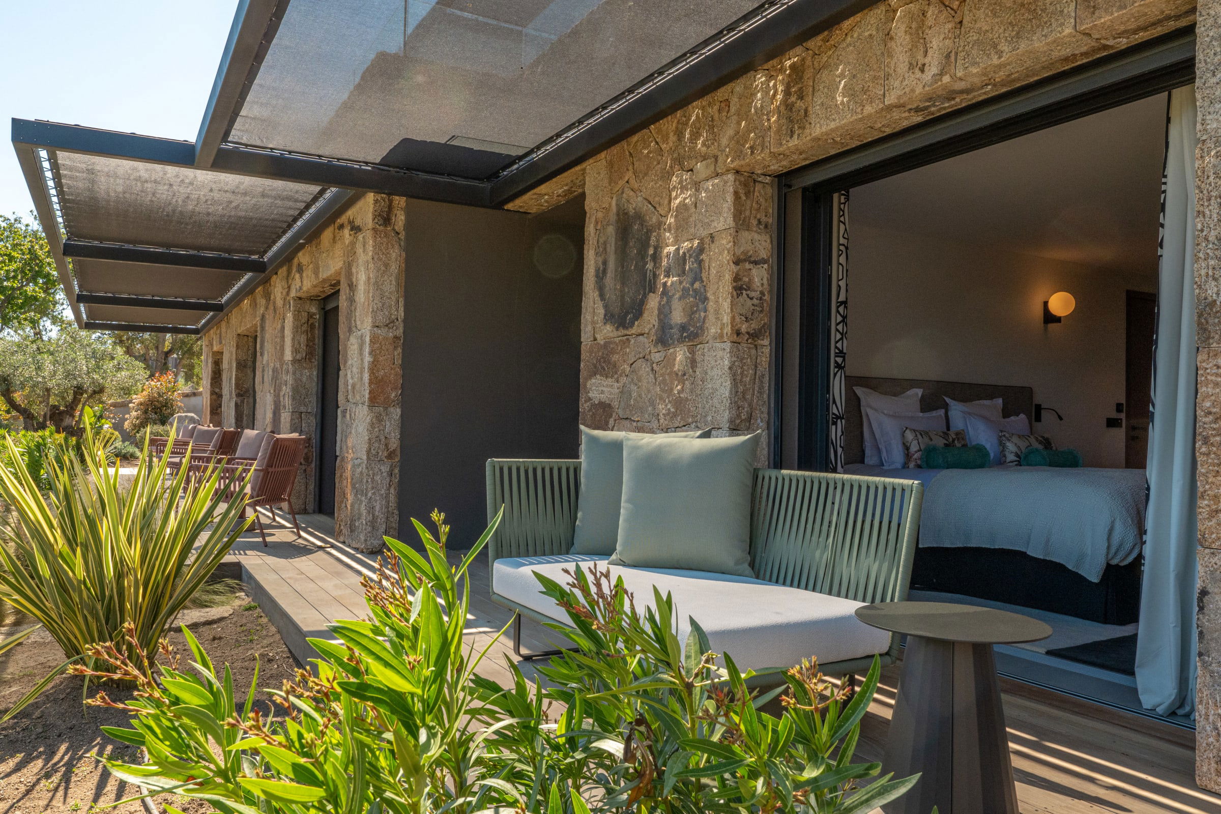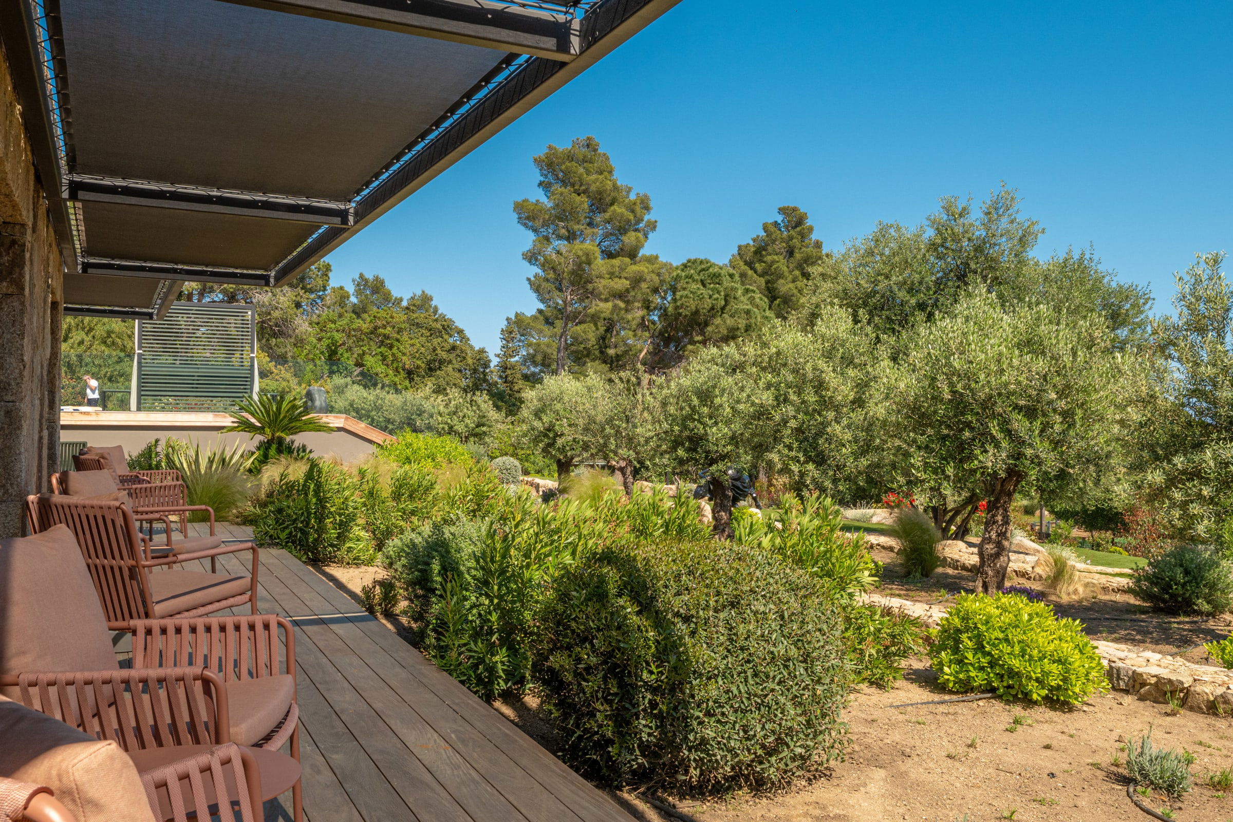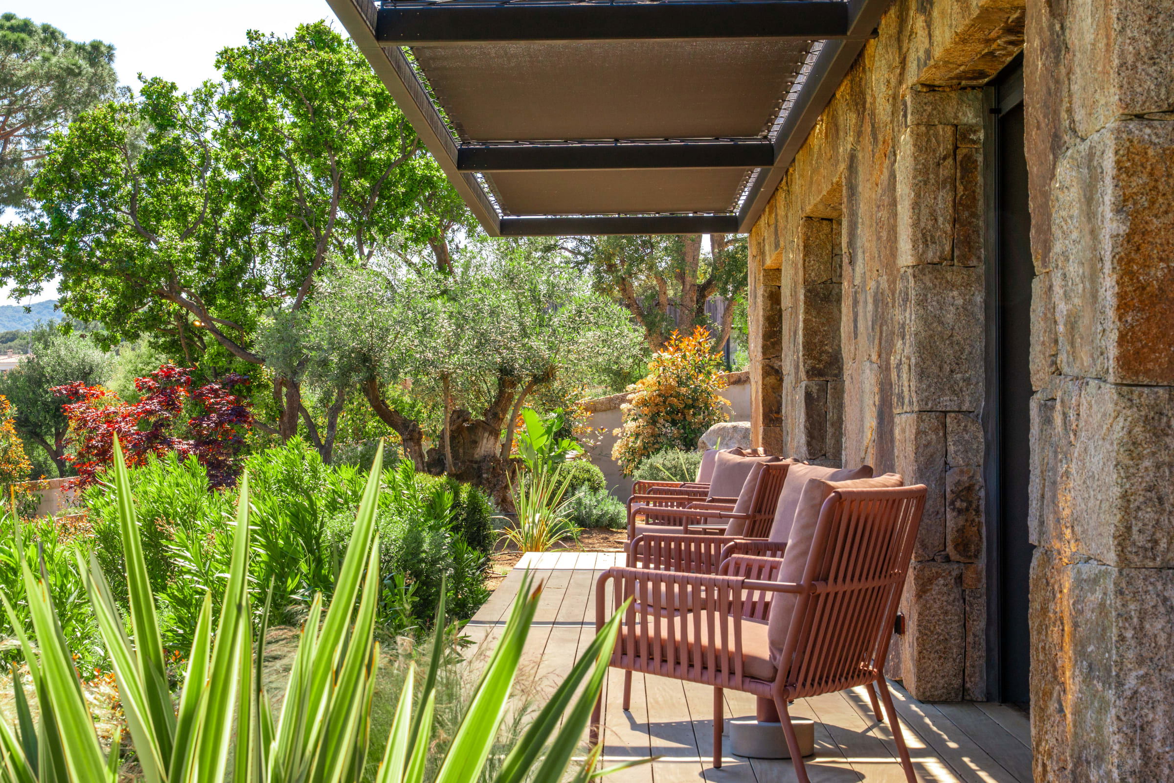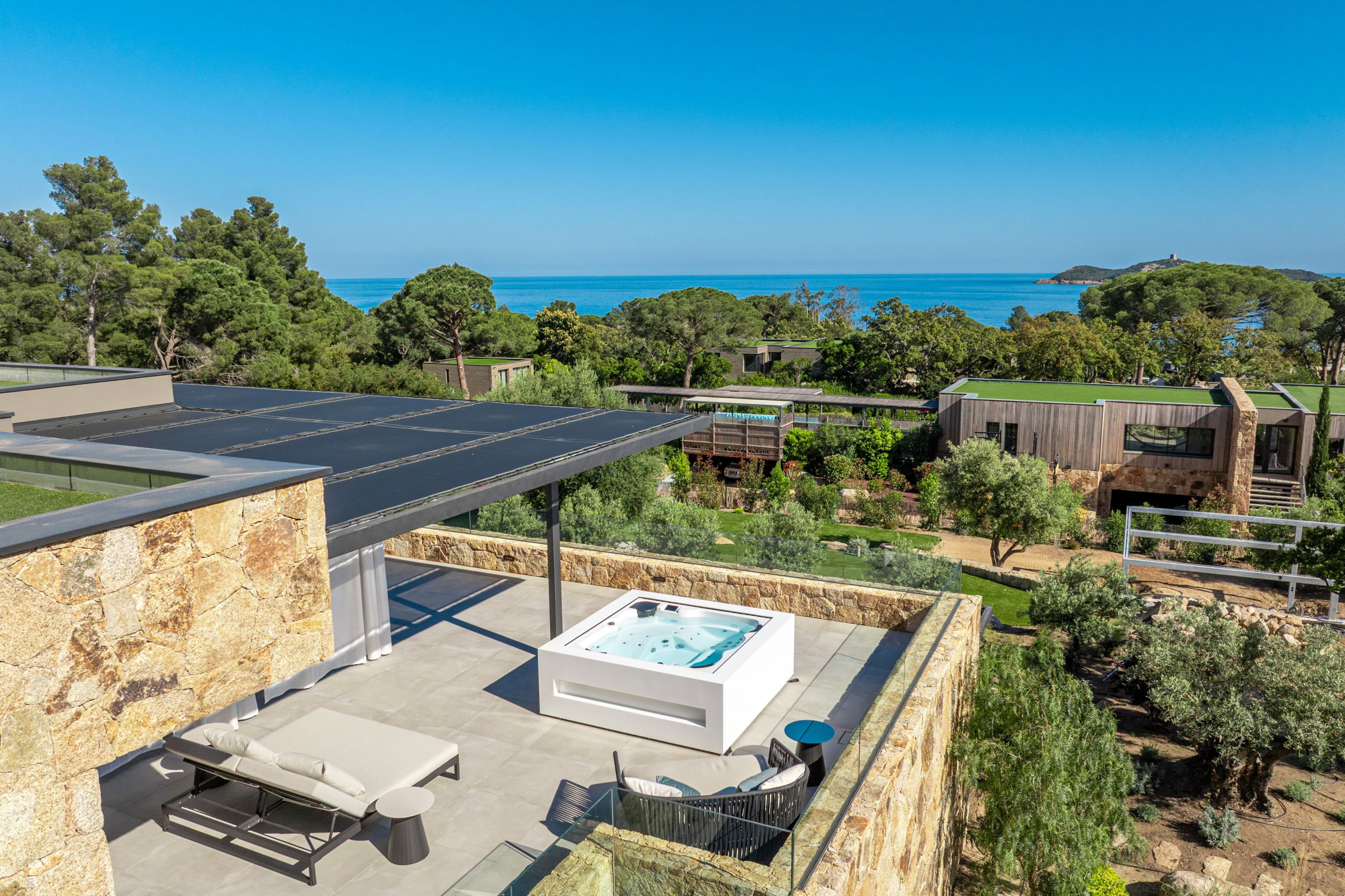 The outdoor spaces have been designed as a real haven of well-being, inviting relaxation and sharing throughout the day.