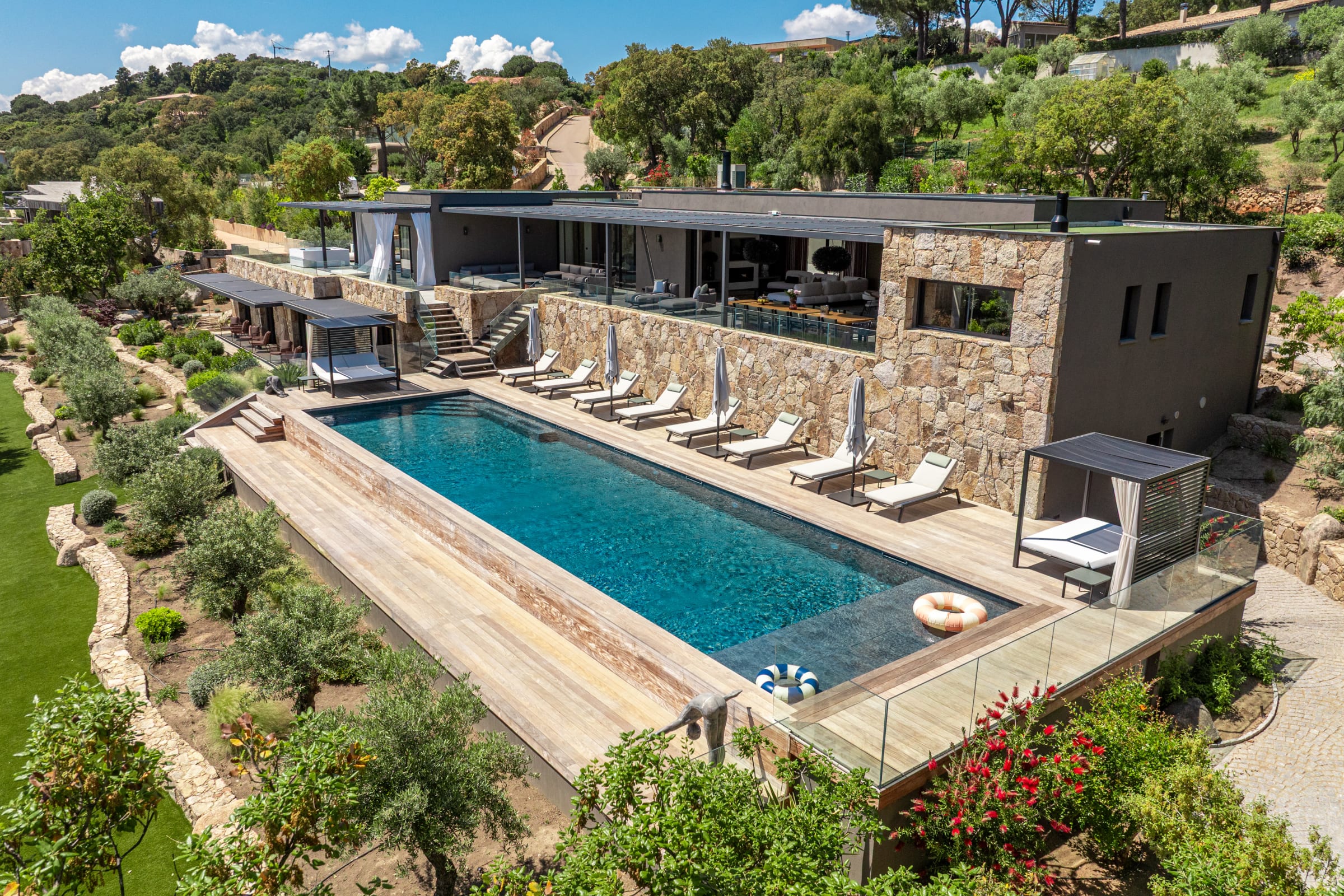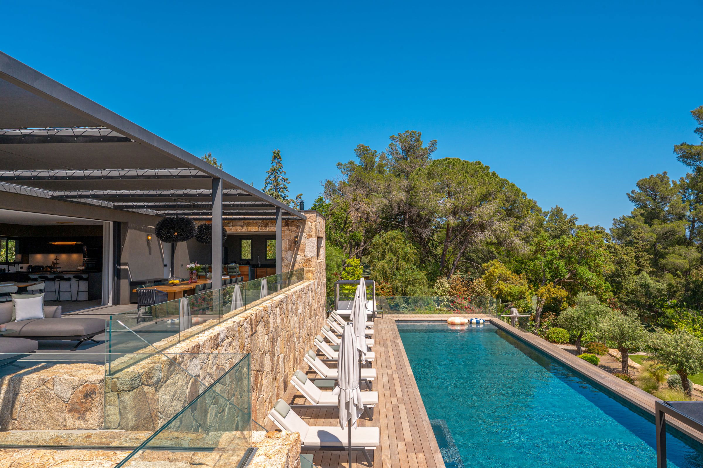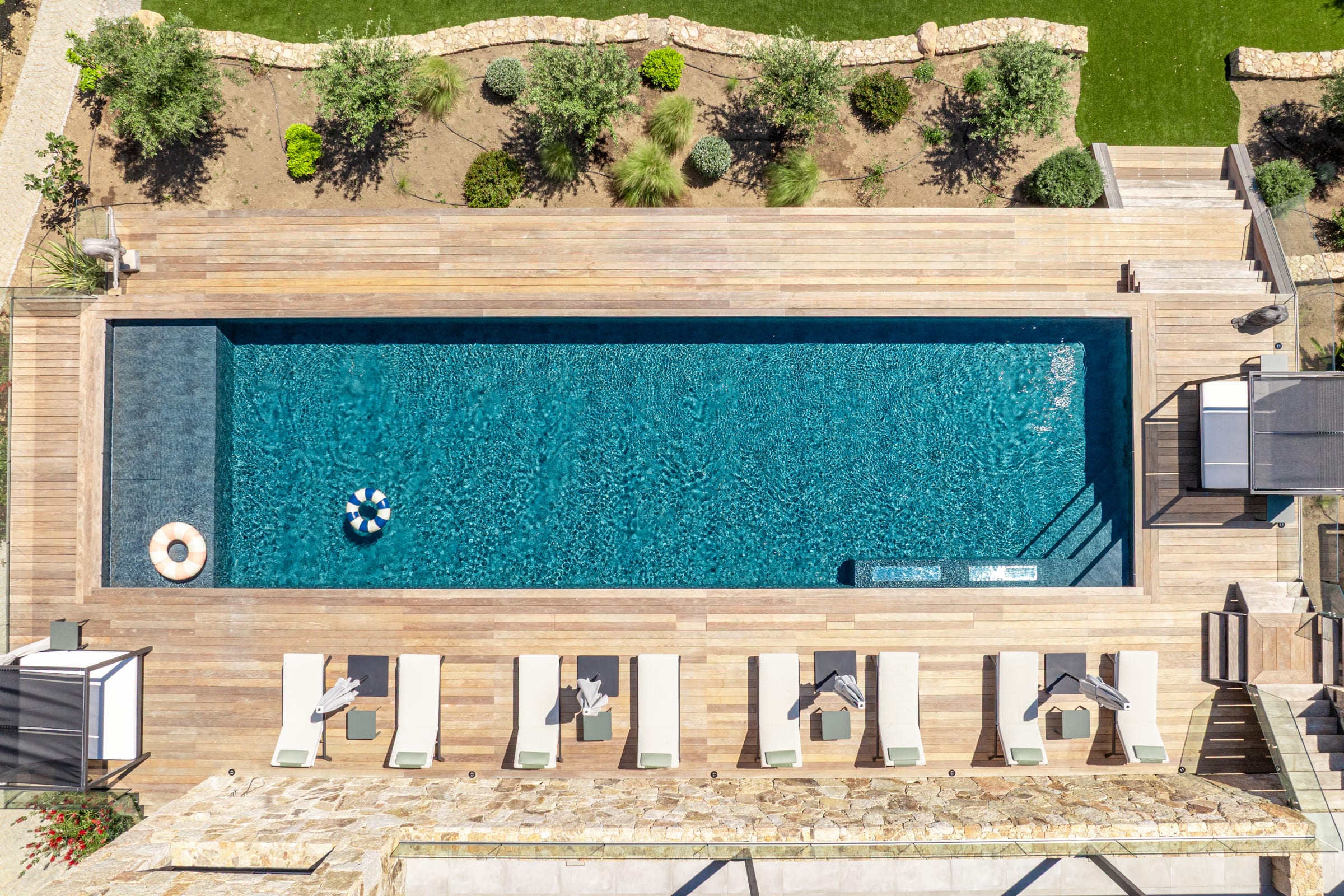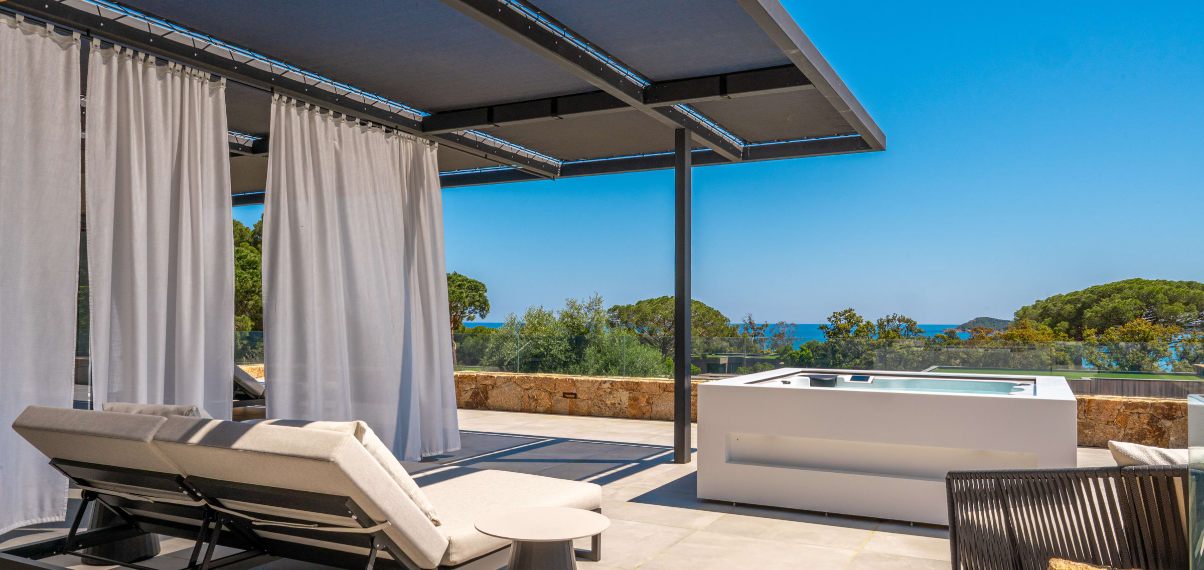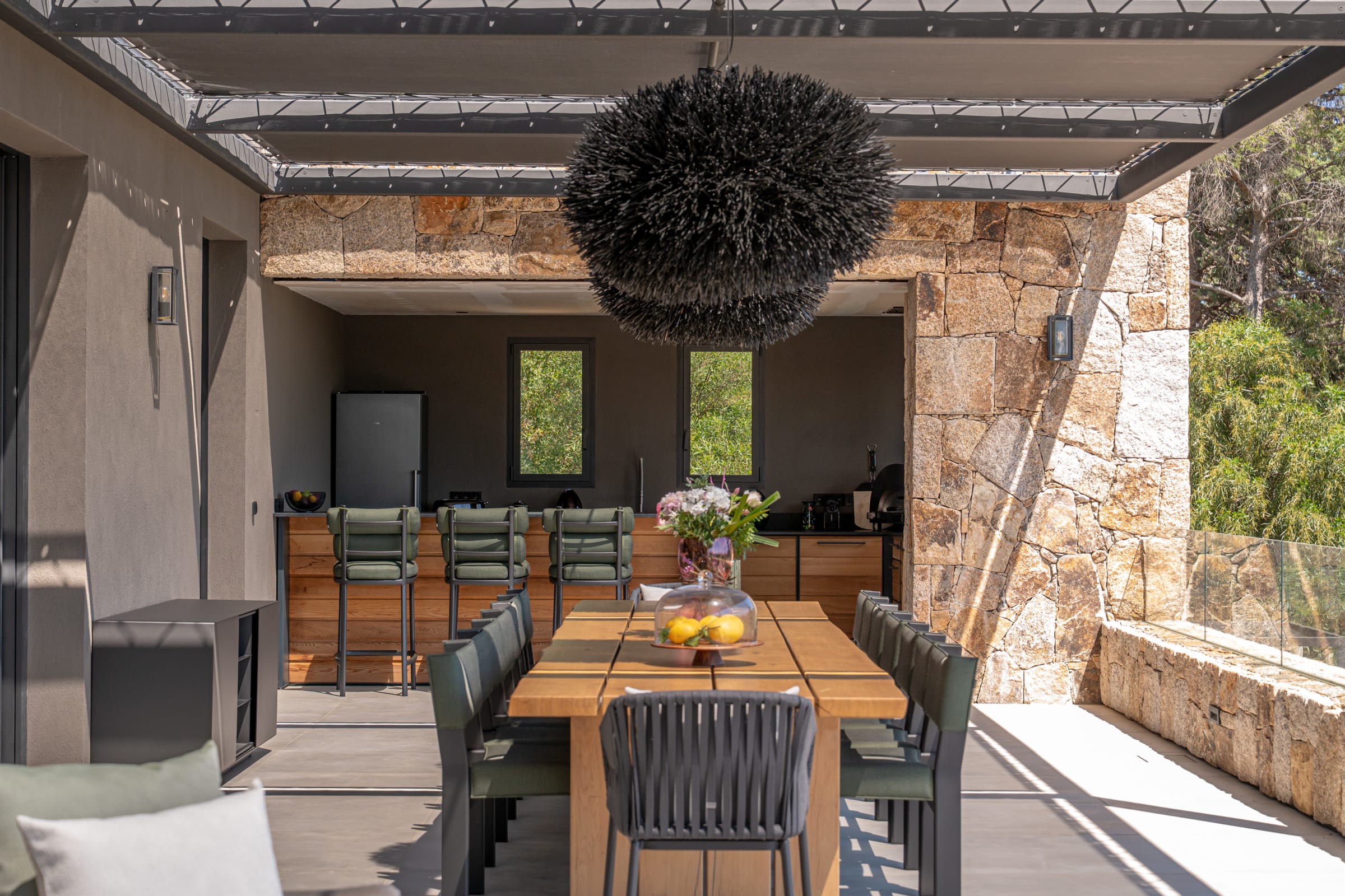 The outdoor spaces have been designed as a real haven of well-being, inviting relaxation and sharing throughout the day.