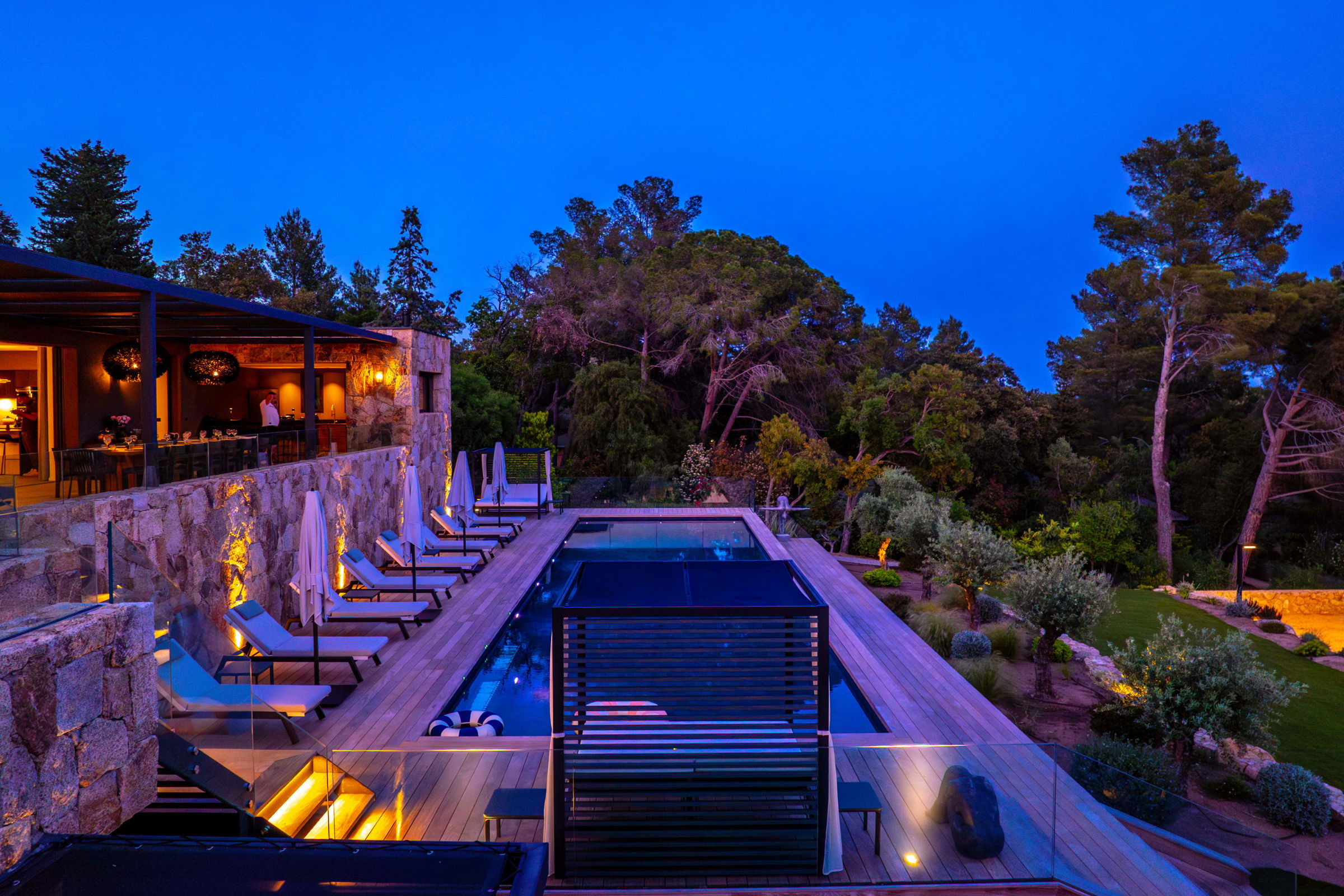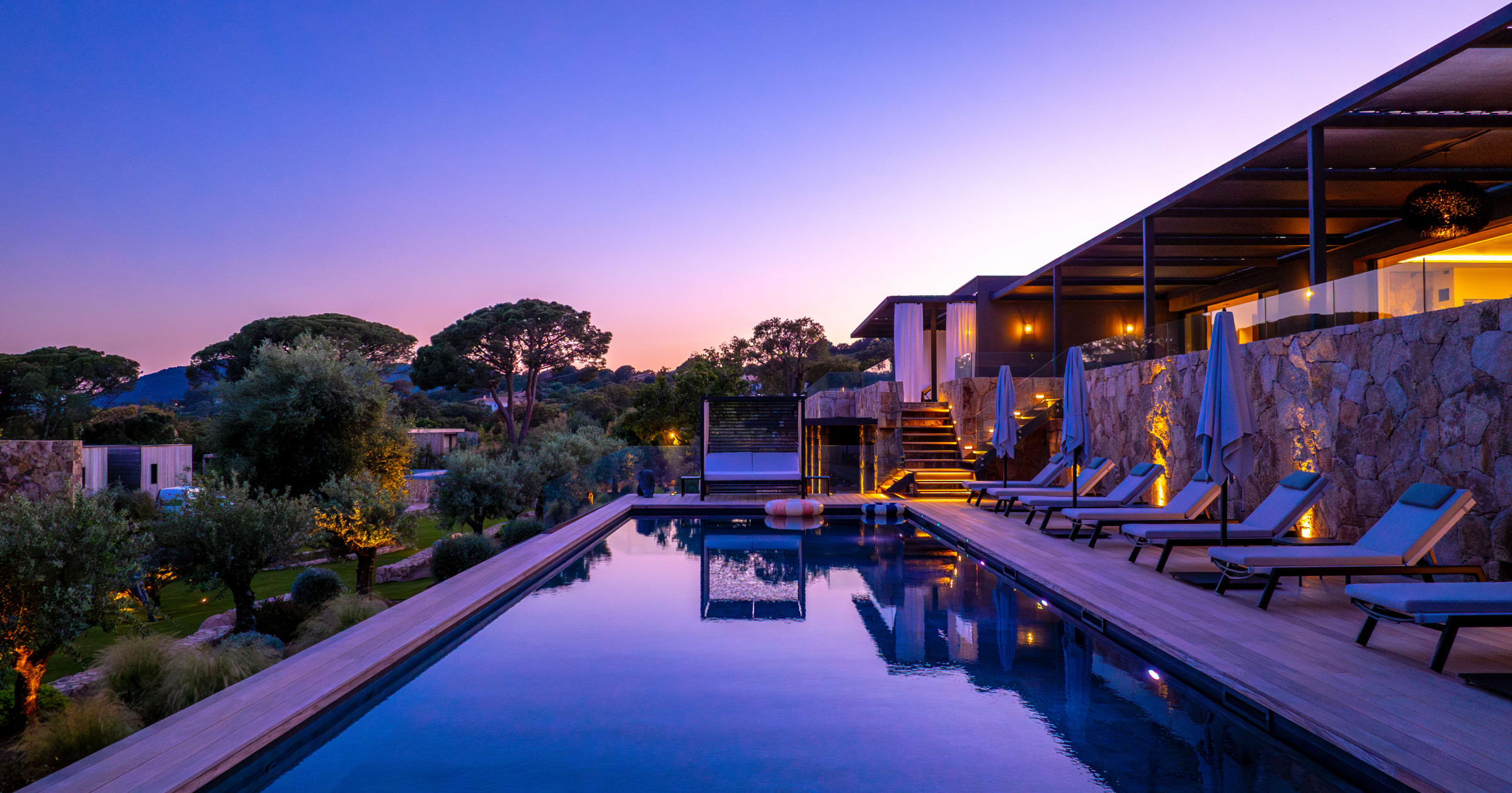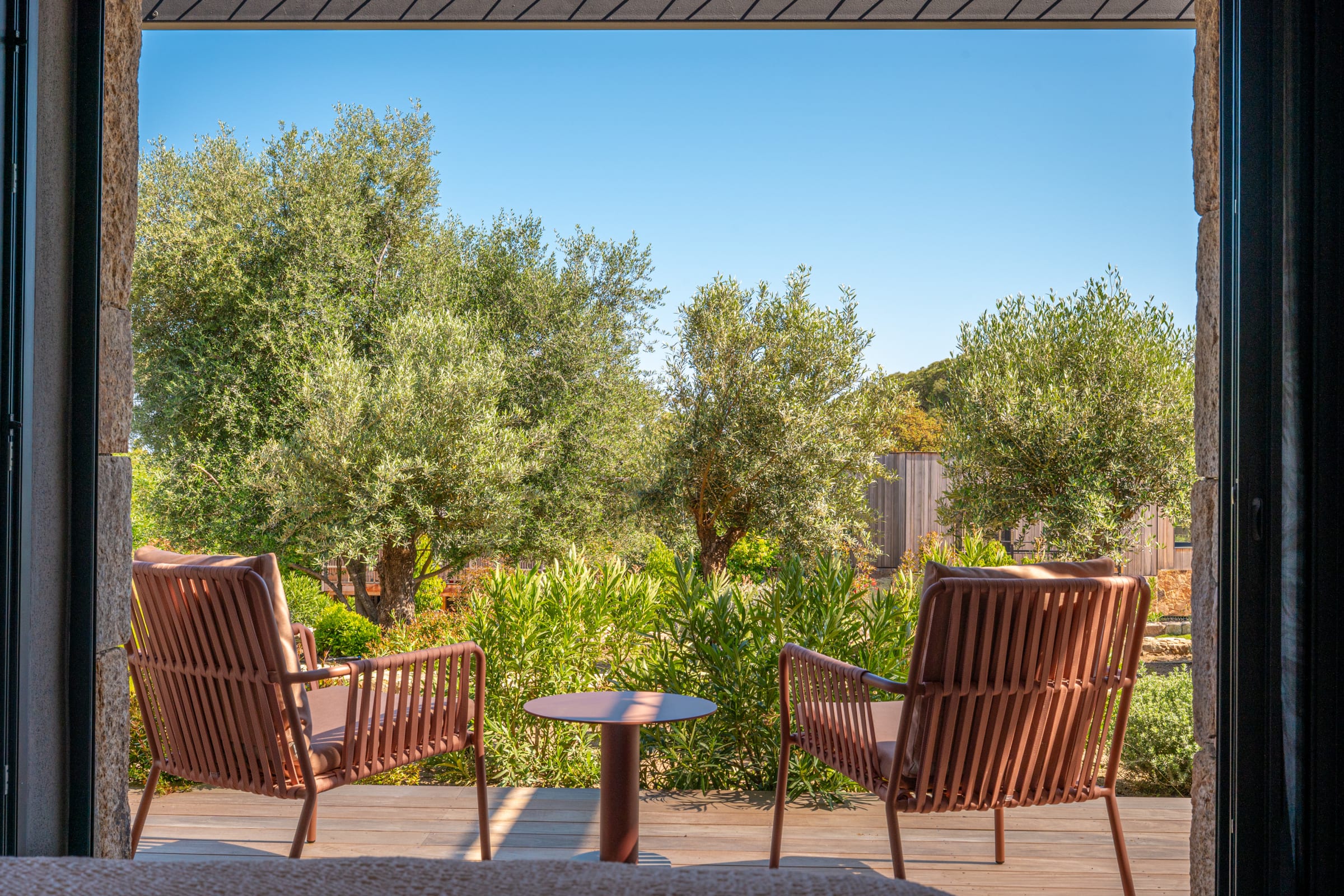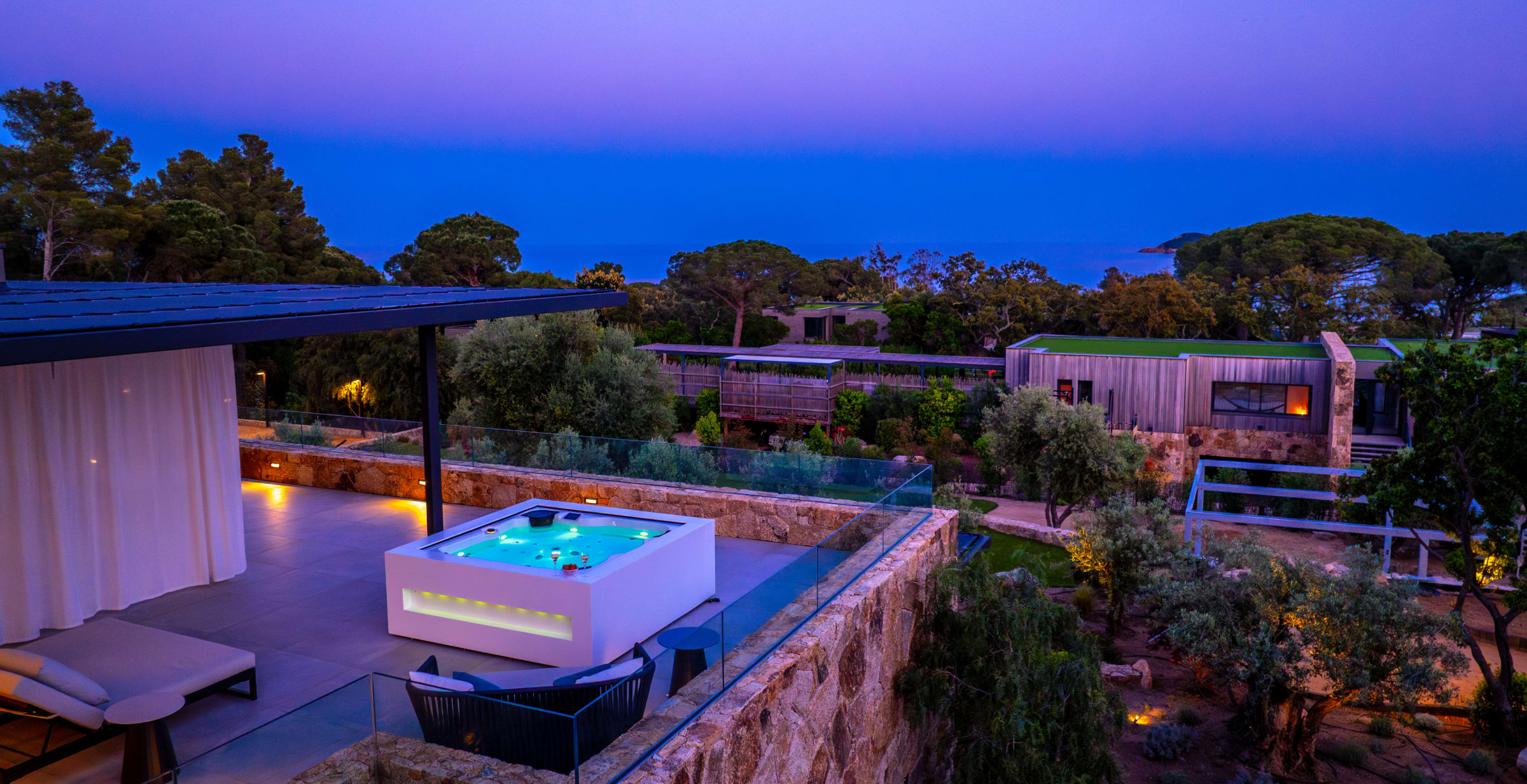 The outdoor spaces have been designed as a real haven of well-being, inviting relaxation and sharing throughout the day.