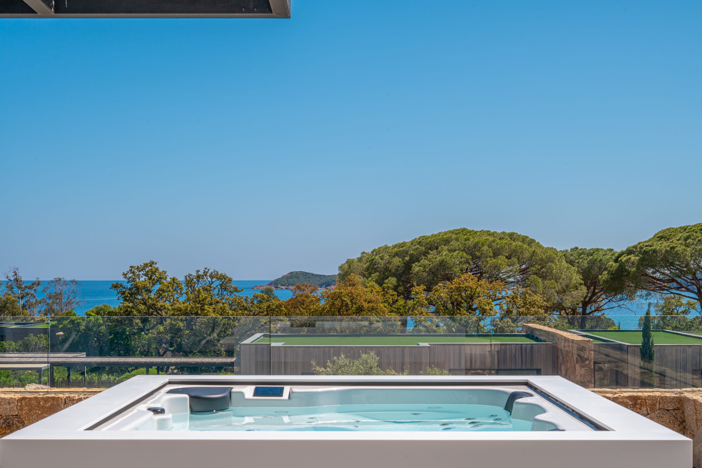 The hotel villa has a magnificent heated swimming pool of 20 x 5 meters, equipped with an integrated beach and secured by a submerged shutter, ideal both for swimming and for moments of idleness. A jacuzzi completes this space, offering a privileged setting to relax in front of the natural environment.